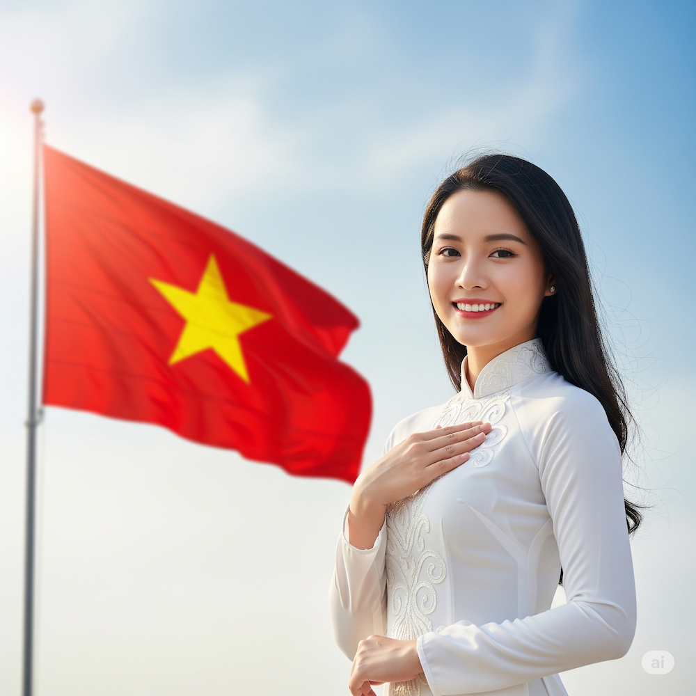 Cô gái Việt Nam, áo dài truyền thống, lá cờ Việt Nam, flag, Tổ Quốc, cô gái, girl, Việt Nam