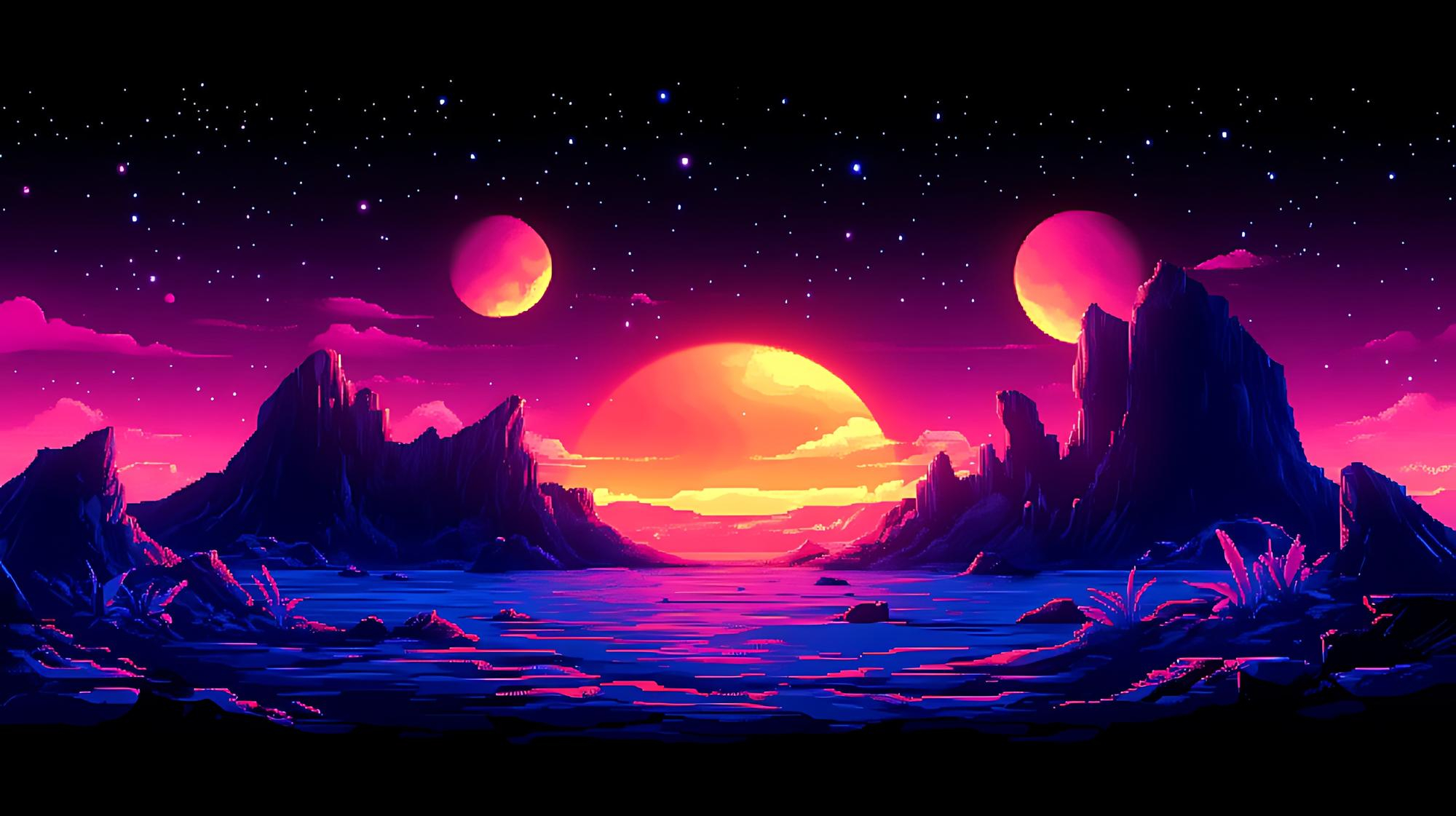 Phong cảnh, hoàng hôn, sunset, pixel, pixel art, nền, hình nền, background 2