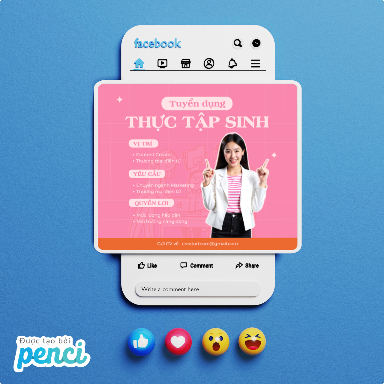 thieke thuvien 100+ Mẫu thiết kế thông báo tuyển dụng sáng tạo, thiết kế miễn phí trên Penci By admin | 24 tháng 07 năm 2025 706 đã đọc 1. Vì sao một bài tuyển dụng bắt mắt lại quan trọng đến thế? Ứng viên ngày nay không chỉ nhìn vào nội dung công việc, họ còn nhìn vào cách doanh nghiệp thể hiện mình. Một mẫu thiết kế thông báo tuyển dụng được thiết kế chỉn chu, sáng tạo chính là lời khẳng định: “Chúng tôi tôn trọng người sẽ gia nhập cùng mình”. Trong thời đại mà mạng xã hội tràn ngập tin tuyển dụng, một bài post nổi bật sẽ giúp bạn dừng được ngón tay của ứng viên và giữ họ lại đủ lâu để đọc kỹ từng dòng mô tả. Vậy nên, thiết kế bài đăng tuyển dụng không còn là chuyện "cho đẹp", mà còn là chiến lược truyền thông tuyển dụng hiệu quả. Mẫu thiết kế thông báo tuyển dụng tuỳ chỉnh linh hoạt trên Penci 2. Thư viện mẫu thiết kế post tuyển dụng trên Penci cực kỳ đa dạng và dễ chỉnh sửa Penci đã thiết kế sẵn hàng loạt mẫu thiết kế thông báo tuyển dụng phù hợp cho nhiều ngành nghề và vị trí khác nhau: tuyển từ nhân viên văn phòng, nhân sự, sale, marketing cho đến các lĩnh vực đặc thù như giáo dục, làm đẹp, nhà hàng, sản xuất,... Mỗi mẫu đều được thiết kế với bố cục gọn gàng, màu sắc linh hoạt và dễ dàng tùy chỉnh chỉ với thao tác kéo thả. Bạn có thể chỉnh nội dung, đổi logo, thay hình minh họa hoặc phối lại màu theo nhận diện thương hiệu của riêng mình chỉ trong vài phút cực kỳ tiện lợi. Tham khảo một vài mẫu thiết kế dưới đây nha: Tùy chỉnh mẫu này Tùy chỉnh mẫu này Tùy chỉnh mẫu này Tùy chỉnh mẫu này Tùy chỉnh mẫu này Tùy chỉnh mẫu này Tùy chỉnh mẫu này Tùy chỉnh mẫu này Tùy chỉnh mẫu này Tùy chỉnh mẫu này Xem thêm 89+ mẫu thiết kế thông báo tuyển dụng tại đây. Ngoài ra bạn còn có thể tùy chọn dạng ảnh đăng tuyển dụng của mình: Tuyển dụng với mẫu thiết kế bài đăng ngang Tuyển dụng với mẫu thiết kế bài đăng vuông Tuyển dụng với mẫu thiết kế dạng ảnh bìa Tuyển dụng với mẫu thiết kế banner ngang Tuyển dụng với mẫu thiết kế banner dọc Dù bạn đang tuyển gấp hay chuẩn bị cho kế hoạch mở rộng đội ngũ, hãy bắt đầu bằng một bài đăng thật sự chuyên nghiệp và đúng gu thương hiệu. Truy cập ngay Thư viện mẫu thiết kế thông báo tuyển dụng để khám phá hàng trăm mẫu bài tuyển dụng có sẵn, chỉnh sửa trong 5 phút mà không cần designer, không mất thời gian chờ đợi. Tạo thông báo tuyển dụng đầu tiên của bạn ngay hôm nay tại đây. Penci - Thiết kế dễ dàng, đậm chất Việt Đã sao chép