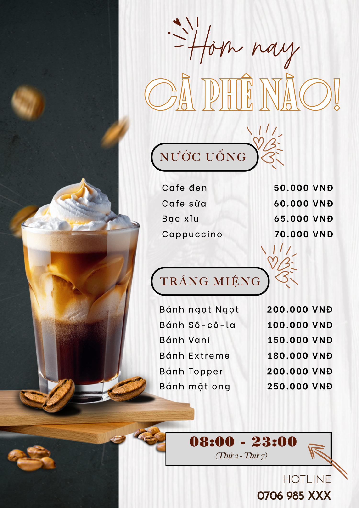 thieke thuvien 99+ mẫu Menu đẹp, miễn phí dành cho quán cafe, trà sữa dễ dàng chỉnh sửa online bằng công cụ Penci By admin | 24 tháng 03 năm 2026 15 đã đọc Menu không chỉ là bảng liệt kê đồ uống hay món ăn, mà còn là một phần quan trọng trong trải nghiệm của khách hàng khi đến quán. Một menu được thiết kế đẹp, rõ ràng và chuyên nghiệp sẽ giúp khách dễ chọn món, tăng thiện cảm với thương hiệu, đồng thời góp phần nâng cao doanh thu cho quán cafe hoặc trà sữa. Hiện nay, thay vì phải thuê thiết kế tốn kém, bạn hoàn toàn có thể tự thiết kế menu đẹp chỉ trong vài phút bằng các mẫu có sẵn. Với kho mẫu thiết kế menu miễn phí và công cụ chỉnh sửa online đơn giản, Penci giúp chủ quán dễ dàng tạo menu chuyên nghiệp mà không cần biết thiết kế. Trong bài viết này, hãy cùng tìm hiểu cách thiết kế menu thu hút khách và khám phá bộ sưu tập mẫu menu đẹp dành cho quán cafe, trà sữa đang được sử dụng nhiều hiện nay. 1. Menu như thế nào thì mới thu hút được khách hàng? Menu là một trong những yếu tố ảnh hưởng trực tiếp đến quyết định gọi món. Một menu được thiết kế tốt không chỉ giúp khách dễ đọc mà còn giúp quán thể hiện sự chuyên nghiệp và tạo ấn tượng ngay từ lần đầu. Dưới đây là một số nguyên tắc quan trọng khi thiết kế menu cho quán cafe, trà sữa. Menu dễ đọc sẽ giúp khách hàng "thoải mái" trong việc lựa chọn - Menu cần rõ ràng, dễ đọc: Khách hàng thường chỉ dành vài chục giây để xem menu, vì vậy nội dung cần được trình bày gọn gàng, dễ nhìn. Tên món, giá tiền và mô tả nên được sắp xếp logic, tránh quá nhiều chữ hoặc quá nhiều chi tiết gây rối mắt. - Sắp xếp món theo nhóm hợp lý: Việc phân loại theo nhóm như Cafe, Trà sữa, Trà trái cây, Đá xay, Topping,... sẽ giúp khách tìm món nhanh hơn. Một menu có bố cục rõ ràng luôn tạo cảm giác chuyên nghiệp hơn so với menu sắp xếp lộn xộn. - Làm nổi bật món bán chạy: Những món đặc trưng hoặc bán chạy nên được đặt ở vị trí dễ nhìn. Nhiều quán thường dùng ký hiệu, khung hoặc icon để đánh dấu món nổi bật, giúp khách dễ lựa chọn hơn. - Không nên để menu quá dài: Menu quá nhiều món có thể khiến khách khó chọn, đặc biệt với quán nhỏ. Thay vì liệt kê tất cả, nên chọn những món chính và dễ bán nhất để đưa vào menu. - Hình ảnh và bố cục cần đồng bộ với thương hiệu: Menu cũng là một phần nhận diện thương hiệu. Quán cafe dành cho giới trẻ sẽ có menu khác với quán cafe truyền thống, và quán trà sữa cũng sẽ có phong cách trình bày riêng. Một menu được thiết kế đồng bộ với logo, banner và poster sẽ giúp quán trông chuyên nghiệp hơn rất nhiều. 2. Tổng hợp mẫu Menu đẹp, miễn phí dành cho quán cafe, trà sữa Dưới đây là một số mẫu menu đang được sử dụng phổ biến cho quán cafe, trà sữa, quán nước mang đi và cửa hàng đồ uống. Các mẫu đều có bố cục sẵn, dễ chỉnh sửa và phù hợp in ấn hoặc dùng online. Menu quán cafe đơn giản dễ đọc Menu trà sữa nhiều món rõ ràng Menu đồ uống treo tường cho quán Menu cafe in bảng đứng Menu trà sữa khổ A4 dễ dàng in ấn Menu quán nước mang đi Menu đồ uống cho quán nhỏ Menu cafe giá rẻ dễ chỉnh sửa Menu trà sữa có topping Menu quán cafe chuyên nghiệp >> Xem thêm: Mẫu thiết kế menu, thực đơn đơn giản dành cho quán cà phê, trà sữa Kho thư viện menu của Penci được thiết kế sẵn với nhiều kích thước khác nhau như menu dạng bảng ngang, menu bảng lớn dọc, menu để bàn,... phù hợp cho nhiều loại hình quán từ cafe, trà sữa đến nhà hàng, quán ăn. Tất cả mẫu đều có thể chỉnh sửa trực tiếp trên trình duyệt, thay đổi nội dung, giá tiền, hình ảnh hoặc logo chỉ bằng thao tác kéo thả. Người không biết thiết kế vẫn có thể tự thiết kế menu online đẹp trong vài phút mà không cần cài phần mềm. 3. Cách chỉnh sửa menu bằng công cụ Penci Penci là công cụ thiết kế online miễn phí dành cho người Việt, được phát triển để giúp người dùng dễ dàng tạo các ấn phẩm như menu, poster, banner, tờ rơi, thiệp mời,... mà không cần kinh nghiệm thiết kế. Giao diện thiết kế của Penci được tối giản để ai cũng có thể sử dụng. Khi mở một mẫu menu, bạn sẽ thấy các thành phần đã được sắp xếp sẵn như tiêu đề, danh sách món, giá tiền, hình minh họa. Bạn chỉ cần nhấp vào nội dung để sửa chữ, thay đổi font, chỉnh kích thước hoặc thêm món mới. Giao diện thiết kế online của Penci Một số thao tác cơ bản khi chỉnh sửa menu trên Penci: - Thay tên quán và logo - Chỉnh danh sách đồ uống - Sửa giá tiền - Thêm hoặc xóa món - Thay hình minh họa - Xuất file để in hoặc đăng online Nhờ cách thiết kế kéo thả đơn giản, việc tạo menu mới hoặc cập nhật menu cũ chỉ mất vài phút, rất phù hợp với quán cafe, trà sữa, quán ăn nhỏ hoặc cửa hàng mới mở. >> Xem thêm: Hướng dẫn tự thiết kế menu bằng công cụ Penci Tóm lại Một menu đẹp không chỉ giúp khách dễ chọn mó