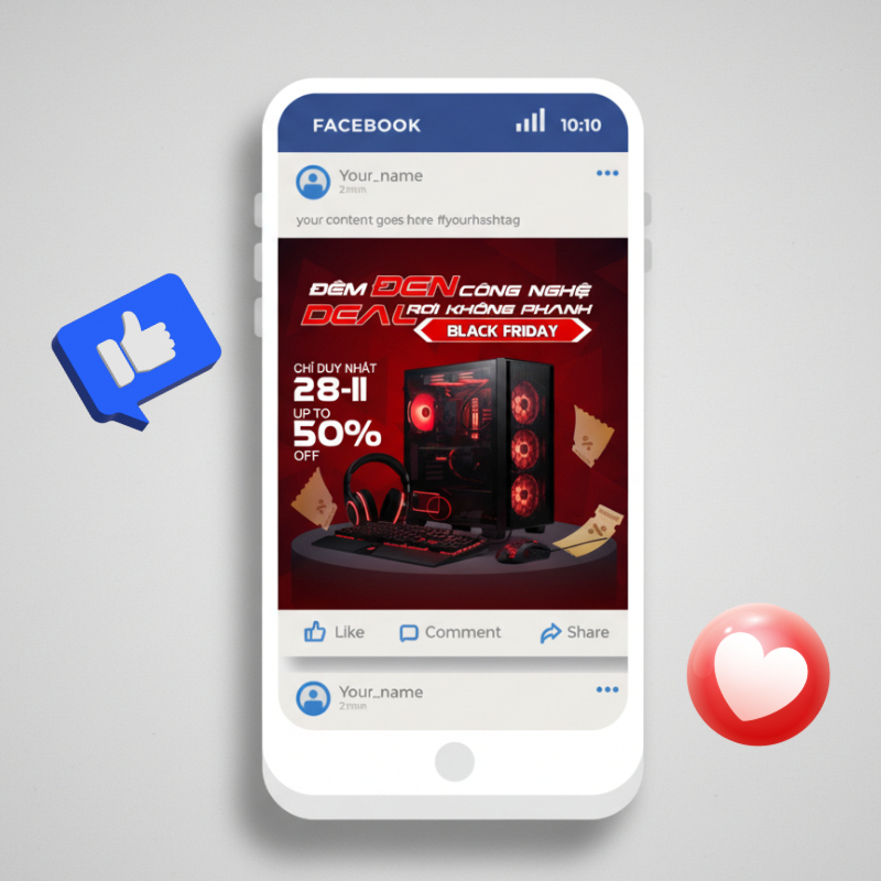 thieke thuvien 99+ ý tưởng thiết kế poster Black Friday sáng tạo, ấn tượng nhất 2025 By admin | 17 tháng 11 năm 2025 61 đã đọc Black Friday 2025 là mùa săn sale bùng nổ mà bất cứ thương hiệu nào cũng phải chuẩn bị kỹ phần hình ảnh truyền thông, đặc biệt là poster. Một poster Black Friday đẹp, bắt mắt và đúng xu hướng có thể quyết định việc khách dừng lại xem hay lướt qua trong một giây. Trong bài viết này, chúng ta sẽ đi xuyên qua tất cả những gì bạn cần: khái niệm poster ngày Black Friday là gì, lý do các thương hiệu phải dùng poster trong dịp sale lớn nhất năm, kích thước chuẩn in để không bị vỡ, và đặc biệt là gợi ý hơn 99 ý tưởng thiết kế ấn tượng nhất 2025, tất cả đều có thể tạo ra hoặc chỉnh sửa ngay bằng công cụ Penci. 1. Poster ngày Black Friday là gì? Poster ngày Black Friday là ấn phẩm truyền thông được thiết kế dành riêng cho dịp siêu giảm giá thường diễn ra vào thứ Sáu cuối cùng của tháng 11 hằng năm. Nó giống như “tấm biển hiệu” đầu tiên mà khách hàng nhìn thấy khi họ bắt đầu bước vào trạng thái săn sale. Poster có thể treo tại cửa hàng, dán trên mặt tiền, đặt ở quầy thu ngân, đăng trên mạng xã hội hoặc gửi qua tin nhắn để thu hút sự chú ý ngay lập tức. Điểm nhận diện dễ thấy của poster Black Friday là gam màu tương phản mạnh, con số giảm giá cực lớn, typography đậm và có một chút kịch tính, thể hiện đúng tinh thần “quý hiếm” một năm chỉ có một lần. Mẫu thiết kế poster ngày Black Friday thu hút ánh nhìn Poster Black Friday không chỉ là một hình ảnh đẹp. Nó là lời tuyên bố của thương hiệu rằng “đã tới lúc hạ giá chạm đáy”. Mỗi poster là một cuộc đua giữa các shop: ai sáng tạo hơn, ai thu hút hơn và ai khiến khách cảm giác “không ghé xem là tiếc”. 2. Black Friday dùng poster để làm gì? Poster Black Friday có nhiều mục đích quan trọng trong chiến dịch bán hàng: • Thu hút sự chú ý ngay lập tức: Trong biển thông tin khuyến mãi, poster là thứ “đập vào mắt” nhanh hơn text và dễ kích thích hành vi mua ngay.• Truyền tải ưu đãi rõ ràng, nhanh gọn: Giảm 50% đến 80%? Flash Sale trong 24h? Mua 1 tặng 1? Poster là nơi để bạn nói ngắn, nhanh và cực rõ ràng.• Tăng nhận diện thương hiệu: Thiết kế poster theo bộ nhận diện giúp người xem nhớ tới thương hiệu giữa hàng trăm đối thủ khác cũng đang sale.• Dùng cho đa kênh: Một mẫu poster Black Friday có thể dùng đa kênh như cửa hàng (in ấn), mạng xã hội (Fanpage, Instagram, Zalo OA, Website, banner quảng cáo)• Thúc đẩy doanh số ngay trong 24-72h: Black Friday là cuộc đua thời gian. Một poster ấn tượng có thể kéo tăng lượng khách vào cửa hàng hoặc click vào website ngay lập tức. Mẫu poster dùng đăng trên mạng xã hội 3. Kích thước thông dụng của poster ngày Black Friday Tùy mục đích sử dụng mà poster Black Friday có nhiều kích thước khác nhau. Dưới đây là những size phổ biến nhất hiện nay: Poster treo tường / cửa hàng (in ấn) - A1: 594 × 841 mm - A2: 420 × 594 mm - A3: 297 × 420 mm - A0 (siêu lớn): 841 × 1189 mm Poster dùng trên mạng xã hội - Facebook/Instagram Feed: 1080 × 1350 px - Instagram Story / Facebook Story: 1080 × 1920 px - Tất cả kích thước trên đều có sẵn trong Penci, bạn chỉ cần chọn size → thay nội dung → xuất file là dùng ngay. 4. Tổng hợp mẫu Poster ngày Black Friday mới lạ, thu hút nhất 2025 Năm 2025, xu hướng thiết kế Black Friday chuyển mạnh sang phong cách tối giản, tương phản mạnh, nhấn vào con số giảm giá. Ngoài ra, nhiều thương hiệu cũng ưa chuộng vibe “đồ họa tương lai”, hiệu ứng ánh sáng neon, gradient đỏ đen đặc trưng, hoặc cá tính hóa thiết kế bằng hình minh họa 3D. Dưới đây là tổng hợp mẫu poster Black Friday 2025 sáng tạo, ấn tượng và đầy chất riêng của người bán hàng “kiểu Việt”. Bạn có thể dùng để lấy cảm hứng hoặc chỉnh sửa trực tiếp bằng kho mẫu Penci: Mẫu poster Black Friday 2025 phong cách đỏ đen nổi bật, truyền tải ưu đãi siêu rõ ràng Thiết kế poster Black Friday giảm giá tới 80%, phù hợp cho mọi ngành hàng Poster Black Friday tối giản, nhấn vào con số ưu đãi giúp tăng tỷ lệ chuyển đổi Gợi ý poster Black Friday phong cách hiện đại với hiệu ứng đèn bắt mắt Mẫu poster Black Friday cho cửa hàng thời trang, sang trọng và cuốn hút Poster Black Friday màu sắc tương phản mạnh, phù hợp các chiến dịch sale lớn Thiết kế poster Black Friday phong cách 3D, tạo điểm nhấn thị giác ấn tượng Mẫu poster Black Friday dùng trong siêu thị có bố cục rõ ràng, dễ nhìn Poster Black Friday sang trọng dành cho thương hiệu cao cấp Ý tưởng thiết kế poster Black Friday độc đáo dành cho quảng cáo online và offline >> Xem thêm: Thư viện mẫu thiết kế Poster ngày Black Friday ấn tượng, sáng tạo Bạn muốn có poster Black Friday đẹp, chuẩn thương hiệu và thiết kế trong 5 phút? Đừng tự làm khó mình, hãy truy cập Penci.vn, chọn ngay mẫu poster Black Friday 2025, chỉnh sửa cực nhanh, tải file chất lượng cao để dùng cho cả online lẫn in ấn. Penci -