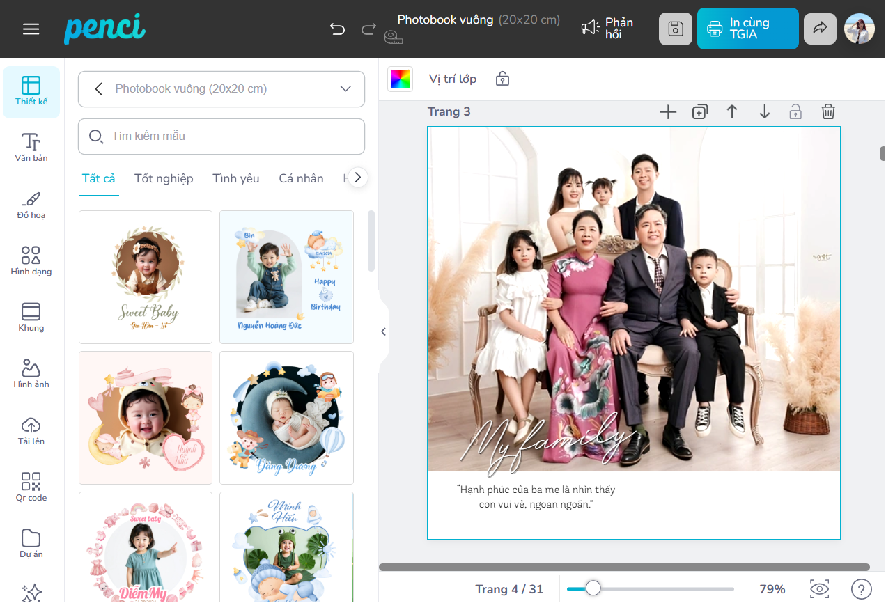 thieke thuvien Gợi ý quà tặng mẹ ngày 20/10 cá nhân hóa, ý nghĩa, độc đáo và thiết thực nhất By admin | 30 tháng 09 năm 2025 37 đã đọc Chọn quà tặng mẹ không chỉ đơn giản là một món đồ vật chất, mà còn là cách để bạn thể hiện tình cảm, sự quan tâm và biết ơn. Vậy đâu là những quà 20/10 vừa thiết thực, vừa ý nghĩa, lại có sự cá nhân hóa độc đáo? Hãy Penci cùng tham khảo những gợi ý quà tặng mẹ ngày 20/10 cá nhân hóa, độc đáo và đầy yêu thương dưới đây! >> Tham khảo thêm xu hướng quà tặng cá nhân hóa được ưa chuộng nhất hiện nay 1/ Tiêu chí chọn quà tặng mẹ ngày 20/10 bạn không được bỏ qua khi mua quà tặng mẹ Một món quà tặng mẹ không cần xa hoa, nhưng nhất định phải “đúng”. Khi chọn quà 20/10 cho mẹ vừa thiết thực vừa ý nghĩa, bạn có thể dựa vào 4 tiêu chí sau: Thiết thực trong đời sống: Mẹ luôn thích những món quà có thể dùng hằng ngày, gắn liền với sinh hoạt của mình. Những món quà tặng mẹ thiết thực như áo thun thoải mái, túi canvas đi chợ, hay chiếc máy massage nhỏ xinh sẽ khiến mẹ cảm nhận được sự quan tâm mỗi ngày. Gói trọn ý nghĩa: Có những món quà khiến mẹ không cầm được nước mắt, không phải vì giá trị vật chất, mà vì nó lưu giữ kỷ niệm của cả gia đình. Một cuốn photobook đầy ắp hình ảnh gia đình hay bức ảnh treo tường trang trí phòng khách chính là dạng quà tặng mẹ ý nghĩa khiến mẹ luôn thấy được tình cảm gắn bó của con cái. Mang dấu ấn riêng: Thay vì quà tặng đại trà, một món quà tặng cá nhân hóa như in ảnh gia đình, khắc chữ hoặc món quà 20/10 được thiết kế riêng sẽ khiến mẹ cảm thấy đây là món quà mà con cái đã tạo ra để “dành riêng cho mình”. Xuất phát từ tấm lòng: Một món quà handmade dù nhỏ bé vẫn đủ khiến mẹ xúc động, bởi đó là công sức và tâm huyết bạn gửi gắm. Một bó “hoa ảnh” độc đáo hay một cuốn scrapbook tự tay bạn làm quà tặng mẹ chắc chắn sẽ khiến mẹ vừa mỉm cười, vừa rưng rưng hạnh phúc. >> Bắt đầu tự thiết kế quà tặng mẹ ngày 20/10 ngay tại đây! 2/ Gợi ý quà tặng mẹ 20/10 thiết thực, ý nghĩa và độc đáo khiến mẹ xúc động và nhớ mãi không quên 2.1. Photobook – Cuốn album lưu giữ kỷ niệm Một cuốn photobook tổng hợp những bức ảnh từ lúc bạn còn bé, những chuyến đi gia đình hay những ngày kỷ niệm quan trọng, chắc chắn sẽ khiến mẹ xúc động khi nhìn thấy. Đây là dạng quà tặng mẹ ý nghĩa nhất vì mỗi trang sách đều gói ghém tình yêu thương. Bạn có thể tự làm quà tặng mẹ bằng cách chọn ảnh, viết vài lời nhắn gửi và đặt in thành photobook. Với dạng quà tặng cá nhân hóa, mẹ không chỉ ngắm lại kỷ niệm mà còn thấy được tình cảm chân thành của bạn. >> Bắt đầu thiết kế photobook tặng mẹ ngay tại đây! 2.2. Áo thun gia đình – Thể hiện sự gắn kết yêu thương Một set áo thun in hình cả gia đình hoặc một ký hiệu riêng chắc chắn sẽ khiến mẹ hạnh phúc. Đây là quà tặng mẹ thiết thực vì có thể mặc trong những buổi dã ngoại, du lịch hay đơn giản là gia đình cùng nhau chụp ảnh. Hơn cả, đó là món quà khẳng định sự gắn bó, để mẹ luôn cảm nhận vai trò đặc biệt của mình trong tổ ấm. Bạn có thể dễ dàng tự thiết kế áo thun gia đình theo phong cách riêng trên Penci với hàng trăm mẫu áo có sẵn cho phép bạn dễ dàng tùy chỉnh theo ý thích, biến món quà thành quà tặng 20/10 vừa độc đáo, vừa gần gũi. >> Bắt đầu thiết kế áo thun gia đình tặng mẹ ngay tại đây! 2.3. Ảnh treo tường - Giữ gìn khoảnh khắc gia đình Không chỉ lưu giữ ảnh trong album, một bức ảnh gia đình khổ lớn treo giữa phòng khách sẽ trở thành điểm nhấn ấm áp. Đây là quà 20/10 vừa đẹp, vừa mang giá trị tinh thần, vừa trang trí không gian nhà cửa ấm áp. Bạn có thể chọn in ảnh canvas hoặc khung ảnh gỗ tinh tế và cá nhân hóa khung ảnh với những lời nhắn dành cho mẹ và gia đình. 2.4. Đóa hoa ảnh – Bất ngờ từ những cánh hoa kỷ niệm Một ý tưởng quà tặng sáng tạo là biến những bức ảnh polaroid kỷ niệm thành “đóa hoa ảnh” dành riêng cho mẹ. Khác với hoa tươi chóng tàn, đóa hoa ảnh có thể được mẹ giữ mãi như kỷ vật. Bạn có thể chọn in ảnh polaroid kèm những lời nhắn nhỏ để làm quà tặng mẹ 20/10 vừa độc đáo, vừa giàu cảm xúc. Tại Penci, bạn dễ dàng thiết kế ảnh với nhiều khung đẹp, tùy chỉnh thoải mái để tạo nên “đóa hoa ảnh” mang dấu ấn riêng dành cho mẹ. >> Bắt đầu thiết kế ảnh polaroid làm quà tặng mẹ ngay tại đây! 2.5. Quà handmade – Gửi trọn yêu thương Nếu muốn thể hiện nhiều tình cảm nhất, hãy dành thời gian tự làm quà tặng mẹ. Một cuốn scrapbook, một tấm thiệp 3D hay hộp kỷ vật nhỏ xinh,... tất cả đều toát lên sự chân thành. Mẹ sẽ rất cảm động khi biết món quà 20/10 này là do chính tay bạn chuẩn bị. Nếu bạn không quá khéo tay, bạn có thể thử tạo scrapbook online với các mẫu có sẵn tại Penci, th