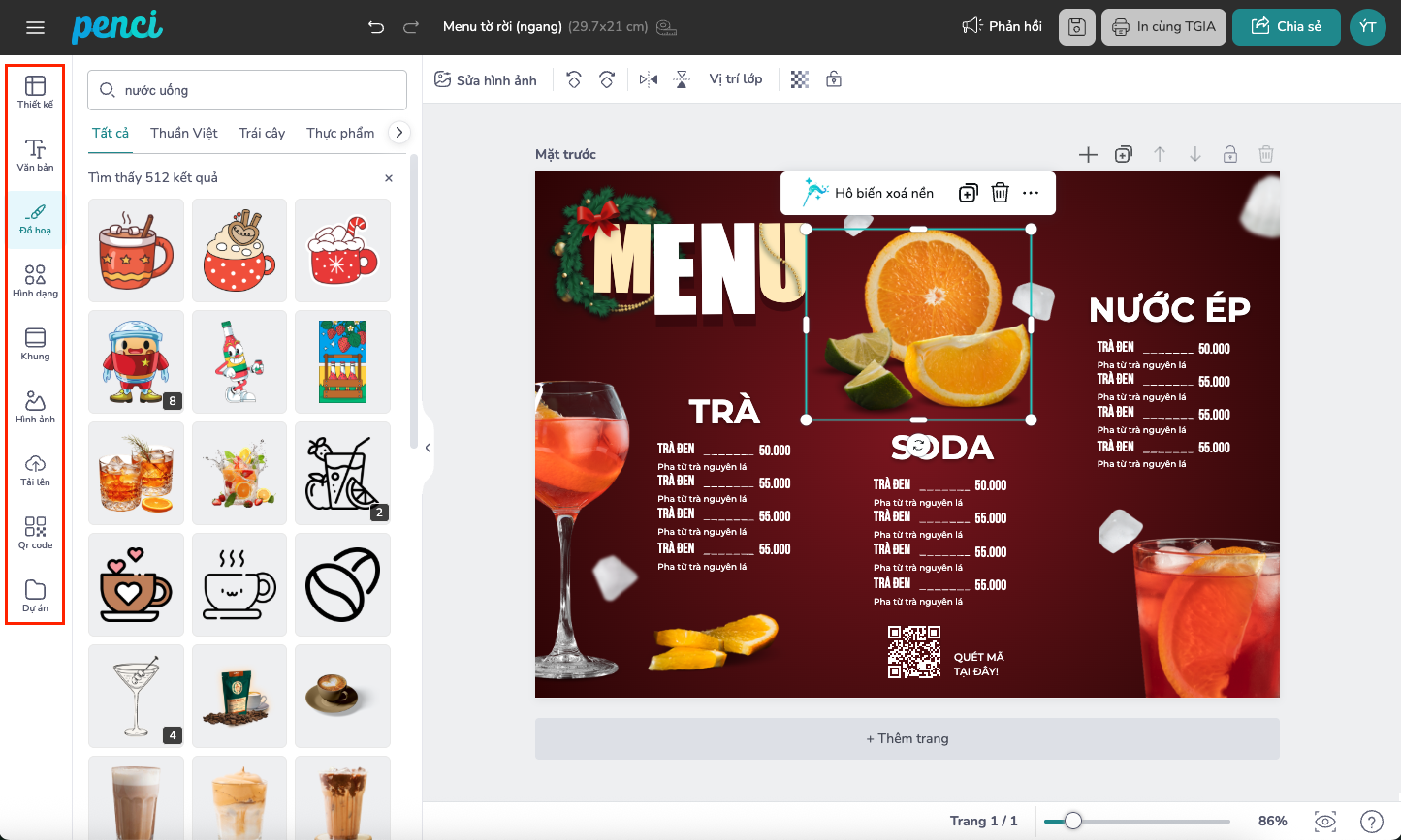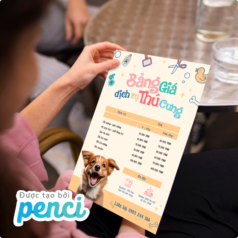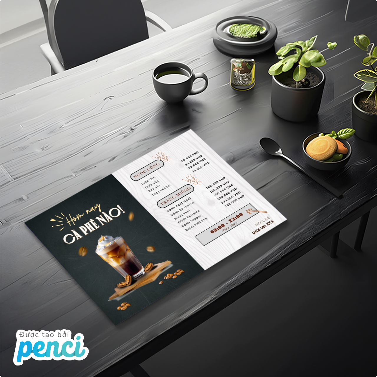 thieke thuvien Hướng dẫn tự thiết kế Menu để bàn đẹp, tiện lợi, chuyên nghiệp với công cụ Penci By admin | 13 tháng 05 năm 2025 522 đã đọc 1. Vì sao nên tự thiết kế Menu để bàn bằng Penci? - Tự do sáng tạo, chỉnh sửa linh hoạt: Dễ dàng thay đổi giá, món, hình ảnh,... bất cứ lúc nào và ở bất kì nơi đâu mà không phụ thuộc ai. Chỉ cần mở link là có thể sửa ngay trên cả điện thoại. - Đúng phong cách yêu thích: Từ font chữ, màu sắc, hình minh hoạ đều có thể tùy chỉnh theo tone decor quán hoặc theo sở thích cá nhân của chủ sở hữu. - Thiết kế xong, đặt in cùng nơi: Sau khi hoàn thiện, bạn có thể in ngay mà không cần phải đi đâu xa, hay gửi file qua lại. 2. Gợi ý một số phong cách Menu để bàn cho cửa hàng phổ biến Tùy theo mô hình kinh doanh và gu thẩm mỹ của bạn, có thể tham khảo các phong cách sau: Menu Minimal, hiện đại: Thiết kế tối giản, chia cột rõ ràng, font sans-serif dễ đọc. Phù hợp với quán cà phê hiện đại, tiệm bánh take-away. Menu tờ rời ngang phong cách tối giản Menu Retro, Vintage: Màu be, nâu, cam đất, họa tiết vẽ tay nhẹ nhàng. Hợp với quán cà phê hoài cổ, tiệm bánh hay tiệm phụ kiện handmade. Menu để bàn phong cách cổ điển cho tiệc cưới Menu Cute, dễ thương: Icon món ăn, màu pastel, font tròn, phù hợp với quán trà sữa, tiệm bánh mà có khách hàng chủ yếu là trẻ em và vị thành niên. Menu tờ rời dọc phong cách dễ thương Menu kèm hình minh họa: Menu có hình thật, giúp khách dễ hình dung, hợp với quán ăn gia đình, nhà hàng buffet. Menu tờ rời ngang có hình minh hoạ chất lượng cao 3. Hướng dẫn thiết kế Menu để bàn online trên Penci Bước 1: Truy cập vào Penci và đăng nhập Bạn hãy dùng tài khoản Google hoặc Zalo để đăng nhập nhanh nhé nhanh. Bước 2: Tìm ấn phẩm “Thực đơn” để thiết kế Tại thư viện mẫu thiết kế miễn phí online của Penci bạn có 2 cách để tìm kiếm sản phẩm cần in ấn: - Bạn chọn "Thực đơn" trong phần "Danh mục", bắt đầu chọn mẫu - Gõ tên sản phẩm "Menu" vào ô tìm kiếm. Sau đó lựa chọn mẫu Menu tờ rời ngang, Menu tờ rời dọc, Menu để bàn theo ý muốn của bạn. Bước 3: Sử dụng thư viện mẫu thiết kế Menu để bàn có sẵn của Penci - Tại đây, bạn hoàn toàn có thể lựa chọn và sử dụng miễn phí các mẫu Menu mà bạn thích. Sau đó, chọn bạn chọn mẫu và “Sử dụng mẫu này”. - Hoặc nếu bạn ưa thích sự sáng tạo, muốn cá nhân hoá sản phẩm theo trí tưởng tượng của mình, chọn "Tạo Menu mới" Bước 4: Tùy chỉnh nội dung, hình ảnh trong mẫu có sẵn - Chèn tên món ăn, mô tả, giá (có thể thêm icon dễ thương hoặc đánh dấu món best seller) - Dùng hình ảnh minh họa món (tải từ máy hoặc kho ảnh của Penci) - Tùy chỉnh font chữ, màu sắc theo tone quán - Có thể thêm mã QR dẫn đến menu online nếu cần Bước 5: Đặt in nhanh ngay sau khi thiết kế - Chọn nút “In cùng TGIA” - Menu để bàn được in KTS trên bề mặt giấy couche, bạn chỉ cần chọn khổ giấy (thường A3/A4/A5), số mặt cần in, và số lượng muốn in - Chọn đặt in ngay sau khi hoàn thành thiết kế và đúng thông tin Với Penci, bạn không cần học photoshop hay thuê designer, chỉ cần vài cú click là có ngay menu chuyên nghiệp, đúng gu quán. Dù bạn là chủ tiệm cà phê nhỏ hay đang kinh doanh quán ăn gia đình, việc tự thiết kế menu giờ đây thật đơn giản. Đăng ký miễn phí Penci và bắt đầu tạo chiếc menu đẹp, chuẩn gu, dễ nhìn ngay nhé. Penci - Công cụ thiết kế của người Việt, dành cho người Việt Đã sao chép