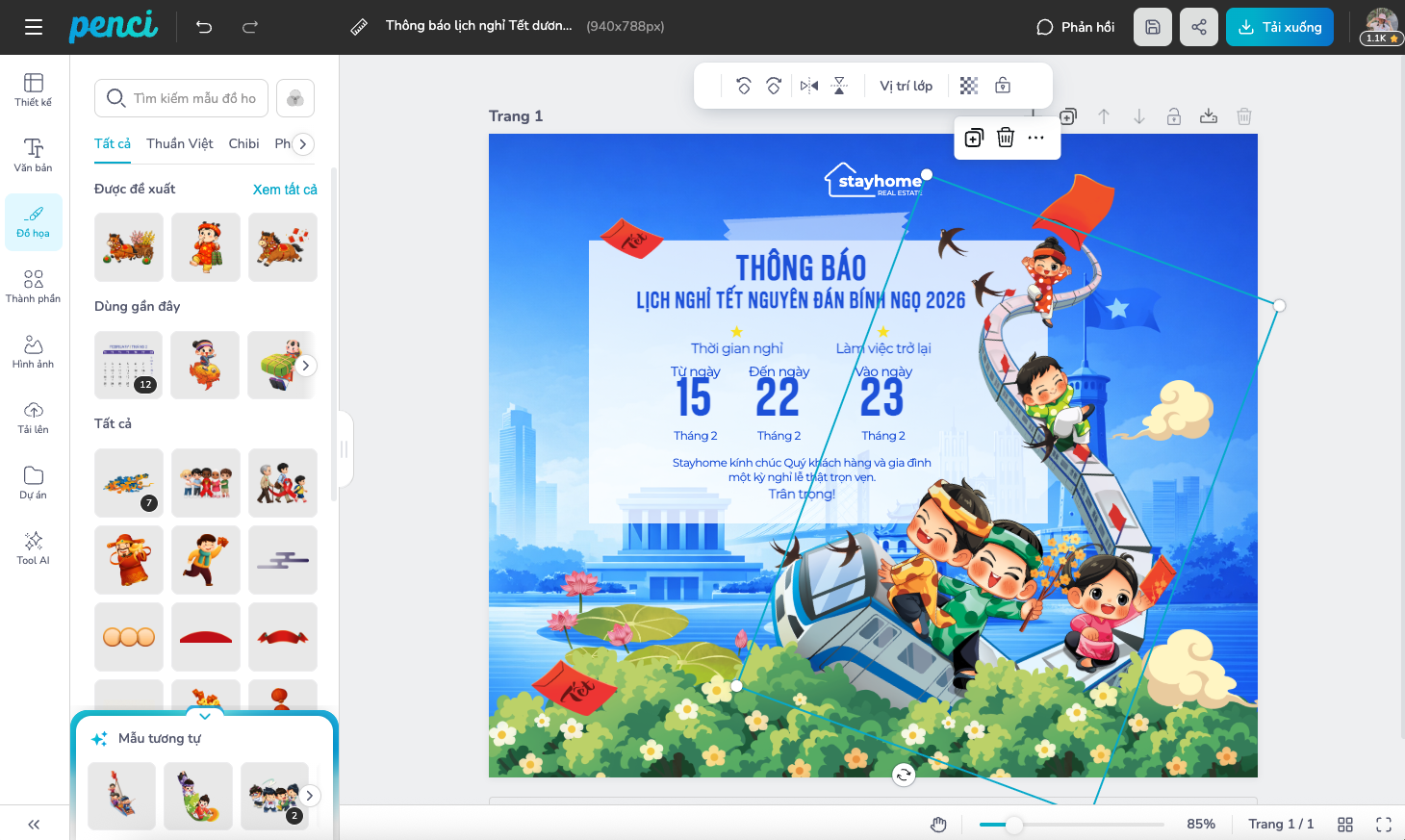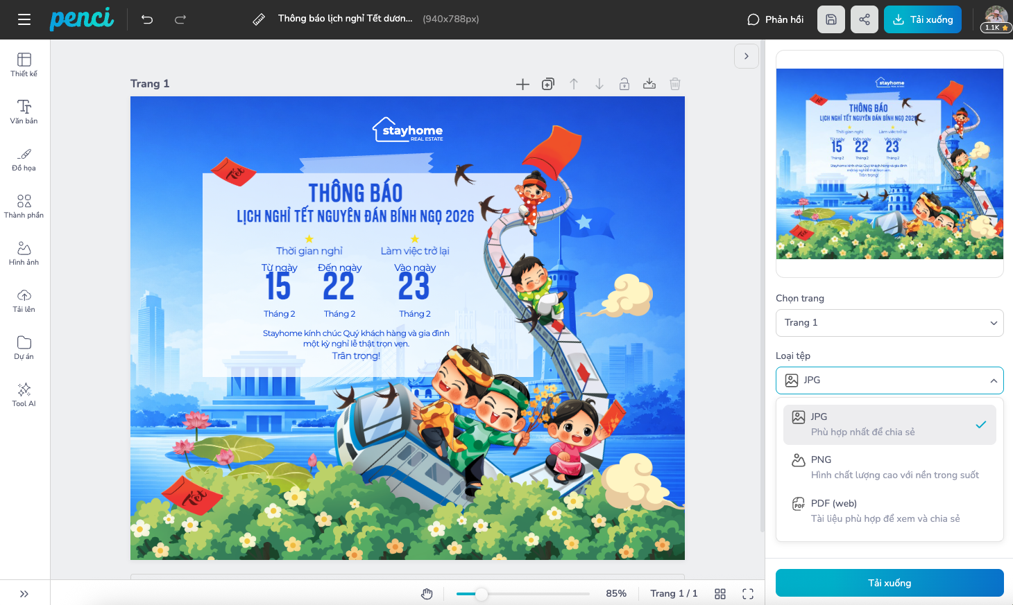 thieke thuvien Mẫu banner thông báo nghỉ Tết Nguyên Đán năm 2026 chỉnh sửa online, sáng tạo dành cho cửa hàng, doanh nghiệp By admin | 13 tháng 01 năm 2026 12 đã đọc Nghỉ Tết Âm lịch 2026 từ ngày nào? Doanh nghiệp được nghỉ Tết Ta mấy ngày? Khi nào cần đăng banner thông báo nghỉ Tết Bính Ngọ 2026 cho khách hàng? Đây là những câu hỏi được tìm kiếm rất nhiều mỗi dịp cuối năm, đặc biệt với các cửa hàng, doanh nghiệp và đơn vị dịch vụ cần chủ động thông báo lịch nghỉ Tết Nguyên Đán. Một banner thông báo nghỉ Tết rõ ràng, dễ nhìn và đúng thời điểm không chỉ giúp khách hàng nắm thông tin nhanh chóng mà còn thể hiện sự chuyên nghiệp của đơn vị trong giai đoạn cao điểm cuối năm. Trong bài viết này, Penci sẽ cập nhật lịch nghỉ Tết Nguyên Đán năm 2026 theo quy định, đồng thời giới thiệu các mẫu banner thông báo nghỉ Tết chỉnh sửa online, sáng tạo và tiện lợi, phù hợp cho nhiều mục đích sử dụng khác nhau. 1. Lịch nghỉ Tết Nguyên Đán năm 2026 Theo điểm b khoản 1 Điều 112 Bộ luật Lao động 2019, người lao động được nghỉ Tết Nguyên Đán 05 ngày và hưởng nguyên lương. Tuy nhiên, căn cứ vào điều kiện thực tế từng năm, Thủ tướng Chính phủ sẽ quyết định cụ thể lịch nghỉ Tết Nguyên Đán, bao gồm thời gian nghỉ chính thức và phương án nghỉ bù nếu có. Trên thực tế, số ngày nghỉ Tết có thể nhiều hơn 05 ngày trong trường hợp ngày nghỉ Tết trùng với ngày nghỉ hằng tuần (thứ Bảy, Chủ nhật). Khi đó, người lao động sẽ được bố trí nghỉ bù theo quy định, kéo dài kỳ nghỉ Tết. Lịch nghỉ Tết Nguyên Đán 2026 Tết Bính Ngọ 2026 này, việc theo dõi và cập nhật sớm lịch nghỉ Tết là rất cần thiết, đặc biệt với các cửa hàng bán lẻ, dịch vụ, doanh nghiệp, đơn vị vận chuyển, in ấn, logistics hay trường học, trung tâm đào tạo,... Việc chủ động chuẩn bị banner thông báo nghỉ Tết từ sớm giúp khách hàng, đối tác và người lao động dễ dàng sắp xếp kế hoạch làm việc, mua sắm và liên hệ trong dịp cuối năm. 👉 Bạn có thể xem chi tiết tại: Còn bao nhiêu ngày nữa đến Tết Nguyên Đán 2026? 2. Mẫu thông báo nghỉ Tết Nguyên Đán năm 2026 chỉnh sửa online, sáng tạo Trong bối cảnh người dùng tiếp nhận thông tin rất nhanh, banner thông báo nghỉ Tết cần đảm bảo ngắn gọn, dễ nhìn và đúng trọng tâm. Thay vì chỉ đăng một đoạn text đơn thuần, nhiều đơn vị hiện nay lựa chọn banner thiết kế sẵn để truyền tải thông tin nghỉ Tết Nguyên Đán 2026 một cách trực quan và đồng bộ hơn trên website, fanpage, Zalo OA hoặc các kênh truyền thông nội bộ. Các mẫu banner thông báo nghỉ Tết Nguyên Đán năm 2026 được thiết kế theo nhiều bố cục khác nhau, tập trung vào khả năng đọc nhanh, dễ nhận diện và thuận tiện cho việc chỉnh sửa thông tin ngày nghỉ và ngày làm việc trở lại. Banner thông báo nghỉ Tết Nguyên Đán 2026 chỉnh sửa online Mẫu banner nghỉ Tết Bính Ngọ 2026 bố cục rõ ràng Banner thông báo lịch nghỉ Tết âm lịch năm 2026 Thiết kế banner nghỉ Tết ta 2026 dễ tùy chỉnh Banner thông báo nghỉ Tết dùng cho website Mẫu banner nghỉ Tết Nguyên Đán 2026 tải miễn phí Banner thông báo lịch nghỉ Tết đầu năm 2026 Thiết kế banner nghỉ Tết 2026 chuẩn kích thước Banner nghỉ Tết Nguyên Đán dùng online Mẫu banner thông báo nghỉ Tết 2026 đơn giản >> Xem thêm: Thư viện mẫu thiết kế Thông báo nghỉ Tết âm lịch 2026 👉 Lưu ý về bản quyền thiết kế: Các mẫu banner thông báo nghỉ Tết trên Penci được thiết kế bởi đội ngũ designer, họa sĩ và cộng tác viên sáng tạo. Người dùng được phép sử dụng các mẫu này cho mục đích cá nhân hoặc tổ chức nội bộ, phục vụ hoạt động thông báo, truyền thông của đơn vị mình. Hiện tại, các mẫu chưa được cấp quyền sử dụng thương mại để bán lại dưới bất kỳ hình thức nào. Việc tải mẫu từ Penci rồi đăng bán trên website, sàn nội dung hoặc trang cá nhân là không được phép. Người dùng cần lưu ý để sử dụng đúng mục đích. 3. Vì sao nên dùng mẫu thông báo tùy chỉnh online của Penci? Thay vì thiết kế banner từ đầu hoặc chỉnh sửa các file phức tạp, Penci mang đến giải pháp thiết kế banner thông báo nghỉ Tết Nguyên Đán 2026 trực tuyến, nhanh gọn và dễ tiếp cận cho mọi đối tượng. Penci sở hữu thư viện mẫu banner thông báo nghỉ Tết được xây dựng sẵn theo nhiều bố cục, phù hợp cho các nền tảng phổ biến như website, mạng xã hội, email hoặc in ấn cơ bản. Các mẫu được thiết kế theo tinh thần Tết Việt, dễ tùy chỉnh thông tin và sử dụng ngay. Thư viện mẫu đa dạng, cập nhật theo mùa Tết Toàn bộ quá trình chỉnh sửa banner diễn ra trực tiếp trên trình duyệt. Người dùng không cần cài đặt phần mềm thiết kế hay xử lý file phức tạp. Chỉ cần chọn mẫu, chỉnh nội dung và tải về trong vài phút. Thiết kế online tiện lợi, không cần cài phần mềm Giao diện Penci được xây dựng theo hướng trực quan, thao tác kéo th