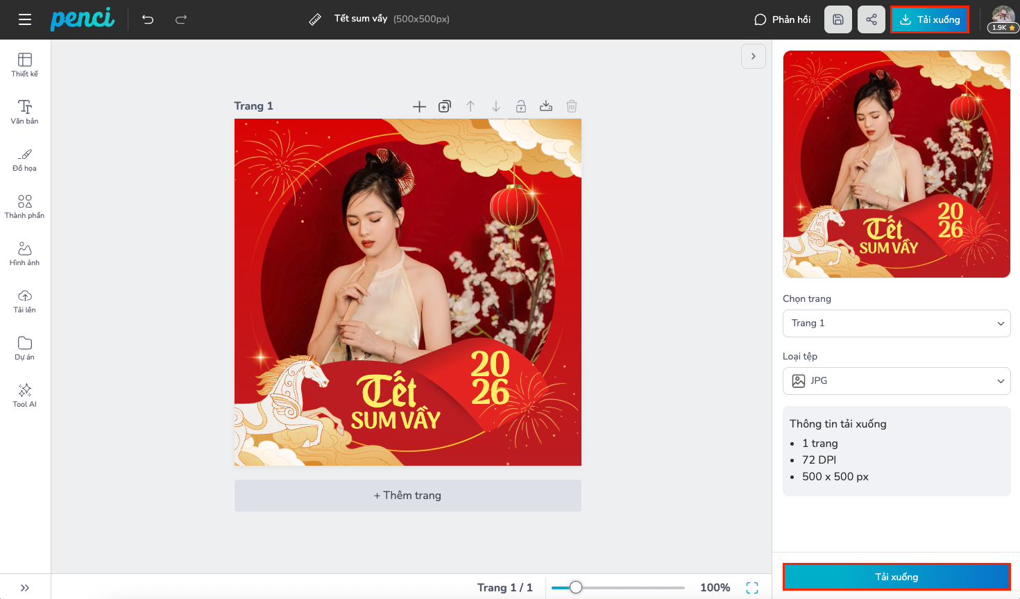 thieke thuvien Những mẫu khung avatar, khung ảnh đại diện Tết Bính Ngọ 2026 đẹp và mới nhất By admin | 29 tháng 12 năm 2025 134 đã đọc Tết Bính Ngọ 2026 không chỉ là thời khắc chuyển giao năm mới, mà còn là dịp mỗi người “làm mới” hình ảnh cá nhân trên mạng xã hội. Một trong những cách đơn giản nhưng hiệu quả nhất chính là thay khung avatar, khung ảnh đại diện Tết. Từ cá nhân, hội nhóm đến doanh nghiệp, việc đồng loạt sử dụng avatar Tết vừa tạo không khí xuân, vừa thể hiện sự gắn kết và bản sắc Việt. Cùng Penci khám phá những mẫu khung avatar Tết Bính Ngọ 2026 đẹp, mới nhất và cách tùy chỉnh online miễn phí, ai cũng làm được. >> Trọn bộ mẫu khung avatar, khung ảnh đại diện Tết Bính Ngọ 2026 miễn phí, tùy chỉnh online 1. Vì sao cần thay khung avatar trên mạng xã hội để đón Tết? Tết Nguyên Đán từ lâu đã là dịp thôi thúc người Việt dọn dẹp nhà cửa, sửa sang bàn thờ, sắm áo mới, treo câu đối đỏ. Trong bối cảnh số hóa, mạng xã hội chính là “ngôi nhà thứ hai”. Việc thay khung avatar Tết cũng giống như treo câu đối, dán chữ Phúc online, đây là cách làm mới hình ảnh để đón năm mới với tinh thần tích cực. Thay khung avatar giúp nuôi dưỡng tinh thần cộng đồng Với cá nhân khung avatar mới thể hiện tinh thần Tết và cá tính: Một khung avatar Tết đẹp giúp bạn đang vào không khí Tết chung, gửi đi thông điệp chúc mừng năm mới và vẫn giữ được ảnh cá nhân mà không cần đổi avatar hoàn toàn. Người thích truyền thống có thể chọn khung mai, đào và câu chúc. Người trẻ, Gen Z, có thể chọn khung Tết vui nhộn với màu sắc hiện đại. Với doanh nghiệp, công ty hay các hội nhóm: Việc đồng loạt thay khung avatar Tết cho fanpage, nhân sự và cộng đồng nội bộ giúp tạo cảm giác đồng bộ nhận diện ngay từ cái nhìn đầu tiên. Không cần chiến dịch rình rang hay ngân sách lớn, chỉ một khung avatar Tết được thiết kế chỉnh chu cũng đủ để người xem cảm nhận rằng tập thể này có sự chuẩn bị, có tinh thần tốt cho năm mới. Tóm lại, thay khung avatar Tết không phải là việc lớn, nhưng với tập thể, đó là một việc nhỏ mà đúng lúc, vừa giữ hình ảnh chuyên nghiệp, vừa nuôi dưỡng tinh thần cộng đồng trong những ngày đầu năm mới. 2. Những mẫu khung avatar, khung ảnh đại diện Tết Bính Ngọ 2026 đẹp và mới nhất Tết Bính Ngọ 2026 mang nguồn năng lượng mạnh mẽ và tươi mới. Tết con ngựa là mở đầu cho một năm phát triển, bức phá với sự bền bỉ và tốc độ. Vì vậy, các mẫu khung avatar Tết năm nay được thiết kế theo hướng vừa giữ trọn tinh thần truyền thống, vừa phù hợp nhịp sống hiện đại. Màu đỏ và vàng quen thuộc tiếp tục giữ vai trò chủ đạo, kết hợp cùng các hoạ tiết Tết Việt được cách điệu tinh tế, không rườm rà nhưng vẫn đủ không khí xuân. Tổng thể thiết kế hướng đến sự tối giản, dễ nhìn, không gây rối mắt, giúp khung avatar dễ dàng sử dụng cho cả cá nhân lẫn doanh nghiệp mà vẫn đảm bảo tính thẩm mỹ và sự chỉn chu trong dịp đầu năm. Khung avatar Tết Bính Ngọ đỏ vàng truyền thống khung ảnh đại diện Tết 2026 hoạ tiết mai đào Khung avatar Tết Việt tối giản hiện đại khung avatar Tết Bính Ngọ dành cho doanh nghiệp Khung ảnh đại diện Tết phong cách trẻ trung khung Tết 2026 họa tiết dân gian Việt Khung avatar chúc mừng năm mới Bính Ngọ khung ảnh đại diện Tết dùng cho hội nhóm Khung avatar Tết màu sắc tươi sáng may mắn khung avatar Tết Việt dễ chỉnh sửa online >> Thư viện mẫu khung avatar, khung ảnh đại diện Tết Bính Ngọ 2026 đẹp, sáng tạo và ấn tượng 3. Thư viện mẫu thiết kế khung avatar trên Penci miễn phí, tùy chỉnh online Penci cung cấp thư viện mẫu khung avatar Tết được thiết kế sẵn, tập trung vào tinh thần Tết Việt và nhu cầu sử dụng thực tế của người dùng. Các mẫu khung được thiết kế với bố cục chuẩn cho ảnh đại diện, hoạ tiết quen thuộc như hoa mai, hoa đào, câu chúc đầu năm, kết hợp màu sắc hài hoà, phù hợp với không khí Tết Bính Ngọ 2026. Nhờ được thiết kế tối ưu ngay từ đầu, người dùng có thể áp dụng cho nhiều nền tảng mạng xã hội mà không lo sai tỉ lệ hay mất cân đối hình ảnh. Đa dạng mẫu khung avatar chuẩn kích thước cho các nền tảng Bên cạnh thư viện mẫu đa dạng, giao diện thiết kế của Penci được xây dựng theo hướng trực quan và dễ sử dụng. Người dùng chỉ cần thao tác kéo thả để thay ảnh đại diện, chỉnh sửa nội dung chữ, màu sắc hoặc logo theo nhu cầu cá nhân hay nhận diện thương hiệu. Toàn bộ quá trình thực hiện diễn ra trực tiếp trên trình duyệt, không yêu cầu cài đặt phần mềm hay kiến thức thiết kế chuyên sâu. Giao diện thiết kế trực quan, dễ dàng sử dụng 👉 Xem thêm: Hướng dẫn tự thiết kế khung avatar, khung ảnh đại diện đúng chuẩn, chuyên nghiệp Đồ hoạ đa dạng, có một số được vẽ tay độc quyền và font chữ Việt Hóa không lỗi dấu. Sau khi ho