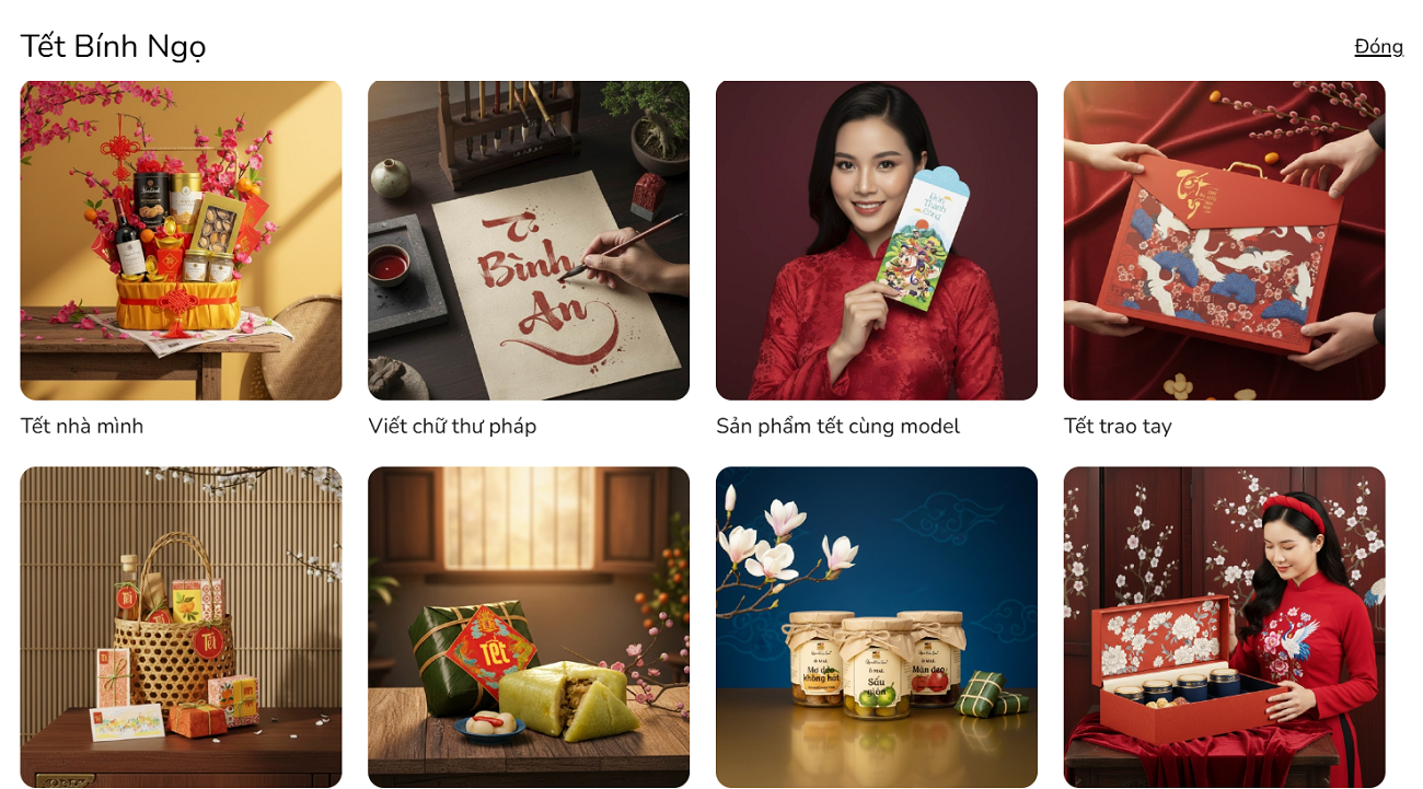thieke thuvien Tạo phông nền Tết cho sản phẩm bằng AI không cần câu lệnh, có sẵn background Tết 2026 đẹp dùng ngay cho bán hàng By admin | 07 tháng 01 năm 2026 32 đã đọc Dịp Tết Bính Ngọ 2026, việc sở hữu những bộ ảnh sản phẩm lung linh là yếu tố "sống còn" để bùng nổ doanh số. Tuy nhiên, không phải ai cũng có ngân sách thuê studio hay kỹ năng viết những câu lệnh (prompt) phức tạp. Xu hướng tạo phông nền Tết cho sản phẩm bằng AI không cần câu lệnh đang trở thành "cứu cánh" cho các chủ shop online. Với công nghệ AI tạo ảnh background Tết cho sản phẩm, bạn có thể thay background Tết bằng AI chỉ trong vài giây. >> Tham khảo thêm các mẫu bài post social, bài đăng mạng xã hội đẹp và thu hút 1. Vì sao nên dùng AI để tạo phông nền Tết cho sản phẩm? Thực tế cho thấy không phải ai bán hàng cũng là designer hay photographer chuyên nghiệp. Phần lớn người bán chỉ cần phông nền Tết đẹp, đúng tinh thần lễ hội và có thể dùng ngay cho bán hàng, thay vì mất thời gian dựng bối cảnh, chụp lại hay chỉnh sửa thủ công. Các công cụ AI hiện nay giải quyết đúng nhu cầu đó bằng cách tự động hóa toàn bộ quy trình. Với Penci, người dùng có thể tạo phông nền Tết cho sản phẩm bằng AI không cần câu lệnh, không phải viết prompt phức tạp hay can thiệp kỹ thuật. Tạo phông nền Tết cho sản phẩm bằng AI không cần câu lệnh Penci AI hỗ trợ người bán tối đa với các tính năng thông minh - Tạo background Tết chân thật mà không cần setup bối cảnh chụp- Tự động ghép ảnh sản phẩm vào không gian Tết, đảm bảo bố cục hài hòa- Căn chỉnh ánh sáng và màu sắc để sản phẩm nổi bật nhưng vẫn giữ không khí lễ hội Nhờ đó, người bán có thể dễ dàng sở hữu phông nền Tết truyền thống hoặc phong cách hiện đại, phù hợp với từng loại sản phẩm, mà không cần chỉnh tay hay kỹ năng thiết kế. >> Tham khảo ngay các mẫu decal, tem dán sản phẩm Tết 2026 ấn tượng nhất 2. Tổng hợp các tool AI tạo phông nền Tết tự động không cần câu lệnh của Penci Penci cung cấp các công cụ AI tạo background Tết với hàng nghìn mẫu background Tết 3D cho sản phẩm. Bạn không cần đau đầu suy nghĩ câu lệnh, chỉ cần chọn phong cách mình muốn và AI sẽ tự phân tích hình ảnh sản phẩm, tách nền chính xác và ghép vào background Tết cho sản phẩm đã được thiết kế sẵn. Các tool AI của Penci tập trung giải quyết bài toán tạo phông nền Tết cho sản phẩm bằng AI nhanh, đẹp và dùng được ngay cho bán hàng online trên các nền tảng Shopee, TikTok Shop, website và quảng cáo mạng xã hội. 2.1. Phông nền Tết truyền thống “Sắc đỏ mai vàng” bằng AI cho sản phẩm Concept sử dụng phông nền Tết truyền thống với gam đỏ chủ đạo, kết hợp hoa mai, ấm trà và các chi tiết trang trí quen thuộc ngày Tết. AI tự động ghép sản phẩm vào background Tết cho sản phẩm theo bố cục cân đối, tạo cảm giác ấm cúng và đậm không khí lễ hội. Concept này đặc biệt phù hợp với các sản phẩm mang tính truyền thống như bánh mứt, trà, đặc sản biếu Tết,... giúp tạo phông nền Tết cho sản phẩm bằng AI theo đúng tinh thần Tết cổ truyền, dễ ứng dụng cho ảnh bán hàng online. >> Nhấn vào đây để bắt đầu tạo phông nền Tết đỏ mai vàng cho sản phẩm Phông nền Tết truyền thống sắc đỏ mai vàng cho sản phẩm 2.2. Phông nền Tết 2026 phong cách sang trọng “Tết thanh xuân” “Tết thanh xuân” là concept phông nền Tết 2026 mang phong cách hiện đại, sang trọng, sử dụng gam xanh dương kết hợp họa tiết vân mây truyền thống cách điệu. AI tạo background Tết với bố cục thoáng, giúp sản phẩm nổi bật nhưng vẫn giữ được tinh thần Tết Á Đông. Concept này phù hợp với các sản phẩm giá trị cao như rượu, quà biếu doanh nghiệp,... cần hình ảnh chỉnh chu để bán hàng. >> Nhấn vào đây để bắt đầu tạo phông nền Tết sang trọng cho sản phẩm AI tạo phông nền Tết xanh dương sang trọng cho ảnh sản phẩm 2.3. Phông nền concept “Tết nhà mình” tạo background Tết ấm áp cho sản phẩm Concept “Tết nhà mình” mang tone vàng ấm, tái hiện không gian gia đình gần gũi ngày Tết. AI tự động ghép nền Tết với các chi tiết quen thuộc như bàn trà, gian bếp, tạo cảm giác thân thuộc và đời thường. Concept này rất phù hợp với các sản phẩm thủ công, đặc sản nhà làm hoặc quà Tết mang tính cảm xúc, gần gũi với người mua. >> Nhấn vào đây để bắt đầu tạo phông nền Tết ấm áp cho sản phẩm Phông nền Tết ấm áp, đơn giản cho sản phẩm bán hàng 2.4. Phông nền concept “Xuân phú quý” tạo ảnh sản phẩm Tết cùng model “Xuân phú quý” là concept AI tạo phông nền Tết kết hợp sản phẩm cùng model, giúp hình ảnh trông chân thật như chụp studio. AI tự động xử lý ánh sáng, tỉ lệ và bối cảnh để sản phẩm hòa hợp với nhân vật. >> Nhấn vào đây để bắt đầu tạo phông nền Tết cùng người mẫu cho sản phẩm AI chụp ảnh sản phẩm Tết cùng người mẫu không cần studio 2.5. Phông n