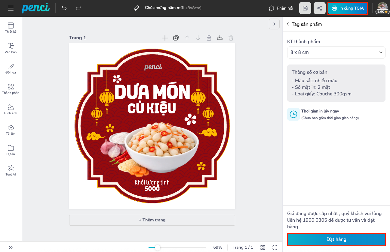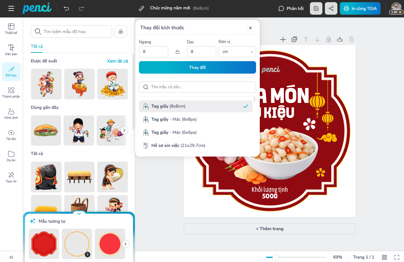 thieke thuvien Tổng hợp mẫu thiết kế tag treo trang trí Tết, tag giấy hộp quà Tết miễn phí, đặt in theo yêu cầu By admin | 05 tháng 01 năm 2026 30 đã đọc Tag treo Tết tuy là chi tiết nhỏ nhưng lại đóng vai trò quan trọng trong việc hoàn thiện hình ảnh quà Tết, sản phẩm Tết và không gian trang trí ngày Xuân. Một chiếc tag treo được thiết kế đẹp, nội dung phù hợp không chỉ giúp truyền tải lời chúc năm mới ý nghĩa mà còn góp phần nâng cao cảm nhận về sự chỉn chu, tinh tế của người tặng. Trong bài viết này, Penci sẽ tổng hợp các mẫu thiết kế tag treo trang trí Tết, tag giấy hộp quà Tết miễn phí, dễ tùy chỉnh online, đồng thời có thể đặt in trực tiếp theo yêu cầu. Phù hợp cho cá nhân, cửa hàng, thương hiệu, doanh nghiệp chuẩn bị quà Tết cuối năm. 1. Tag treo Tết dùng để làm gì? Trong dịp Tết Nguyên Đán, tag treo không đơn thuần là vật trang trí mà còn mang nhiều ý nghĩa về mặt thẩm mỹ, thông tin và cảm xúc. Tùy theo mục đích sử dụng, tag treo Tết thường được chia thành hai nhóm chính: tag lời chúc và tag sản phẩm. Tag treo lời chúc Tết Đây là loại tag phổ biến nhất trong các dịp biếu tặng quà Tết. Tag lời chúc thường được gắn trên hộp quà, túi quà, giỏ quà hoặc cành đào, cành mai trang trí. Nội dung trên tag có thể là những câu chúc Tết truyền thống như An khang - Thịnh vượng - Vạn sự như ý, hoặc lời chúc cá nhân hóa dành riêng cho người nhận. Tag lời chúc giúp món quà trở nên ấm áp, có chiều sâu cảm xúc hơn so với việc chỉ tặng quà đơn thuần. Với các thương hiệu, tag lời chúc còn là cách tinh tế để gửi thông điệp năm mới đến khách hàng mà không quá quảng cáo. Tag lời chúc thường dùng để trang trí nhà cửa, cây cảnh ngày Tết Tag treo sản phẩm Tết Tag sản phẩm thường được sử dụng cho các mặt hàng bán dịp Tết như bánh mứt, trà, cà phê, quà Tết doanh nghiệp, đặc sản vùng miền. Trên tag sẽ thể hiện các thông tin cần thiết như tên sản phẩm, thành phần, hạn sử dụng, thương hiệu, thông điệp Tết hoặc mã QR. So với nhãn dán, tag giấy treo giúp sản phẩm trông cao cấp hơn, dễ thay đổi theo mùa vụ và phù hợp với các dòng quà Tết đóng gói sẵn. Đây cũng là lựa chọn được nhiều shop và thương hiệu nhỏ ưu tiên vì vừa đẹp, vừa linh hoạt, vừa tiết kiệm chi phí thiết kế. Tag Tết được ưa chuộng đối với sản phẩm được đóng gói sẵn 2. Tổng hợp mẫu thiết kế tag treo trang trí Tết, tag giấy hộp quà Tết miễn phí Để giúp bạn tiết kiệm thời gian chuẩn bị Tết, các mẫu tag treo Tết đã được Penci thiết kế sẵn với nhiều phong cách khác nhau: từ truyền thống đến hiện đại, từ tối giản đến rực rỡ sắc Xuân. Điểm chung của các mẫu này là bố cục rõ ràng, dễ đọc, dễ chỉnh sửa nội dung và phù hợp cho cả in ấn lẫn sử dụng online. Mẫu tag treo trang trí Tết phong cách truyền thống Tag giấy hộp quà Tết thiết kế tối giản, dễ gắn trên túi quà và hộp quà Mẫu tag treo Tết lời chúc Vạn Phúc sang trọng Tag treo quà Tết phù hợp cho giỏ quà doanh nghiệp cuối năm Mẫu tag giấy Tết thiết kế hiện đại, màu vàng nổi bật Tag treo sản phẩm Tết giúp hiển thị thông tin rõ ràng, chuyên nghiệp Mẫu tag treo Tết dễ chỉnh sửa, phù hợp nhiều ngành hàng Tag giấy hộp quà Tết dùng cho bánh mứt, trà, cà phê ngày Xuân Mẫu tag treo trang trí Tết miễn phí, sẵn sàng tải về và in ấn Tag treo Tết thiết kế đồng bộ, giúp quà Tết thêm chỉn chu >>Xem thêm tại: Thư viện mẫu thiết tag treo trang trí Tết, tag giấy hộp quà Tết miễn phí, đa dạng 3. Dễ dàng tùy chỉnh mẫu thiết kế Một trong những lý do khiến các mẫu tag treo Tết thiết kế sẵn của Penci ngày càng được ưa chuộng là khả năng tùy chỉnh nhanh chóng mà không cần biết thiết kế. Thay vì phải mất thời gian làm việc với designer hoặc chỉnh sửa file phức tạp, bạn hoàn toàn có thể tự thao tác online chỉ trong vài phút. Bạn có thể linh hoạt thay đổi nội dung lời chúc Tết theo từng đối tượng nhận quà, từ gia đình, bạn bè đến khách hàng. Hệ thống font chữ Việt hóa đầy đủ giúp hiển thị tiếng Việt chuẩn, không lỗi dấu, đảm bảo tính thẩm mỹ và trang trọng. Linh hoạt thay đổi nội dung dễ dàng Việc chỉnh sửa tên sản phẩm, thông tin thương hiệu và logo được thực hiện nhanh chóng. Bạn chỉ cần tải hình ảnh lên thư viện cá nhân và chèn trực tiếp vào mẫu thiết kế, không cần thao tác phức tạp. Tải hình ảnh lên và chèn vào thiết kế nhanh chóng Bạn cũng có thể tùy chọn màu sắc và font chữ phù hợp với nhận diện thương hiệu. Màu sắc được điều chỉnh linh hoạt thông qua bảng màu có sẵn hoặc nhập mã màu hex để đảm bảo độ chính xác. Tuỳ chỉnh màu sắc theo ý thích hoặc bộ màu thương hiệu Ngoài ra, kích thước tag có thể điều chỉnh theo nhu cầu sử dụng thực tế, phù hợp treo quà, dán hộp hoặc in số lượng lớn, giúp bạn chủ động hơn trong khâu in ấn và đóng gói. Resize