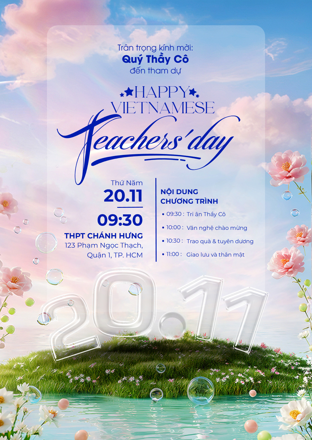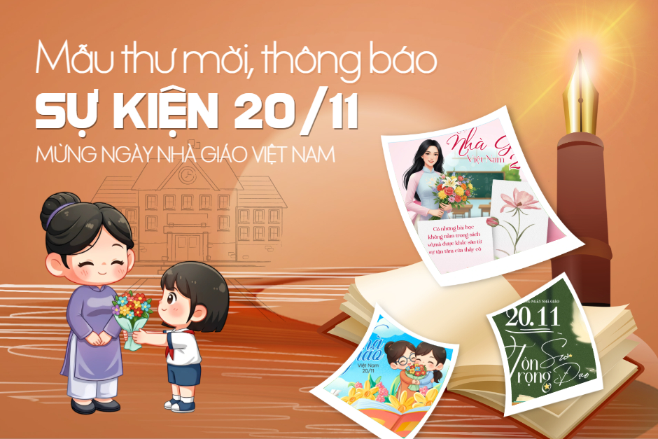 thieke thuvien Tổng Hợp Mẫu Thư Mời Dự Lễ Kỷ Niệm Ngày Nhà Giáo Việt Nam, Mẫu Thông Báo Sự Kiện 20/11 Trang Trọng & Chuyên Nghiệp By admin | 12 tháng 11 năm 2025 1193 đã đọc Ngày Nhà giáo Việt Nam 20/11 là dịp tri ân thiêng liêng nhất của nghề Nhà giáo. Vì vậy, một Mẫu thư mời dự lễ kỷ niệm ngày Nhà giáo Việt Nam 20/11 không chỉ là thông báo mà còn là bộ mặt, thể hiện sự trân trọng và chuyên nghiệp của đơn vị tổ chức. Để giúp các trường học, doanh nghiệp, CLB, các đơn vị tổ chức dễ dàng chuẩn bị cho ngày lễ kỷ niệm 20/11, Penci đã tổng hợp 20+ mẫu thư mời dự lễ kỷ niệm ngày Nhà giáo Việt Nam trang trọng, hiện đại và hướng dẫn thiết kế thư mời 20/11 online nhanh chóng chỉ trong vài phút. >> Xem thêm các mẫu poster chào mừng ngày nhà giáo Việt Nam sáng tạo, độc đáo 1. Tải ngay 20+ mẫu thư mời dự lễ kỷ niệm ngày Nhà giáo Việt Nam chuyên nghiệp, mẫu thông báo sự kiện tri ân thầy cô ngày 20/11 ấn tượng Nếu bạn đang tìm mẫu thư mời dự lễ 20/11 cho nhà trường, doanh nghiệp hay các đơn vị tổ chức ngày lễ 20/11, dưới đây là tổng hợp những Mẫu thư mời dự lễ kỷ niệm ngày Nhà giáo Việt Nam, mẫu thông báo sự kiện 20/11 được sử dụng phổ biến nhất, đảm bảo tính ứng dụng cao cho mọi đối tượng. >> Xem ngay các mẫu thiệp chúc mừng 20/11 đẹp, ý nghĩa Tùy chỉnh Mẫu thư mời dự lễ kỷ niệm ngày Nhà giáo Việt Nam này Xem mẫu thiết kế thư mời dự lễ 20/11 ấn tượng này Mẫu thông báo chương trình kỷ niệm 20/11 chi tiết Mẫu thư mời dự lễ 20/11 của trường THPT chuẩn đẹp, chuyên nghiệp Mẫu thư mời dự lễ 20/11 hiện đại, tối giản, phù hợp mọi trường học Mẫu thư mời kỷ niệm ngày Nhà giáo Việt Nam đẹp, dễ chỉnh sửa Mẫu thông báo sự kiện 20/11 chuyên nghiệp, trình bày chuẩn >> Tham khảo ngay THƯ VIỆN MẪU Thư mời kỷ niệm ngày Nhà giáo Việt Nam miễn phí 2. Những lưu ý “Vàng” khi thiết kế mẫu thư mời 20/11 đảm bảo tính thẩm mỹ, trang trọng và chuyên nghiệp Một mẫu thư mời dự lễ kỷ niệm ngày Nhà giáo Việt Nam đẹp không chỉ nằm ở hình thức mà còn ở cách thể hiện cảm xúc tri ân. Dưới đây là những yếu tố quan trọng giúp bạn thiết kế thư mời 20/11 trang trọng, chuyên nghiệp và giàu ý nghĩa: >> Xem ngay các lời chúc 20/11 dành cho thầy cô hay, ý nghĩa 1. Cấu trúc nội dung chuẩn, dễ đọc, dễ hiểu Nội dung là yếu tố cốt lõi của một thư mời dự lễ 20/11 hay thông báo sự kiện 20/11 chính thức. Đảm bảo các thông tin sau phải rõ ràng, chính xác và sử dụng ngôn ngữ trang trọng: - Tên sự kiện: Ghi rõ “Lễ kỷ niệm Ngày Nhà giáo Việt Nam 20/11” để người nhận dễ dàng nắm bắt mục đích buổi lễ.- Chủ thể gửi thư: Nêu rõ tên trường, cơ quan hoặc đơn vị tổ chức. Ví dụ: Trường Tiểu học A trân trọng kính mời quý phụ huynh dự Lễ kỷ niệm 20/11…- Địa điểm & thời gian: Cần ghi chính xác các thông tin quan trọng như ngày, giờ, phút và địa điểm cụ thể để tránh nhầm lẫn.- Lời kết: Hãy kết thúc bằng lời cảm ơn, chúc tốt đẹp và thể hiện sự trân trọng. Đây là phần quan trọng giúp thư mời dự lễ 20/11 trở nên ấm áp và ý nghĩa hơn. >> Gợi ý: Bạn có thể tham khảo cách viết thư mời dự lễ 20/11 chuẩn ngay trên Penci với hàng loạt các mẫu có sẵn, chỉ cần thay tên đơn vị và thời gian là hoàn thiện. Chỉnh sửa thông tin trên mẫu thư mời 20/11 có sẵn với Penci 2. Bố cục và thiết kế hài hòa, nổi bật tinh thần tri ân Một mẫu thư mời kỷ niệm ngày Nhà giáo Việt Nam đẹp phải có bố cục gọn gàng, bố trí hợp lý giữa chữ, hình và khoảng trắng. - Bố cục tinh gọn: Ưu tiên thiết kế cân đối, phần thông tin quan trọng được trình bày rõ ràng, dễ đọc.- Màu sắc hài hòa: Chọn tone màu nhẹ nhàng, tươi sáng như xanh, hồng, be, tím, vàng hoặc đỏ. Các tone màu nên phù hợp với màu thương hiệu của trường hoặc phong cách sự kiện.- Font chữ dễ đọc: Sử dụng phông chữ rõ ràng, tránh kiểu chữ quá bay bổng gây rối mắt.- Hình ảnh minh họa: Nên chọn các chi tiết quen thuộc như hoa hồng, bút phấn, bảng đen, sách vở, hoặc biểu tượng 20/11 để làm nổi bật không khí tôn sư trọng đạo. Bố cục gọn gàng, thể hiện chính phụ của các mẫu thông báo sự kiện 20/11 của Penci >> Xem ngay các hình ảnh, đồ họa đẹp có thể dùng trong thiết kế thư mời dự lễ 20/11 Để tiết kiệm thời gian và đảm bảo các tiêu chí trên, bạn có thể tham khảo các mẫu thiết kế thư mời dự lễ 20/11 chuyên nghiệp của Penci. Các mẫu thư mời dự lễ 20/11 đều đã được thiết kế sẵn, đáp ứng đủ các tiêu chí về thẩm mỹ, bố cục và chuẩn mực nội dung, cho phép bạn lựa chọn và tùy chỉnh miễn phí. Ngoài ra, Penci còn hỗ trợ xuất mẫu thư mời 20/11 file PDF chất lượng cao dùng trong in ấn hoặc in bản cứng trực tiếp tại Penci giúp tiết kiệm thời gian mà vẫn đảm bảo tính thẩm mỹ và sự đồng bộ cho toàn trường. Hy vọng những Mẫu thư mời tha