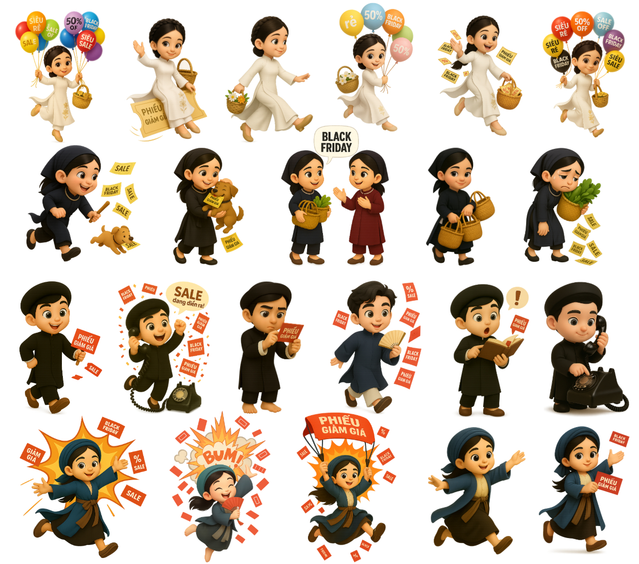 thieke thuvien Tổng hợp tài nguyên Đồ hoạ Black Friday miễn phí, phong cách thuần Việt được vẽ tay độc quyền By admin | 19 tháng 11 năm 2025 18 đã đọc Black Friday 2025 đang đến gần, các chủ shop và người làm truyền thông chắc hẳn đã bắt đầu lao vào vòng xoáy tìm visual. Thứ đau đầu nhất không phải là giảm bao nhiêu %, mà là tìm đâu ra bộ đồ hoạ đẹp, thuần Việt, dễ dùng, không bị đụng hàng. Những thư viện icon quốc tế thì trông xa lạ, còn đồ họa free trên mạng thì phong cách mỗi nơi một kiểu. Đó là lý do bộ tài nguyên đồ hoạ Black Friday vẽ tay độc quyền của Penci xuất hiện để “giải quyết” triệt để bài toán hình ảnh và đồ hoạ cho người Việt, từ poster, banner, social post cho đến trang trí cửa hàng. Bộ đồ hoạ Black Friday của Penci được thiết kế theo nhu cầu thật của người kinh doanh Việt Nam với những hình vẽ gần gũi, bố cục dễ dùng, màu sắc rõ ràng và phù hợp cả online lẫn offline. Mỗi nhóm đồ hoạ đều có mục đích riêng, nhưng khi kết hợp lại thì chiến dịch sale của bạn nhìn sẽ liền mạch và chuyên nghiệp hơn hẳn. 1. Đồ hoạ minh hoạ hành động mua sắm Những hình vẽ mô tả khách hàng đang “tung tăng” mua sắm, xếp hàng săn deal hoặc cầm túi shopping to đùng luôn tạo cảm giác rộn ràng trước thềm Black Friday. Các họa sĩ Penci đã Việt hoá toàn bộ cử chỉ, trang phục, biểu cảm để tạo cảm giác thân thuộc. Từ dáng người ôm một đống túi quà đến dáng nhón chân chọn sản phẩm đều mang tinh thần “đi săn sale là phải vui, phải nhiệt”. Một số đồ hoạ thể hiện hành động mua sắm ngày sale “kiểu Việt” Thị trường cuối năm tại Việt Nam rất sôi động Đây là dạng đồ hoạ rất phù hợp để làm điểm nhấn trong poster hoặc minh hoạ cho social post, giúp tăng năng lượng tích cực và kích thích hành vi mua sắm. >> Khám phá trọn bộ tài nguyên đồ hoạ Black Friday miễn phí, phong cách thuần Việt được vẽ tay độc quyền 2. Đồ hoạ giỏ hàng, icon giảm giá và sản phẩm sale Nhóm này là “bộ công cụ” không thể thiếu để truyền tải đúng tinh thần mua sắm dịp Black Friday. Từ giỏ hàng chạy nhanh, giỏ hàng bật tung ưu đãi, đến túi quà đầy ắp đều được vẽ bằng nét mềm, bo tròn tạo cảm giác thân thiện. Bộ icon phần trăm, flash sale, tag giá giảm được chế tác bằng chữ vẽ tay, dễ nhìn và hợp với văn hoá xem số lớn, chữ ít của khách hàng Việt. Mẫu đồ hoạ giỏ hàng, icon giảm giá và sản phẩm sale mới nhất Những đồ hoạ này giúp thông tin giảm giá xuất hiện nổi bật mà không cần chèn quá nhiều chữ. Chỉ cần một con số lớn và icon rõ ràng là có ngay visual ấn tượng cho Facebook, Instagram hay banner website. 3. Đồ hoạ nhân viên đang làm việc tích cực Không ai hiểu “áp lực” của mùa sale bằng nhân viên bán hàng. Vì vậy bộ đồ hoạ nhân viên được Penci tạo riêng để thể hiện tinh thần “làm hết công suất”: đóng gói đơn, hướng dẫn khách, bê hàng, soạn hoá đơn, quét mã thanh toán. Những hình này cực phù hợp cho các bài đăng mang tính kể chuyện, hậu trường, hoặc muốn truyền tải hình ảnh thương hiệu tận tâm, thân thiện.Điều đáng giá là hình dáng nhân vật, nét mặt, trang phục đều “rất Việt”, tạo sự gần gũi với khách hàng hơn hẳn những bộ icon quốc tế vốn khá xa lạ. Mẫu đồ hoạ nhân viên chăm chỉ mùa sale bận rộn Đồ hoạ mô tả cảm xúc nhân viên mùa sale vui nhộn 4. Chủ đề đồ hoạ Thuần Việt - Bộ đồ hoạ đặc biệt nhất của Penci Đây là phần đắt giá nhất, khác hoàn toàn với các thư viện icon phổ biến trên mạng. Bộ “Chủ đề thuần Việt” bao gồm những chữ vẽ tay và hình minh họa mang đúng tinh thần Việt Nam dân dã. Toàn bộ đều được đội hoạ sĩ Penci tự vẽ, nên khi nhìn vào là biết ngay thương hiệu đang hướng tới khách hàng Việt và muốn tạo phong cách riêng cho mùa sale. Đây là nhóm đồ hoạ giúp cửa hàng nổi bật giữa hàng ngàn visual Black Friday đầy tính quốc tế ngoài kia. Đồ hoạ Thuần Việt được vẽ tay độc quyền bởi hoạ sĩ nhà Penci Đồ họa mang âm sắc dân tộc khó có thể nhầm lẫn Đồ hoạ dân dã nhưng không lỗi thời Bạn có thể đặt những dòng chữ thuần Việt này vào poster lớn, ghép lên banner social hoặc phối cùng hình minh hoạ nhân vật để tạo cảm giác dân dã nhưng hiện đại. Nó khiến chiến dịch của bạn có “chất”, có câu chuyện và đặc biệt là không bị “lẫn vào rừng sale”. Khám phá tất cả mẫu đồ hoạ ngay trong giao diện thiết kế Nếu bạn muốn tạo visual Black Friday vừa nhanh, vừa đẹp, vừa đậm chất Việt Nam, bộ đồ hoạ vẽ tay độc quyền của Penci chính là lựa chọn tối ưu nhất. Tất cả đều miễn phí, dễ sử dụng và phù hợp cho mọi kích thước thiết kế từ online đến in ấn. Hãy truy cập Penci.vn để khám phá trọn bộ tài nguyên thuần Việt, độc quyền, chuẩn thẩm mỹ, giúp chiến dịch của bạn nổi bật ngay từ cái nhìn đầu tiên. >> Khám phá tr