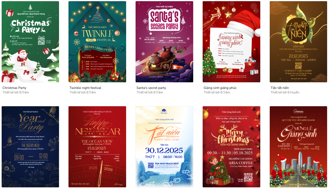thieke thuvien Top 99+ mẫu thư mời, thiệp mời tham dự Tiệc Giáng Sinh đáng yêu, sáng tạo và mới nhất By admin | 12 tháng 12 năm 2025 14 đã đọc Giáng Sinh luôn là dịp đặc biệt để doanh nghiệp, trường học, cửa hàng hay gia đình tổ chức những buổi tiệc ấm áp, tạo cơ hội gắn kết và lan tỏa tình cảm. Và trong bất kỳ sự kiện nào, một chiếc thư mời, thiệp mời tham dự Tiệc Giáng Sinh được thiết kế chỉn chu luôn đóng vai trò mở đầu cho trải nghiệm cảm xúc của người nhận. Từ những mẫu thiệp đáng yêu, tinh nghịch đến thiết kế sang trọng, trang trọng, tất cả đều góp phần truyền tải chủ đề lễ hội và tạo thiện cảm ngay từ cái nhìn đầu tiên. Trong bài viết này, Penci sẽ mang đến cho bạn bộ sưu tập những mẫu thư mời, thiệp mời Giáng Sinh đẹp và mới nhất, kèm hướng dẫn tạo thiệp trực tuyến đơn giản dù bạn “mù” thiết kế. 1. Tổng hợp mẫu thư mời, thiệp mời tham dự Tiệc Giáng Sinh đáng yêu, sáng tạo Những mẫu thiệp mời Giáng Sinh năm nay tập trung vào phong cách trẻ trung, hiện đại nhưng vẫn giữ nét truyền thống với sắc đỏ, xanh, trắng kinh điển, họa tiết kẹo bạc hà, người tuyết, cây thông và cả phong cách tối giản sang trọng. Dù bạn đang cần thiệp mời tiệc công ty, tiệc lớp, tiệc gia đình hay sự kiện thương mại, bộ sưu tập dưới đây sẽ giúp bạn tìm được mẫu ưng ý nhất: Mẫu thiệp mời Giáng Sinh đáng yêu với tông hồng xanh nổi bật, dễ thương. Thiệp mời tiệc Noel phong cách tối giản hiện đại, phù hợp mọi sự kiện. Mẫu thư mời Giáng Sinh sáng tạo với họa tiết cây thông bắt mắt. Thiệp mời tiệc công ty mùa Noel sang trọng, thiết kế chuyên nghiệp. Mẫu thiệp Giáng Sinh dành cho gia đình với màu sắc ấm áp thân thiện. Thiệp mời Noel phong cách dễ thương, phù hợp tiệc lớp hoặc câu lạc bộ. Mẫu thư mời Giáng Sinh nghệ thuật với minh họa chú lùn độc đáo. Thiệp mời tiệc tối Giáng Sinh sang trọng với bố cục tinh tế hài hòa. Mẫu thiệp Noel hiện đại, trẻ trung, phù hợp thương hiệu và doanh nghiệp. Bạn có thể khám phá thêm hàng trăm mẫu thiệp mời Giáng Sinh mới nhất, đầy đủ phong cách từ dễ thương đến sang trọng tại đây. Tất cả đều có thể chỉnh sửa online cực nhanh và miễn phí. >> Xem thêm: Thư viện mẫu thiệp chúc mừng Giáng Sinh ý nghĩa, sáng tạo và ấn tượng 2. Hướng dẫn tạo thư mời trực tuyến và cách viết chữ lên thiệp mời tham dự tiệc Giáng Sinh Muốn gửi lời mời thật ấn tượng đến bạn bè, đồng nghiệp hay khách mời trong dịp Giáng Sinh nhưng không biết thiết kế? Với Penci, bạn hoàn toàn có thể tự tay tạo nên một mẫu thư mời Giáng Sinh online vừa đẹp mắt vừa đúng tinh thần lễ hội chỉ trong vài phút, không cần kỹ năng thiết kế. Dưới đây là hướng dẫn chi tiết để bạn bắt đầu: Bước 1: Chọn mẫu thư mời Giáng Sinh có sẵn từ thư viện Penci Truy cập Penci.vn và tìm từ khóa hoặc chọn ngay chuyên mục “Thư mời”. Tại đây, bạn sẽ thấy hàng trăm mẫu thư mời, thiệp mời tham dự Giáng Sinh được thiết kế sẵn theo nhiều phong cách: dễ thương, hiện đại, sang trọng, vintage, tiệc công ty, tiệc lớp, tiệc gia đình,… Tất cả đều mang sắc màu của mùa Noel hạnh phúc, bố cục hài hòa và có thể chỉnh sửa theo nội dung sự kiện của bạn. Chỉ cần chọn một mẫu bạn ưng ý nhất và bắt đầu chỉnh sửa. Thư viện mẫu thiết kế thư mời, thiệp mời Giáng Sinh đa dạng Bước 2: Thêm nội dung thư mời vào thiệp mời Ở bước này, chỉ cần đổi lại các thông tin trên thư mời từ tên chương trình, thời gian, địa điểm, mã QR,... sao cho đúng với chương trình của bạn. Điểm hay là Penci tích hợp AI viết nội dung ngay trong giao diện thiết kế. Bạn chỉ cần gõ vài từ khóa gợi ý như “lời mời tham dự tiệc Giáng Sinh công ty”, “thư mời Noel trang trọng”, “lời mời tiệc Giáng Sinh dễ thương”,… AI sẽ tự động tạo đoạn nội dung hoàn chỉnh, đúng giọng điệu và đúng tinh thần sự kiện. Dễ dàng chỉnh sửa nội dung online Không chỉ vậy, bạn có thể yêu cầu AI: - Viết tiếp nội dung đã có sẵn - Biến đổi giọng văn sang trang trọng, vui tươi hoặc ấm áp,... - Chỉnh lời mời theo nhiều ngôn ngữ như Anh, Hàn, Nhật,… nếu bạn có khách quốc tế Tất cả đều diễn ra trực tiếp trong công cụ, dễ dùng và trực quan. Bước 3: Tải thiệp mời xuống để gửi đi Sau khi hoàn thiện thư mời, bạn có thể tải về máy để gửi qua Messenger, Zalo, email hoặc đăng thông báo lên mạng xã hội, Tải về dạng ảnh JPG/PNG hoặc PDF miễn phí. Nếu bạn muốn tạo ngay một chiếc thư mời, thiệp mời Giáng Sinh độc đáo, hãy truy cập Penci.vn để chọn mẫu, chỉnh sửa và tải về miễn phí nha. Penci - Thiết kế dễ dàng, đậm chất Việt Đã sao chép