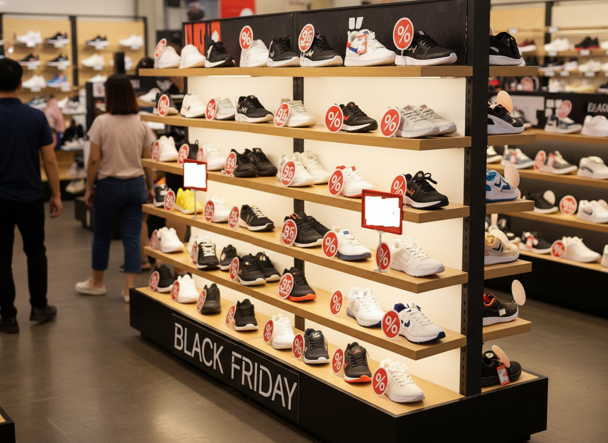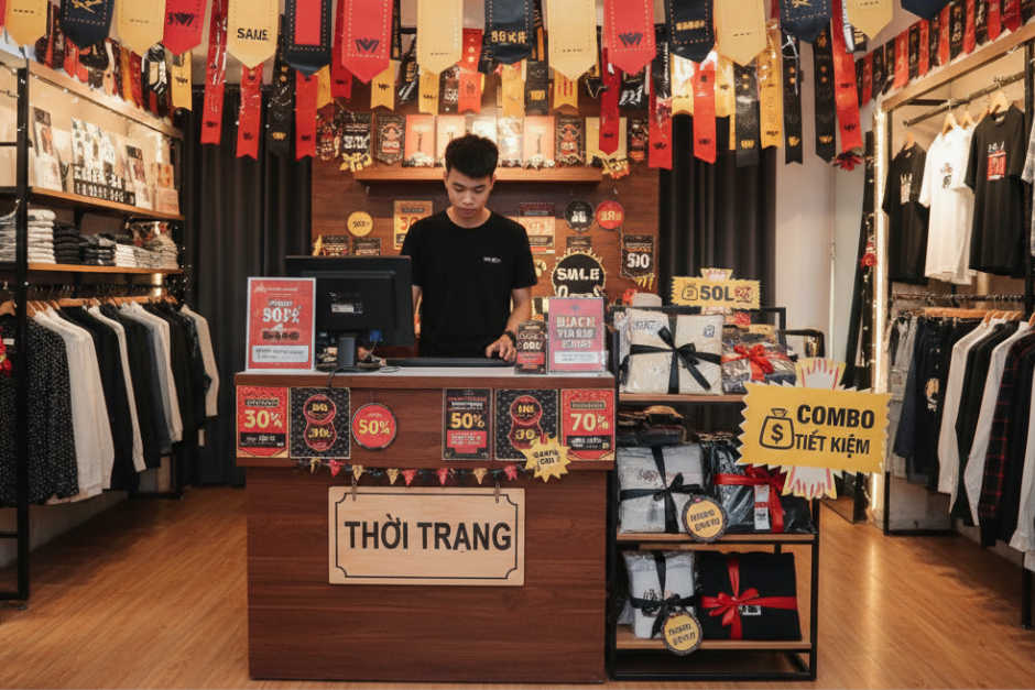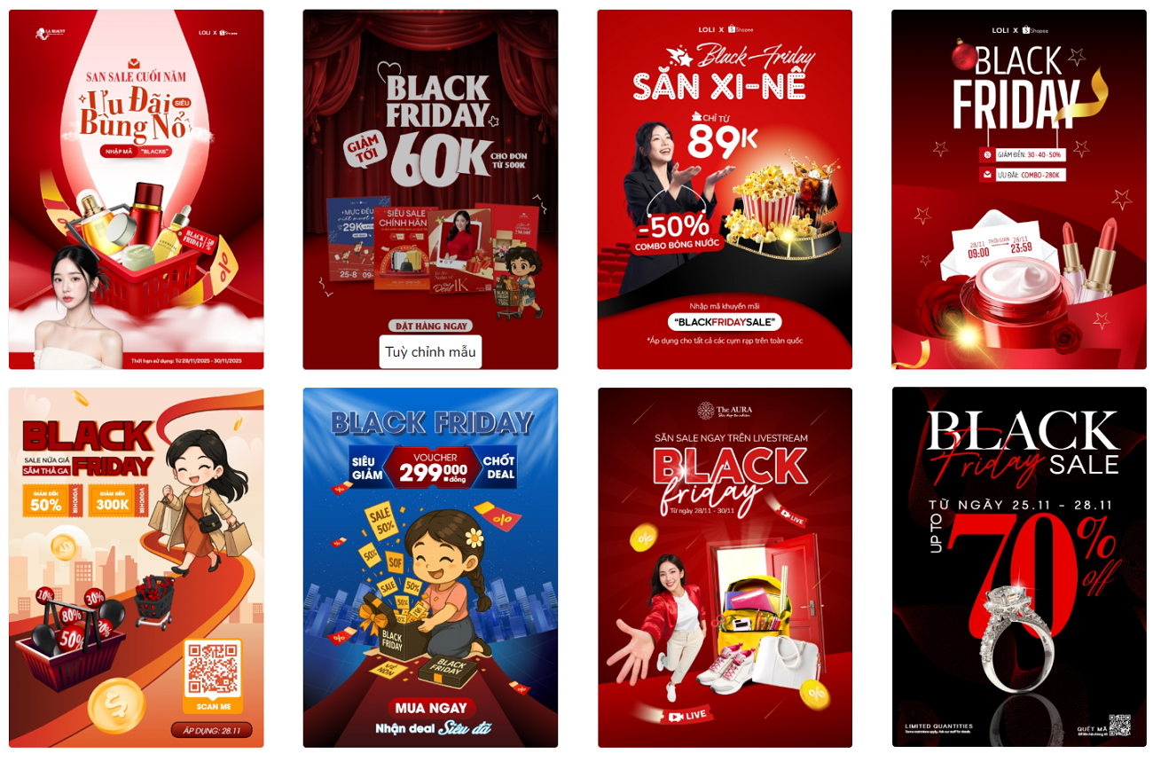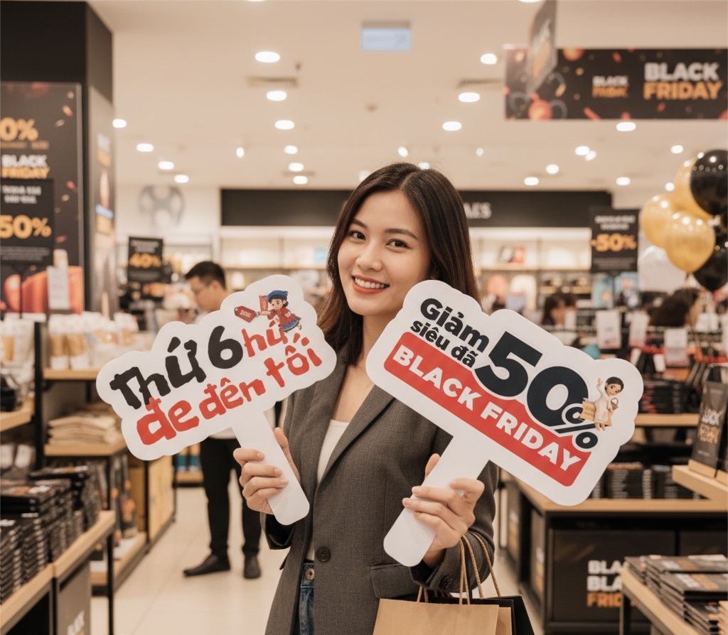 thieke thuvien 10+ ý tưởng trang trí Black Friday cho các shop, cửa hàng đặc sắc, bùng nổ và sáng tạo nhất dịp sale cuối năm By admin | 17 tháng 11 năm 2025 235 đã đọc Bạn đang tìm kiếm ý tưởng trang trí shop, cửa hàng dịp Black Friday vừa đẹp, vừa độc đáo, lại dễ thực hiện và tiết kiệm chi phí? Hãy tham khảo ngay hơn 10+ ý tưởng trang trí Black Friday phù hợp cho mọi ngành hàng từ trang trí Black Friday ngoài cửa hàng, trang trí trong cửa hàng, đến trang trí sale Black Friday kệ trưng bày sản phẩm. Những ý tưởng này không chỉ giúp trang trí shop Black Friday độc đáo, mà còn tạo trải nghiệm mua sắm ấn tượng, ghi dấu ấn thương hiệu và thu hút khách hàng dịp sale cuối năm. >> Tham khảo ngay các banner, poster khuyến mãi dịp sale Black Friday hấp dẫn 1. Trang trí ngoài cửa hàng sang trọng với banner Black Friday ấn tượng Sử dụng banner Black Friday cỡ lớn ở mặt tiền cửa hàng luôn là cách thu hút khách từ cái nhìn đầu tiên. Kết hợp thêm ruy băng nơ bản lớn hai bên khung cửa tạo điểm nhấn tinh tế và sang trọng. Bạn có thể tự thiết kế banner Black Friday chuyên nghiệp với mẫu có sẵn trên Penci, chỉnh sửa nội dung và màu sắc, sau đó in trên bạt để trang trí ngay trước cửa. Đây là một trong những cách trang trí cửa hàng Black Friday đơn giản nhưng ấn tượng giúp tăng nhận diện thương hiệu và thu hút khách từ xa. Banner Black Friday ngoài cửa hàng thu hút khách dịp sale cuối năm >> Sử dụng ngay mẫu banner Black Friday này cho cửa hàng của bạn 2. Concept “Bong Bóng” tạo không gian sôi động thu hút ánh nhìn Một cụm bong bóng đặt ngay lối vào kết hợp poster hoặc banner Black Friday phía sau sẽ tạo hiệu ứng thị giác mạnh, khiến khách hàng cảm giác như đang bước vào đại tiệc giảm giá. Không gian sôi động này là ý tưởng trang trí shop sáng tạo giúp tăng hứng thú mua sắm và thời gian khách ở lại cửa hàng. Thiết kế poster với các mẫu thiết kế Black Friday của Penci không chỉ giúp bạn tiết kiệm thời gian mà còn đảm bảo poster Black Friday luôn nổi bật, phối màu chuẩn, bố cục chuyên nghiệp và dễ thu hút khách hàng ngay từ cái nhìn đầu tiên. Không gian cửa hàng Black Friday sôi động với cụm bong bóng và poster giảm giá 3. Check-in với hashtag Black Friday Đặt bảng hashtag cầm tay chủ đề Black Friday ngay với Penci trang trí cửa hàng để khách dễ chụp ảnh, chia sẻ lên mạng xã hội kèm các mini game hấp dẫn. Đây là cách tạo không khí mua sắm Black Friday sáng tạo giúp tăng tương tác, thu hút khách và lan tỏa thương hiệu dịp sale cuối năm. Khách hàng check-in với hashtag tại cửa hàng giúp lan tỏa không khí cửa hàng >> Sáng tạo và đặt in ngay các mẫu hashtag cho cửa hàng của bạn 4. Kết hợp Black Friday và Giáng Sinh tạo không gian ấm áp và nổi bật Kết hợp trang trí dịp lễ hội Black Friday với Giáng Sinh tạo điểm nhấn khác biệt. Dán toàn bộ cửa kính bằng banner Black Friday tông đen–đỏ, treo dây thông kim tuyến và hộp quà để mang không khí ấm áp và thu hút khách. Bộ trang trí này phù hợp cho quán café, nhà sách, cửa hàng mỹ phẩm, giúp tăng lưu lượng khách ghé và tỷ lệ dừng chân ghé vào cửa hàng. Bạn có thể thiết kế banner Black Friday trên Penci nhanh chóng với đồ họa Việt độc đáo, hiệu ứng bắt mắt. Trang trí cửa kính kết hợp Black Friday và Giáng Sinh với hộp quà và dây kim tuyến 5. Trang trí toàn bộ cửa hàng tone vàng sang trọng và đồng bộ Nếu muốn tạo không gian trang trí sale cuối năm độc đáo và sang trọng, hãy phủ toàn bộ cửa hàng bằng tone vàng ánh kim kết hợp banner Black Friday, standee nhỏ trên kệ và tag giấy Black Friday trực tiếp lên sản phẩm giúp khách dễ nhận diện chương trình sale Black Friday sale Tham khảo ngay các mẫu thiết kế banner, standee chủ đề Black Friday theo tone vàng sang trọng của Penci và tải file thiết kế Black Friday chuẩn in ngay để trang trí cửa hàng Black Friday vừa đẹp, vừa tiết kiệm, vừa ấn tượng với khách dịp sale cuối năm. Không gian Black Friday với tone vàng sang trọng và đồng bộ toàn cửa hàng 6. Trang trí quầy tính tiền đơn giản gọn gàng nhưng nổi bật Quầy tính tiền là nơi khách dừng lại lâu nhất, vì vậy chỉ cần trang trí đơn giản cũng giúp trang trí cửa hàng Black Friday nổi bật. Bạn có thể đặt một standee Black Friday cạnh quầy và các poster Black Friday trên bàn để nhấn mạnh chương trình giảm giá. Thiết kế này vừa đơn giản, tiết kiệm chi phí, vừa đồng bộ với tổng thể cửa hàng, giúp quầy trở nên chuyên nghiệp. Với Penci, bạn có thể tự tạo standee, poster và backdrop Black Friday, chỉnh sửa nhanh và xuất file chuẩn in, đảm bảo trang trí cửa hàng sale cuối năm hiệu quả. Quầy tính tiền được trang trí với standee và poster Black Friday >> Tải xuống miễn phí mẫu standee này trang trí Black Friday cho cửa hàng của bạn 7. Trang trí quầy tính tiền kích cầu với combo sản phẩm banner và cờ sale Đặt combo sản phẩm khuyến mãi kèm poster, banner Black Friday và cờ treo nhỏ giúp kích thích khách mua thêm 