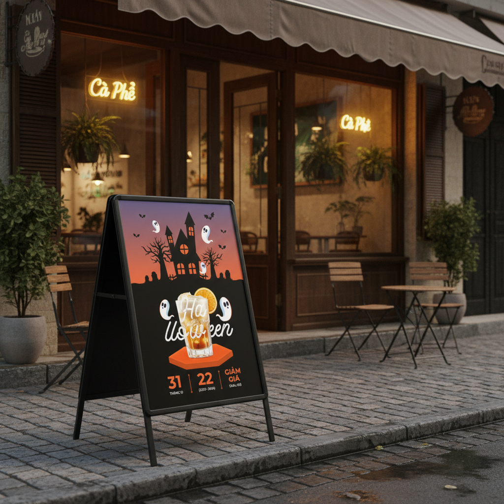thieke thuvien 10 ý tưởng trang trí Halloween đẹp, sáng tạo nhất năm 2025 dành cho quán ăn, quán cafe By admin | 22 tháng 10 năm 2025 52 đã đọc Mỗi mùa Halloween, các quán ăn, quán cafe lại có cơ hội “biến hình” thành không gian đầy ma mị, thú vị và hút khách. Từ góc check-in, bảng menu, đến những góc nhỏ treo đèn bí ngô đều có thể trở thành điểm nhấn khiến khách muốn dừng lại lâu hơn. Nếu bạn đang tìm cảm hứng để “hù nhẹ” khách bằng sự sáng tạo, dưới đây là 10 ý tưởng trang trí Halloween đẹp và ấn tượng nhất năm kèm gợi ý thiết kế nhanh gọn, miễn phí bằng Penci.vn, công cụ thiết kế thuần Việt giúp quán nào cũng có thể tự tạo ấn phẩm decor chuyên nghiệp. 1. Góc check-in “Bí ngô sống ảo” Một góc chụp ảnh đẹp là “nam châm” hút khách mạnh nhất mỗi mùa lễ hội. Hãy dựng background tông cam - đen, kết hợp vài quả bí ngô (nhựa hoặc thật), đèn vàng và bảng hiệu “Happy Halloween” in khổ lớn. Bạn có thể tự thiết kế backdrop Halloween với font chữ Việt hóa, hiệu ứng ma mị, họa tiết dơi và bí ngô trên Penci.vn, sau đó in trên chất liệu bạt hiflex hoặc canvas. Ảnh được tạo bởi Penci AI tạo ảnh từ mô tả tiếng Việt Mẹo nhỏ: Chèn logo quán ở góc dưới, để mỗi tấm ảnh check-in đều là một lần quảng cáo tự nhiên. 2. Cửa ra vào “Ngôi nhà ma” Ấn tượng đầu tiên bắt đầu từ… cánh cửa. Trang trí cửa ra vào bằng decal kính Halloween: hình tay ma, mạng nhện, hay ánh mắt phát sáng rình rập từ trong tối. Ảnh được tạo bởi Penci AI tạo ảnh từ mô tả tiếng Việt Trên Penci.vn, bạn có thể tìm sẵn mẫu thiết kế decal Halloween và chỉnh nhanh theo tên quán chỉ trong vài phút. Gắn thêm đèn LED hoặc nến điện để tạo hiệu ứng “lấp ló” vừa spooky, vừa thu hút ánh nhìn của người đi ngang qua. 3. Quầy order của “phù thủy pha chế” Quầy order là nơi khách tương tác nhiều nhất, sao bạn không biến nó thành góc Halloween đậm chất phù thủy? Phủ tấm vải đen, đặt vài lọ thủy tinh có nhãn “Potion”, “Witch Brew”, và dán menu Halloween đặc biệt với đồ uống chủ đề như Pumpkin Latte, Bloody Mojito, Black Magic Coffee… Ảnh được tạo bởi Penci AI tạo ảnh từ mô tả tiếng Việt Trên Penci.vn, quán có thể thiết kế menu Halloween chỉ bằng thao tác kéo thả, chọn sẵn mẫu ly cà phê bí ngô, thêm tên món, giá, logo là xong. 4. Trần nhà dơi bay Chỉ cần giấy đen, dây cước và một chút sáng tạo, bạn có thể biến trần quán thành bầu trời đầy dơi. Cắt hình dơi, treo xen kẽ cùng banner Halloween mini hoặc dây ruy băng in chữ “Spooky Night”. Ảnh được tạo bởi Penci AI tạo ảnh từ mô tả tiếng Việt Trên Penci có sẵn mẫu banner cầm tay và băng rôn, backdrop theo chủ đề lễ hội, chỉ cần in ra là trang trí được ngay, không tốn công thiết kế lại. 5. Bức tường ảnh “Hall of Horrors” Nếu quán có mảng tường trống, hãy tận dụng làm khu “tường ảnh ma mị”. In những poster trắng đen với hình chụp nhân viên, khách quen (đã xin phép), chỉnh thêm hiệu ứng ma, mắt đỏ, khói mờ tạo cảm giác vừa vui, vừa spooky. Ảnh được tạo bởi Penci AI tạo ảnh từ mô tả tiếng Việt Trên Penci.vn, bạn chỉ cần chọn mẫu poster Halloween, tải ảnh lên, chỉnh tone màu và in ra. Có thể tổ chức mini game “Tìm ảnh của bạn trong Hall of Horrors” để khách tương tác. 6. Góc “Bắt ma nhận quà” Tạo một góc nhỏ với thùng bí ngô, đặt bảng hiệu “Bắt ma - được quà”. Khách order xong có thể chọn ngẫu nhiên một tấm thẻ hoặc sticker Halloween. Gợi ý khách lật được tấm thẻ có “ma” thì sẽ được nhận Gift Voucher ngay tại chỗ. Ảnh được tạo bởi Penci AI tạo ảnh từ mô tả tiếng Việt Những chiếc thẻ quà tặng, phiếu giảm giá tự thiết kế sẵn trên Penci bằng bộ sưu tập Halloween Gift Card đầy màu sắc, dễ in và đẹp mắt. Vừa trang trí, vừa là chiêu marketing khéo léo để khách quay lại. 7. Cửa sổ “ánh nhìn của quỷ” Nếu quán có cửa kính, hãy tận dụng để dán decal Halloween 3D kiểu ánh mắt quỷ, bàn tay in máu, hoặc bóng ma ẩn hiện sau rèm. Penci có sẵn mẫu thiết kế decal Halloween dạng vector, in sắc nét, dễ bóc dán. Kết hợp thêm đèn cam, đèn tím, tạo cảm giác mờ ảo ban đêm, vừa rùng rợn vừa bắt mắt người đi đường. Ảnh được tạo bởi Penci AI tạo ảnh từ mô tả tiếng Việt 8. “Cây ma thuật” trong quán Chỉ cần một nhánh cây khô (hoặc cây giả), treo lên những chiếc thiệp, lời chúc, dơi giấy, và đèn nhỏ là bạn có ngay “Cây điều ước ma thuật”. Dùng mẫu thiệp mini Halloween trên Penci để khách ghi lời chúc, gắn lên cây vừa là decor, vừa tạo hoạt động tương tác. Ảnh được tạo bởi Penci AI tạo ảnh từ mô tả tiếng Việt Bạn có thể chụp lại mỗi ngày và đăng lên fanpage, đây là content user-generated tự nhiên cực hiệu quả. 9. Bảng khuyến mãi “ma thuật giá rẻ” Đừng để góc thông báo khuyến mãi của quán nhàm chán. Thay vì tờ giấy A4 đơn giản, hãy thiết kế poster khuyến mãi Hallowe