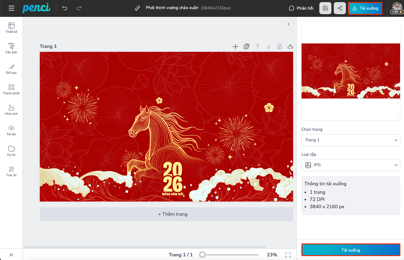 thieke thuvien 100+ hình nền Tết 2026 đẹp Full HD, 2K, 4K cho máy tính tùy chỉnh online, miễn phí tải xuống By admin | 30 tháng 12 năm 2025 13101 đã đọc Tết Nguyên Đán 2026 là thời điểm nhiều người muốn làm mới không gian làm việc và học tập, trong đó hình nền máy tính là chi tiết nhỏ nhưng tạo ảnh hưởng lớn đến cảm xúc mỗi ngày. Một hình nền Tết đẹp, tràn ngập không khí xuân không chỉ giúp chiếc máy tính trở nên sinh động hơn mà còn mang theo ý nghĩa may mắn, khởi đầu thuận lợi cho năm Bính Ngọ. Trong bài viết này, Penci tổng hợp hơn 100 mẫu hình nền Tết 2026 đẹp với độ phân giải Full HD, 2K, 4K, đa dạng chủ đề và dễ dàng tùy chỉnh online, phù hợp cho cả máy tính bàn lẫn laptop. 1. Hình nền máy tính Tết 2026 đa dạng chủ đề Không giống hình nền điện thoại thiên về cảm xúc cá nhân, hình nền máy tính thường gắn liền với không gian làm việc, học tập và sinh hoạt hàng ngày. Vì vậy, việc lựa chọn hình nền Tết cần cân bằng giữa yếu tố thẩm mỹ, ý nghĩa và sự dễ chịu khi sử dụng lâu dài. Các mẫu hình nền Tết 2026 hiện nay được thiết kế đa dạng chủ đề, phù hợp với nhiều đối tượng và nhu cầu khác nhau. Hình nền máy tính xuân Bính Ngọ 2026 Hình nền xuân Bính Ngọ 2026 thường lấy cảm hứng từ linh vật con ngựa, tượng trưng cho sự bền bỉ, mạnh mẽ và tinh thần tiến về phía trước. Hình ảnh ngựa được thể hiện theo nhiều phong cách, từ minh họa truyền thống đến hiện đại, kết hợp cùng không gian mùa xuân như cánh đồng, hoa mai, hoa đào hay ánh nắng đầu năm. Tải hình ảnh chất lượng cao tại đây Tải hình ảnh chất lượng cao tại đây Tự thiết kế và tải hình ảnh chất lượng cao tại đây Tự thiết kế và tải hình ảnh chất lượng cao tại đây Tự thiết kế và tải hình ảnh chất lượng cao tại đây >> Thư viện mẫu Hình nền máy tính xuân Bính Ngọ 2026 Các mẫu hình nền này mang không khí tươi mới, tràn đầy năng lượng, phù hợp cho những ai muốn bắt đầu năm mới với tinh thần tích cực và quyết tâm cao. Màu sắc thường hài hòa, không quá rực, giúp dễ nhìn khi làm việc trong thời gian dài. Hình nền Tết cho máy tính với câu đối, câu chúc Tết 2026 Câu đối đỏ và câu chúc đầu năm là hình ảnh quen thuộc mỗi dịp Tết Việt. Khi được đưa vào hình nền máy tính, các chi tiết này không chỉ mang tính trang trí mà còn truyền tải thông điệp chúc phúc, may mắn và an khang cho năm mới. Tải hình ảnh chất lượng cao tại đây Tải hình ảnh chất lượng cao tại đây Tải hình ảnh chất lượng cao tại đây Tải hình ảnh chất lượng cao tại đây Tải hình ảnh chất lượng cao tại đây Tải hình ảnh chất lượng cao tại đây Tải hình ảnh chất lượng cao tại đây >> Xem trọn bộ Hình nền Tết cho máy tính với câu đối, câu chúc Tết 2026 Các mẫu hình nền dạng này thường sử dụng font chữ tiếng Việt rõ ràng, bố cục cân đối, kết hợp cùng nền đỏ, vàng hoặc các họa tiết truyền thống. Nội dung câu chúc được tiết chế vừa đủ, tránh cảm giác nặng chữ, giúp hình nền vừa mang ý nghĩa tinh thần vừa giữ được sự tinh tế trong không gian số. Hình nền máy tính với hoa ngày Tết Hoa ngày Tết như hoa mai, hoa đào, hoa cúc, hoa lan từ lâu đã gắn liền với hình ảnh mùa xuân Việt Nam. Hình nền máy tính chủ đề hoa thường mang cảm giác nhẹ nhàng, thanh thoát, phù hợp với nhiều độ tuổi và môi trường sử dụng. Tải hình ảnh chất lượng cao tại đây Tải hình ảnh chất lượng cao tại đây Tải hình ảnh chất lượng cao tại đây Tải hình ảnh chất lượng cao tại đây Tải hình ảnh chất lượng cao tại đây >> Xem thêm Hình nền máy tính với hoa ngày Tết Những mẫu hình nền này chú trọng vào bố cục thoáng, màu sắc dịu, giúp tạo cảm giác thư giãn khi làm việc hoặc học tập. Đặc biệt, hình nền hoa ngày Tết phù hợp với những ai yêu thích sự tối giản, không muốn màn hình quá nhiều chi tiết nhưng vẫn giữ được không khí xuân. Hình nền Tết cho máy tính cute, dễ thương Với học sinh, sinh viên hoặc những người yêu thích phong cách trẻ trung, các mẫu hình nền Tết cute, dễ thương là lựa chọn phổ biến. Linh vật Bính Ngọ được vẽ theo phong cách chibi, kết hợp cùng các biểu tượng quen thuộc như bao lì xì, bánh chưng, bánh tét, tạo cảm giác gần gũi và vui tươi. Tải hình ảnh chất lượng cao tại đây Tải hình ảnh chất lượng cao tại đây Tải hình ảnh chất lượng cao tại đây Tải hình ảnh chất lượng cao tại đây Tải hình ảnh chất lượng cao tại đây Tự thiết kế và tải hình ảnh chất lượng cao tại đây Tải hình ảnh chất lượng cao tại đây Tải hình ảnh chất lượng cao tại đây Tải hình ảnh chất lượng cao tại đây >> Tổng hợp Hình nền Tết cho máy tính cute, dễ thương Màu sắc của nhóm hình nền này thường tươi sáng, bắt mắt nhưng vẫn được tiết chế để không gây mỏi mắt khi sử dụng lâu. Đây là lựa chọn phù hợp cho những ai muốn mang 