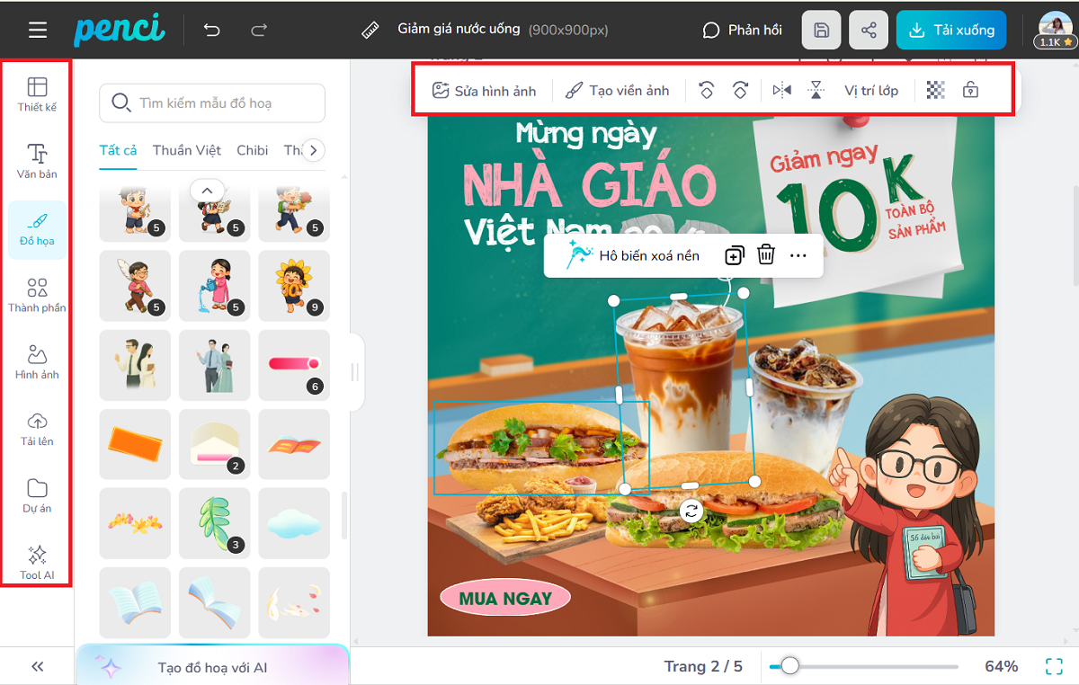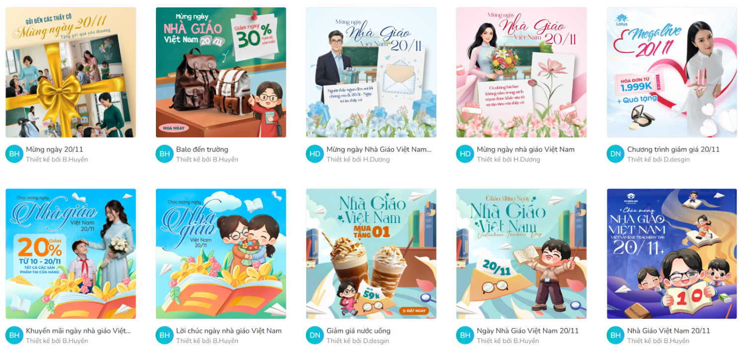 thieke thuvien 15+ Mẫu Banner Khuyến Mãi 20/11 Miễn Phí, Poster Sản Phẩm 20/11 Ấn Tượng & Chuyên Nghiệp Cho Các Shop, Cửa Hàng By admin | 12 tháng 11 năm 2025 558 đã đọc Ngày Nhà Giáo Việt Nam 20/11 là một dịp vàng để các shop, cửa hàng tri ân khách hàng và thúc đẩy doanh số bằng những chương trình khuyến mãi 20/11 hấp dẫn. Để chiến dịch thành công, một chiếc banner khuyến mãi 20/11 nổi bật là yếu tố then chốt. Penci sẽ gợi ý cho các shop, cửa hàng 15+ Mẫu Banner Khuyến Mãi 20/11 miễn phí và hướng dẫn cách áp dụng các ý tưởng khuyến mãi 20/11 đột phá nhất. Hãy cùng khám phá để tạo ra chiếc banner 20/11 đẹp nhất, đạt chuẩn thiết kế banner 20/11, social post khuyến mãi 20/11 chuyên nghiệp và bùng nổ doanh số! >> Tham khảo thêm các mẫu Poster, social post chào mừng 20/11 đẹp, chuyên nghiệp và miễn phí sử dụng ngay 1/ Ý tưởng khuyến mãi 20/11 đột phá - Chìa khóa cho chiến dịch khuyến mãi ngày nhà giáo Việt Nam thành công Trước khi đi vào các mẫu banner 20/11 chuyên nghiệp, hãy cùng Penci xây dựng nền tảng vững chắc bằng các ý tưởng khuyến mãi 20/11 thông minh. Một chương trình khuyến mãi 20/11 tốt sẽ làm cho banner khuyến mãi 20/11 của bạn có sức nặng và hiệu quả hơn. >> Tham khảo ngay các mẫu hashtag cầm tay 20/11 đẹp và ấn tượng nhất 1. Giảm Giá Đặc Biệt Cho Nhóm Đối Tượng Giáo Dục Đây là chiến lược trọng tâm trong khuyến mãi ngày nhà giáo Việt Nam. - Tri Ân Trực Tiếp: Áp dụng mức giảm giá đặc biệt (ví dụ: 20% hoặc giảm 110K) cho các thầy cô giáo, cán bộ ngành giáo dục - Ưu Đãi Tập Thể: Cung cấp mức chiết khấu cao hơn hoặc quà tặng lớn hơn khi đơn hàng mua theo nhóm để tối ưu hóa quà tặng tập thể. 2. Ưu Đãi Hấp Dẫn Khi Mua Sắm Dịp 20/11 Để thúc đẩy mọi giao dịch mua sắm quà tặng trong mùa khuyến mãi 20/11 này: - Giảm Giá Đa Dạng: Áp dụng mức giảm giá cho các mặt hàng quà tặng như quần áo, mỹ phẩm, trang sức, đồ dùng công nghệ, hay các vật dụng trang trí nhà cửa.- Miễn Phí/Giảm Phí Vận Chuyển: Đây là yếu tố quyết định để khách hàng chốt đơn. Thể hiện rõ chính sách này trên banner shop hoặc banner cửa hàng của bạn.- Tặng Kèm Quà Tặng Ý Nghĩa: Tăng giá trị cảm xúc cho món quà bằng cách tặng kèm các vật phẩm nhỏ nhưng tinh tế như bút ký, sổ tay, thiệp thủ công, hay in hình thầy cô. Poster sản phẩm 20/11 cho toàn ngành hàng 3. Combo Sản Phẩm & Mini Game Tương Tác - Gói Ưu Đãi Kết Hợp: Xây dựng các Combo sản phẩm (ví dụ: "Combo Chăm Sóc Sức Khỏe Thầy Cô", "Gói Quà Tri Thức") với mức giá tốt hơn mua lẻ.- Mini Game Ký Ức: Tổ chức mini game "Kể câu chuyện về người thầy cô đáng nhớ nhất" trên Fanpage. Người tham gia có cơ hội nhận Voucher khuyến mãi ngày nhà giáo Việt Nam hoặc quà tặng đặc biệt. Đây là một content khuyến mãi tuyệt vời để tạo tương tác. Banner khuyến mãi theo combo >> Gợi ý các quà tặng thầy cô ngày 20/11 đặc biệt, cá nhân hóa 2/ Tổng hợp các mẫu banner khuyến mãi 20/11, poster sản phẩm 20/11 miễn phí, ấn tượng và chuyên nghiệp >> Xem ngay các hình ảnh, đồ họa giúp bạn trong các thiết kế banner online cho ngày 20/11 Một mẫu banner chuyên nghiệp là cầu nối giữa chương trình khuyến mãi 20/11 của bạn và khách hàng. Dưới đây là các ý tưởng thiết kế banner 20/11 online miễn phí: Tùy chỉnh mẫu Banner chúc mừng 20/11 kết hợp sale, ưu đãi trực tiếp Tạo ngay poster sản phẩm đang khuyến mãi ngày nhà giáo Việt Nam. Thiết kế poster 20/11 đẹp, ấn tượng cho shop, cửa hàng của bạn tại đây Chỉnh sửa nhanh mẫu banner khuyến mãi 20/11 miễn phí. Tùy chỉnh banner 20/11 kết hợp ưu đãi trực tiếp cho khách hàng. Thiết kế ngay poster 20/11 đẹp và thu hút khách hàng. Thiết kế poster sản phẩm giảm giá nhân ngày Nhà giáo Việt Nam. Thiết kế ngay poster 20/11 đẹp và thu hút khách hàng. >> Tham khảo thêm ở THƯ VIỆN MẪU banner khuyến mãi 20/11, poster sản phẩm chào mừng ngày nhà giáo Việt Nam 3/ Hướng dẫn cách thiết kế banner khuyến mãi 20/11, poster sản phẩm 20/11 miễn phí, chuyên nghiệp cùng Penci Penci là nền tảng thiết kế online dành cho người Việt giúp các shop, cửa hàng tự tạo thiết kế banner khuyến mãi 20/11, poster sản phẩm 20/11 và các social post chúc mừng ngày Nhà giáo Việt Nam miễn phí chỉ trong vài phút, mà không cần kỹ năng thiết kế chuyên nghiệp. >> Gợi ý các lời chúc 20/11 hay, ngắn gọn, chân thành dành cho thầy cô Bạn có thể tự thiết kế banner 20/11 mới hoặc tùy chỉnh các mẫu có sẵn, được thiết kế riêng bởi Penci, chỉ trong 4 bước đơn giản sau: Bước 1: Truy cập Penci.vn và chọn danh mục thiết kế phù hợp Truy cập penci.vn, tại thanh tìm kiếm, chọn Poster, Banner hoặc Bài đăng Facebook để bắt đầu: - Online (Social Post, Banner Website): Chọn mục “Bài đăng Facebook” với các định dạng: vuông (900x900), story (1080x1920), ngang (940x788) hoặc dọc (603x900). - Offline (Banner/Poster/Standee): Nếu bạn cần in ấn, chọn “Poster chuẩn” hay “Banner”, “Standee” để đảm bảo chất lượng sắc n