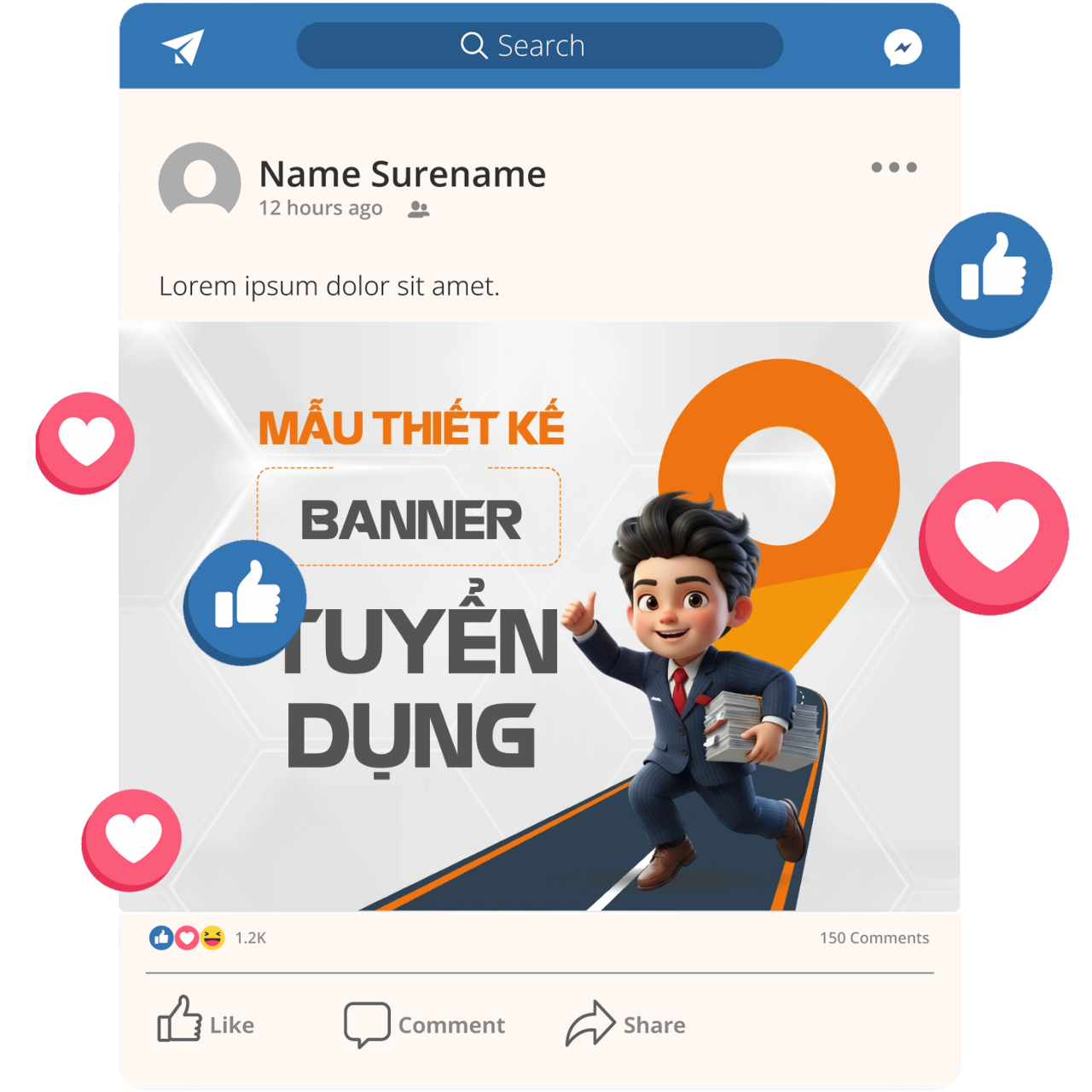 thieke thuvien 99+ mẫu banner tuyển dụng đẹp, sáng tạo và ấn tượng giúp thu hút ứng viên By admin | 04 tháng 11 năm 2025 2897 đã đọc Trong thời đại số, banner tuyển dụng online không chỉ là tấm biển thông báo “chúng tôi đang cần người” mà còn là công cụ truyền thông thương hiệu tuyển dụng mạnh mẽ. Một banner đẹp, đúng tinh thần doanh nghiệp có thể khiến ứng viên dừng lại vài giây để đọc và chính vài giây đó có thể mang đến cho bạn nhân sự phù hợp nhất. Nếu bạn đang tìm kiếm những mẫu banner tuyển dụng sáng tạo, đẹp mắt và dễ chỉnh sửa, bộ sưu tập 99+ mẫu thiết kế chuyên nghiệp trên Penci sẽ giúp bạn tiết kiệm thời gian mà vẫn tạo ấn tượng mạnh với ứng viên. 1. Banner tuyển dụng là gì? Banner tuyển dụng là một dạng ấn phẩm truyền thông dùng để thông báo nhu cầu tuyển nhân sự của doanh nghiệp, được thiết kế với bố cục, hình ảnh và thông tin ngắn gọn, dễ nhìn. Tùy theo mục đích sử dụng, banner tuyển dụng được chia thành hai loại chính: Banner tuyển dụng online: là dạng hình ảnh đăng tải trên các nền tảng số như Facebook, LinkedIn, Zalo, website, hoặc các sàn tuyển dụng trực tuyến. Loại này được thiết kế theo tỷ lệ khung hình phù hợp từng nền tảng (vuông, ngang, dọc). → Dễ lan tỏa, tiết kiệm chi phí, chỉnh sửa linh hoạt và đo lường được hiệu quả tiếp cận. Đây là loại banner phổ biến nhất hiện nay, đặc biệt với các doanh nghiệp nhỏ và startup muốn “chốt ứng viên” nhanh mà không tốn nhiều chi phí marketing. Banner tuyển dụng in ấn (treo ngoài xí nghiệp, công ty, nhà máy): thường có kích thước lớn, in bạt, treo ở cổng chính hoặc khu vực đông người qua lại. → Mục tiêu chính là thu hút lao động phổ thông hoặc người tìm việc trực tiếp tại địa phương. Khi thiết kế loại này, cần lưu ý chọn tone màu đậm, tương phản cao để chữ nổi bật, vì môi trường ngoài trời có ánh sáng mạnh dễ làm mờ màu pastel hay chữ mảnh. Dù là online hay offline, banner tuyển dụng vẫn mang chung một mục đích: truyền tải thông điệp “Doanh nghiệp này đang cần bạn” một cách nhanh chóng, rõ ràng, ấn tượng. 2. Thư viện hơn 99 mẫu banner tuyển dụng đẹp, sáng tạo và ấn tượng Khi thị trường việc làm ngày càng cạnh tranh, hình thức truyền thông tuyển dụng cũng cần “đổi gió”. Thay vì chỉ gõ “Tuyển nhân viên bán hàng” lên nền trắng đơn điệu, doanh nghiệp giờ đây có thể truyền cảm hứng và thể hiện văn hóa doanh nghiệp ngay từ banner. Penci cung cấp thư viện hơn 99 mẫu banner tuyển dụng online được đội ngũ thiết kế Việt thực hiện, với bố cục và phong cách đa dạng: Banner tuyển dụng phong cách trẻ trung, năng động cho doanh nghiệp startup Mẫu banner tuyển dụng sáng tạo dành cho ngành Marketing, Content và Thiết kế Banner tuyển dụng chuyên nghiệp, tối giản cho công ty công nghệ và tài chính Mẫu banner tuyển dụng F&B và bán lẻ thu hút nhân sự trẻ trung, thân thiện Banner tuyển dụng in ấn ngoài trời nổi bật, rõ nét và dễ nhìn từ xa Mẫu banner tuyển dụng công nhân, lao động phổ thông thu hút ứng viên nhanh chóng Banner tuyển dụng theo mùa, lễ Tết tạo chiến dịch tuyển dụng sinh động và gần gũi Mẫu banner tuyển dụng có QR code dễ ứng tuyển, tăng tỉ lệ chuyển đổi Banner tuyển dụng đa ngành phù hợp mọi loại hình doanh nghiệp vừa và nhỏ Mẫu banner tuyển dụng miễn phí trên Penci chỉnh sửa trực tuyến, tải về ngay >> Xem thêm: Thư viện mẫu thiết kế banner tuyển dụng online Các mẫu đều có thể chỉnh sửa trực tiếp ngay trong Penci: đổi logo, nội dung, màu thương hiệu, ảnh nhân viên thật hoặc hình minh họa AI chỉ trong vài phút. Tất cả miễn phí tải về, giúp bạn chủ động trong mọi chiến dịch tuyển dụng. 3. Trên banner tuyển dụng cần có thông tin gì? Một banner tuyển dụng đẹp nhưng thiếu nội dung rõ ràng sẽ khiến ứng viên “lướt qua không thương tiếc”. Dưới đây là những thành phần cần có trên một banner tuyển dụng hiệu quả, và gợi ý cách sắp xếp trực quan nhất. 3.1 Tiêu đề chính (Headline) Đây là phần đập vào mắt đầu tiên. Tiêu đề nên ngắn gọn, rõ vị trí cần tuyển và tạo cảm xúc hành động. 3.2 Logo và tên doanh nghiệp Đây là yếu tố thể hiện uy tín và thương hiệu. Đặt logo ở góc trên hoặc dưới banner, kích thước vừa đủ để dễ nhận diện mà không lấn át nội dung. 3.3 Vị trí và mô tả công việc Dù ngắn, nhưng nên nêu rõ: Tên vị trí cần tuyển, số lượng, khu vực làm việc hoặc hình thức (online/offline) 3.4 Quyền lợi nổi bật (Highlight Benefits) Thay vì liệt kê dài dòng, bạn có thể chọn 3-4 gạch đầu dòng ngắn gọn, như: Thu nhập cạnh tranh, Môi trường trẻ trung, Thưởng hiệu suất cao, Nghỉ phép linh hoạt 3.5 Cách ứng tuyển (CTA rõ ràng) CTA (Call To Action) là “đường về” cho ứng viên. Có thể thể hiện bằng: “Ứng tuyển ngay tại đây!” (nút bấm với link website hoặc QR code) “Gửi CV qua Zalo/Email/Inbox Fanpage” “Liên hệ