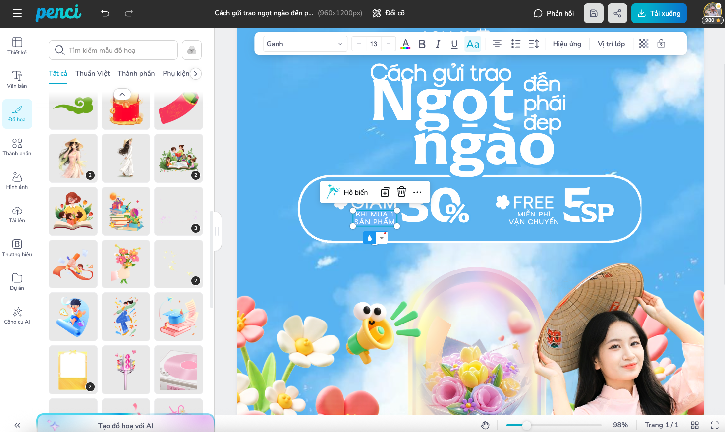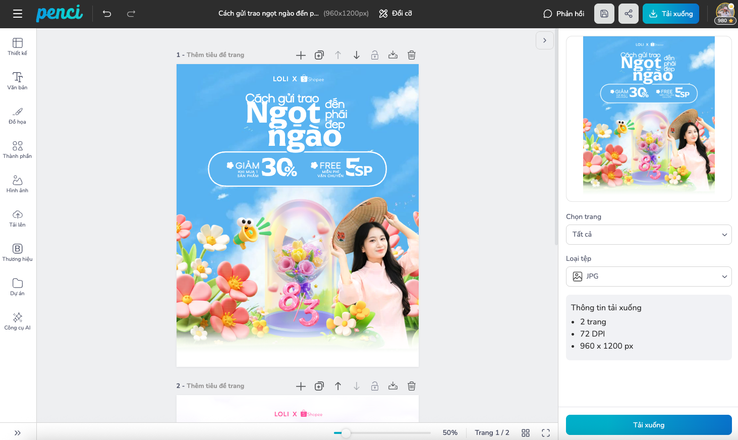 thieke thuvien 99+ mẫu poster, social post mừng ngày Quốc tế Phụ Nữ 8/3 sáng tạo, đẹp và dễ dàng chỉnh sửa online By admin | 25 tháng 02 năm 2026 6404 đã đọc Ngày Quốc tế Phụ Nữ 8/3 là dịp quan trọng để tôn vinh những đóng góp của phụ nữ trong gia đình, doanh nghiệp và xã hội. Bên cạnh những món quà và lời chúc, poster và bài đăng mạng xã hội mừng 8/3 đang trở thành công cụ truyền thông quen thuộc, giúp doanh nghiệp và tổ chức lan tỏa thông điệp ý nghĩa một cách chuyên nghiệp. Nếu bạn đang tìm kiếm các mẫu poster 8/3 đẹp, dễ chỉnh sửa online và có thể tải về miễn phí, bài viết này sẽ giúp bạn tiết kiệm thời gian mà vẫn đảm bảo hiệu quả truyền thông. 1. Công dụng của poster 8/3 đối với doanh nghiệp, cửa hàng và câu lạc bộ Nhiều người nghĩ poster 8/3 chỉ đơn giản là hưởng ứng ngày lễ kỷ niệm. Nhưng thực tế, nếu truyền thông có kế hoạch thì đây là một điểm chạm thương hiệu cực kỳ đáng giá. Đối với doanh nghiệp 8/3 là cơ hội để doanh nghiệp thể hiện văn hóa nội bộ và sự trân trọng dành cho nhân sự nữ. Một poster 8/3 được thiết kế chỉn chu có thể: - Gửi lời tri ân đến nhân viên nữ trong công ty - Thông báo chương trình nội bộ như tặng quà, workshop, tiệc chúc mừng - Tăng tinh thần gắn kết giữa các phòng ban - Thể hiện hình ảnh doanh nghiệp quan tâm đến con người Trong bối cảnh mạng xã hội phát triển, chỉ một bài đăng chúc mừng 8/3 kèm thiết kế chỉn chu cũng có thể giúp thương hiệu ghi điểm về sự tinh tế và nhân văn. Đối với cửa hàng, thương hiệu kinh doanh Với shop online, cửa hàng bán lẻ, spa, salon hay quán cà phê, poster 8/3 gần như là “vũ khí bán hàng” theo mùa. Cụ thể, bạn có thể dùng poster để: - Thông báo chương trình khuyến mãi 8/3 - Giới thiệu combo quà tặng dành cho phái đẹp - Tăng tương tác trên fanpage, Instagram - Tạo cảm giác cửa hàng luôn cập nhật sự kiện Khách hàng thường có xu hướng mua sắm nhiều hơn trong các dịp lễ. Nếu bạn không truyền thông, bạn đang tự rút mình khỏi cuộc chơi. Đối với câu lạc bộ, tổ chức, trường học Poster 8/3 giúp: - Thông báo sự kiện chúc mừng - Kêu gọi tham gia minigame, cuộc thi - Tôn vinh thành viên nữ tiêu biểu - Tạo sự gắn kết trong cộng đồng Một thiết kế rõ ràng, dễ đọc và có thông tin đầy đủ sẽ giúp người xem nắm bắt nội dung nhanh chóng, tránh tình trạng “biết có sự kiện nhưng không biết khi nào, ở đâu”. Nói tóm lại, poster 8/3 không chỉ là hình ảnh trang trí, mà là công cụ truyền tải thông điệp, xây dựng hình ảnh và thúc đẩy hành động. 2. Một số mẫu poster, social post mừng ngày Quốc tế Phụ Nữ 8/3 sáng tạo, đẹp Dưới đây là một số ý tưởng mẫu thiết kế phổ biến và dễ ứng dụng cho nhiều mục đích khác nhau. Bạn có thể dùng cho fanpage, story, in treo tại cửa hàng hoặc gửi nội bộ: Poster 8/3 tri ân phụ nữ trong doanh nghiệp, có logo và lời chúc ngắn gọn. Social post 8/3 thông báo chương trình ưu đãi kèm thời gian áp dụng. Mẫu poster 8/3 cho spa, salon giới thiệu gói dịch vụ dành cho khách hàng nữ. Poster 8/3 cho trường học, câu lạc bộ thông báo sự kiện và lời chúc trang trọng. Social post 8/3 kêu gọi chia sẻ lời chúc đến người phụ nữ quan trọng. Poster 8/3 ghi nhận đóng góp của nhân sự nữ trong công ty. Mẫu social post mini game 8/3 kêu gọi bình luận, chia sẻ nhận quà. Poster chúc mừng 8/3 đơn giản, phù hợp đăng fanpage hoặc gửi email nội bộ. Những mẫu này có thể linh hoạt chỉnh sửa nội dung, thay logo, thay thông tin chương trình hoặc thêm hình ảnh thực tế của doanh nghiệp để tăng độ tin cậy. >> Tìm kiếm và xem trọn bộ thiết kế chủ đề 8/3 chào mừng ngày Quốc tế Phụ Nữ tại đây Khi lựa chọn mẫu thiết kế cho chiến dịch 8/3, điều quan trọng nhất không phải là “mẫu nào nhìn bắt mắt nhất” mà là mẫu đó phục vụ mục tiêu gì. Bạn đang muốn tăng nhận diện thương hiệu, để khách hàng nhớ đến tên và hình ảnh doanh nghiệp nhiều hơn? Hay mục tiêu chính là thúc đẩy doanh số thông qua chương trình ưu đãi, combo quà tặng, minigame? Hoặc đơn giản hơn, bạn chỉ muốn gửi lời tri ân chân thành đến nhân sự nữ, khách hàng nữ và đối tác? Mỗi mục tiêu sẽ phù hợp với một cách thể hiện khác nhau. Vì vậy, đừng chọn theo cảm tính. Hãy chọn theo mục tiêu truyền thông để thiết kế thực sự tạo ra giá trị. 3. Dễ dàng chỉnh sửa mẫu online ngay trên penci.vn Thay vì phải thuê designer hoặc loay hoay với phần mềm phức tạp, bạn hoàn toàn có thể chỉnh sửa poster 8/3 trực tuyến nhanh chóng. Chỉ với vài bước đơn giản: Bước 1: Chọn mẫu thiết kế từ thư viện Truy cập penci.vn và tìm kiếm từ khóa “Poster” hoặc “Post MXH”. Hệ thống sẽ hiển thị hàng chục mẫu thiết kế đa dạng, phù hợp cho cả đăng mạng xã hội lẫn in ấn. Bạn có thể xem trước bố cục, nội dung và chọn mẫu phù hợp với nhu cầu của mình. Chọn mẫu thiết kế phù hợp Bước 2: Thay đổi thô