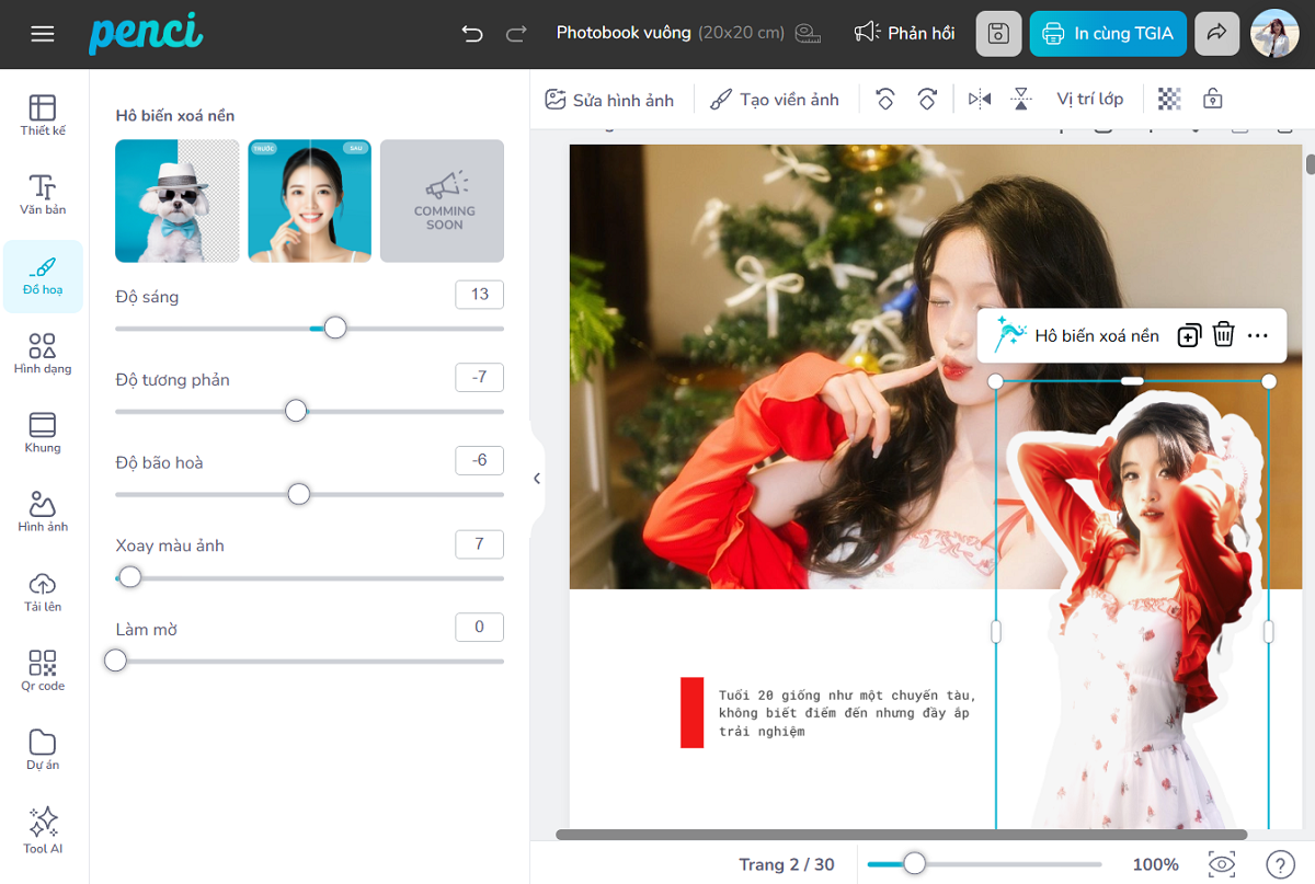 thieke thuvien Gợi ý combo quà tặng 20/10 ý nghĩa cho mẹ, vợ, bạn gái: Tự thiết kế cá nhân hóa & đặt in theo yêu cầu By admin | 15 tháng 10 năm 2025 111 đã đọc Ngày 20/10 là dịp gửi lời yêu thương đến những người phụ nữ quan trọng – mẹ, vợ, bạn gái hay đồng nghiệp. Nhưng thay vì chọn quà có sẵn, xu hướng hiện nay là tự thiết kế combo quà tặng 20/10 mang dấu ấn cá nhân hóa, chứa hình ảnh, lời chúc và kỷ niệm riêng. Chỉ với vài thao tác tại penci.vn, bạn có thể tự tay thiết kế và đặt in combo quà tặng 20/10 theo yêu cầu nhanh chóng, độc đáo và đầy ý nghĩa. Dưới đây là những combo quà tặng 20/10 ý nghĩa được gợi ý dành riêng cho từng người phụ nữ bạn yêu thương. >> Tham khảo thêm các xu hướng quà tặng cá nhân hóa hiện nay 1/ Tổng hợp combo quà tặng 20/10 ý nghĩa phù hợp cho từng người phụ nữ bạn yêu thương 1. Combo quà tặng 20/10 cho Mẹ – Gửi trọn ký ức yêu thương Combo 1 - “Ký ức yêu thương” Combo quà tặng 20/10 này gồm các sản phẩm Photobook kỷ niệm + Thiệp 20/10 cá nhân hóa + Bó hoa ảnh Polaroid cảm xúc Gợi nhớ hành trình yêu thương của mẹ qua từng trang ảnh. Đây là một món quà tặng mẹ 20/10 nhẹ nhàng nhưng đầy cảm xúc, giúp mẹ lưu giữ khoảnh khắc gia đình một cách tinh tế. >> Bắt đầu thiết kế Photobook kỷ niệm tặng mẹ >> Thiết kế Thiệp 20/10 cá nhân hóa bằng ảnh và lời chúc riêng >> In ảnh Polaroid kỷ niệm làm bó hoa ảnh độc đáo dành cho mẹ Photobook gia đình là 1 trong những món quà ý nghĩa tặng mẹ dịp 20/10 Combo 2 – “Lưu giữ khoảnh khắc” Combo quà tặng ý nghĩa 20/10 gồm: Lịch để bàn in ảnh gia đình + Thiệp 20/10 cá nhân hóa + Áo thun in hình gia đình. Một món quà tặng mẹ 20/10 vừa thiết thực, vừa ấm áp, giúp không gian sống thêm gần gũi. Đây là combo quà tặng 20/10 theo yêu cầu vừa thiết thực, vừa ấm áp. >> Bắt đầu tự thiết kế lịch in ảnh gia đình >> In thiệp 20/10 cá nhân hóa kèm lời chúc yêu thương >> Tự thiết kế áo thun in hình gia đình Áo thun in ảnh gia đình chính là món quà 20/10 thiết thực cho mẹ >> Tham khảo thêm ý tưởng quà tặng mẹ ý nghĩa và cảm xúc nhất 2. Combo quà tặng 20/10 cho Vợ – Hâm nóng tình yêu mỗi ngày Combo 1 – “Tình yêu mỗi ngày” Set quà tặng vợ gồm: Áo đôi + Lịch in ảnh + Thiệp 20/10 cá nhân hóa. Combo quà tặng 20/10 cho vợ đầy ngọt ngào giúp hai người cùng nhau ghi nhớ những ngày hạnh phúc phù hợp với các cặp vợ chồng trẻ yêu thích sự sáng tạo. >> Thiết kế áo đôi cá nhân hóa cho hai vợ chồng >> Tạo lịch in ảnh kỷ niệm ngày cưới đơn giản >> Sáng tạo thiệp 20/10 với lời chúc và hình ảnh cá nhân hóa Lịch in ảnh kỷ niệm 1 trong những combo quà tặng 20/10 ý nghĩa cho vợ Combo 2 – “Yêu thương gửi gắm” Bộ quà tặng vợ yêu thương gồm: Photobook kỷ niệm + Túi canvas in hình + Thiệp 20/10 cá nhân hóa. Đây là một combo quà tặng ý nghĩa cho vợ vừa tinh tế, sang trọng và chan chứa cảm xúc. >> Bắt đầu thiết kế Photobook kỷ niệm tặng vợ >> Tạo túi canvas in hình vợ >> In thiệp 20/10 cá nhân hóa dành riêng cho vợ Photobook kỷ niệm là món quà gói trọn hành trình yêu thương >> Tham khảo thêm các ý tưởng quà tặng vợ xúc động nhất 3. Combo quà tặng 20/10 cho Bạn gái – Ghi dấu yêu thương riêng biệt Combo 1 – “Ghi dấu yêu thương” Set quà tặng bạn gái ý nghĩa gồm: Scrapbook handmade + Sổ tay in hình + Thiệp 20/10 cá nhân hóa. Một combo quà tặng bạn gái 20/10 ngọt ngào, dễ thương và dễ “ghi điểm”. Từng trang scrapbook, từng tấm hình đều kể lại câu chuyện tình yêu của hai bạn. >> Tự thiết kế scrapbook kỷ niệm online đầy cảm xúc >> In sổ tay in hình cặp đôi đầy ngọt ngào >> Tạo thiệp 20/10 cá nhân hóa Thiệp 20/10 in hình và cá nhân hóa lời chúc riêng Combo 2 – “Em là duy nhất” Bộ quà tặng bạn gái ngọt ngào gồm: Áo thun đôi + Hoa ảnh Polaroid + Thiệp 20/10 cá nhân hóa. Đây chắc chắn là một món quà cá nhân hóa tặng bạn gái 20/10 đầy ngọt ngào giúp bạn thể hiện tình yêu theo cách riêng. >> Thiết kế áo thun đôi theo yêu cầu >> In ảnh Polaroid kỷ niệm làm bó hoa ảnh tặng bạn gái >> Tạo thiệp 20/10 dễ thương với hình hai bạn và những câu chúc ngọt ngào Áo thun đôi custom quà tặng 20/10 lãng mạn dành cho bạn gái >> Tham khảo thêm ý tưởng quà tặng bạn gái đầy lãng mạn 4. Combo quà tặng 20/10 cho bạn bè & đồng nghiệp Combo 1 – “Năng lượng tích cực mỗi ngày” Set quà tặng bạn nữ gồm: Lịch in ảnh nhóm + Thiệp nhóm 20/10 + Túi canvas cùng tone. Combo quà tặng 20/10 cho nữ đồng nghiệp cực phù hợp để tặng trong công ty hoặc nhóm bạn thân, thể hiện sự quan tâm và tinh thần gắn kết. >> Thiết kế lịch để bàn in ảnh nhóm >> Thiết kế thiệp nhóm 20/10 theo phong cách riêng >> Thiết kế và đặt in túi canvas đồng bộ Túi canvas đồng bộ món quà tặng nhóm bạn thân 20/10 2/ Hướng dẫn tự thiết kế combo quà tặng 20/10 cá nhân hóa đơn giản tại chỉ với Penci Với Penci, tự làm quà tặng 20/10 chưa bao giờ dễ đến thế. Chỉ