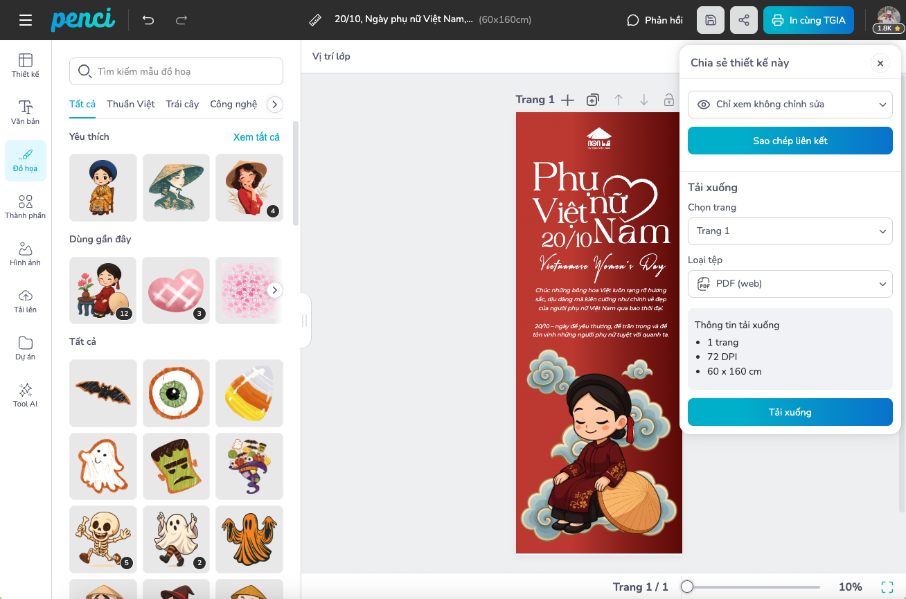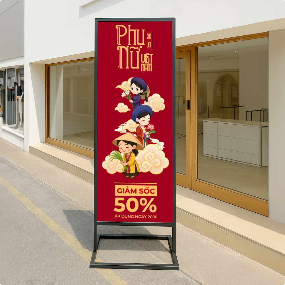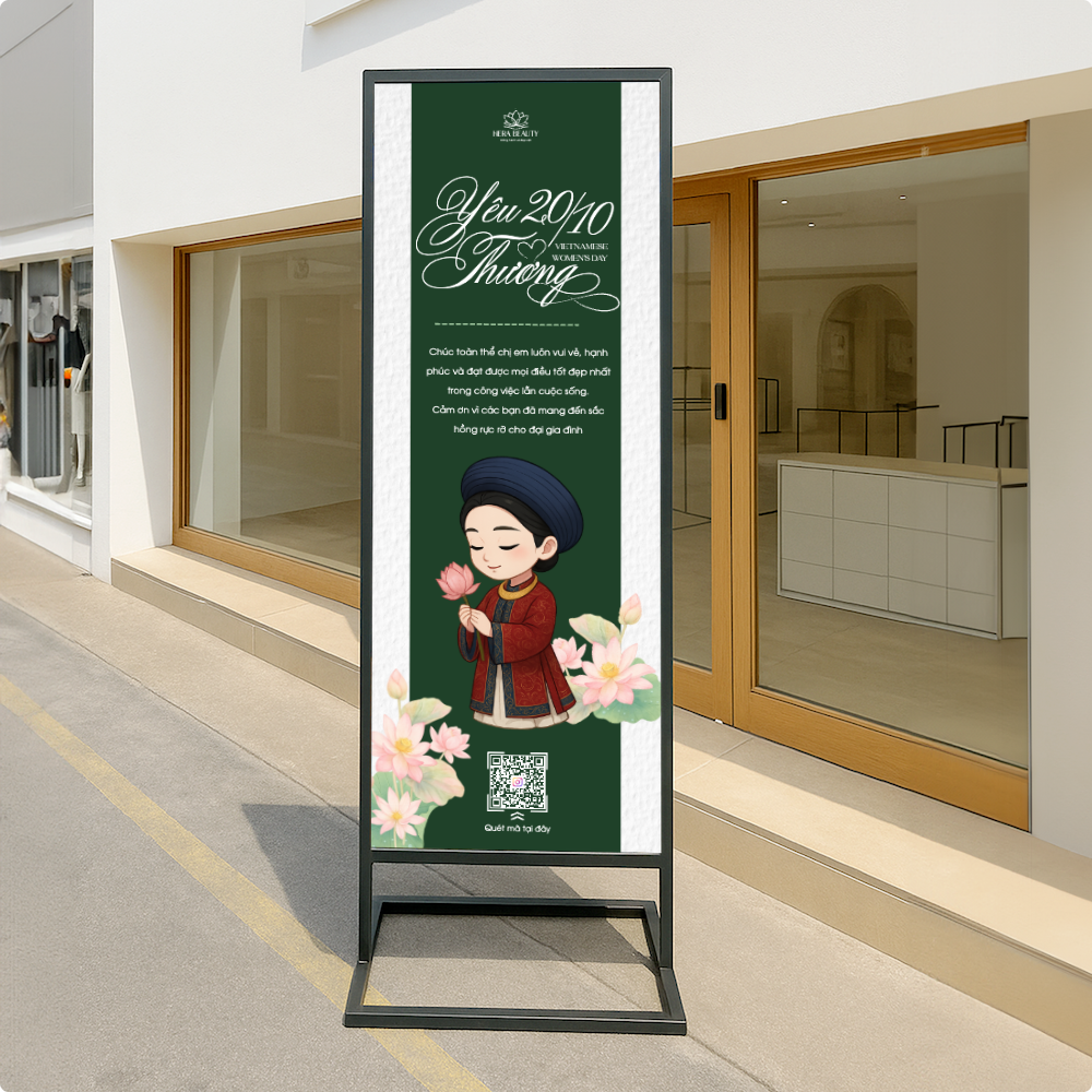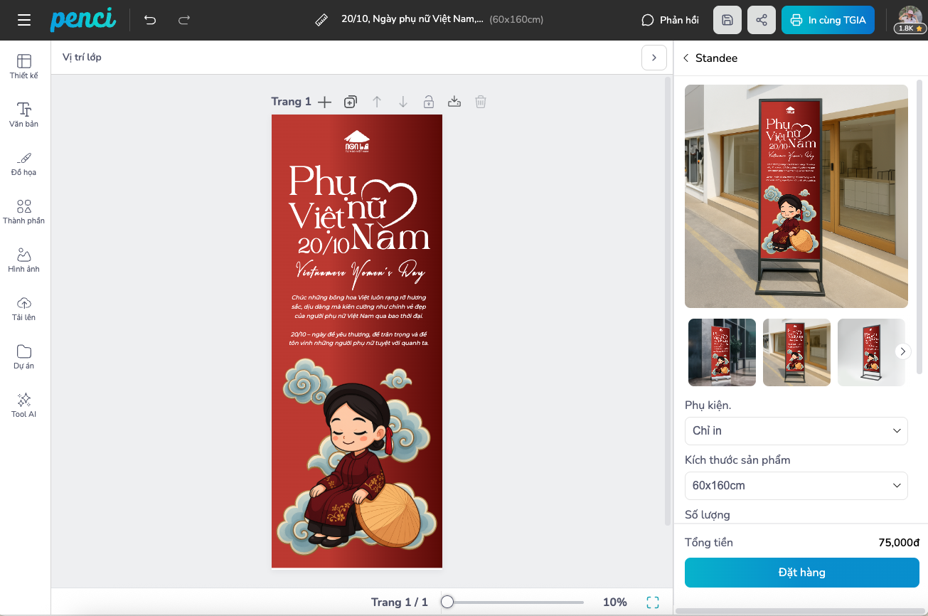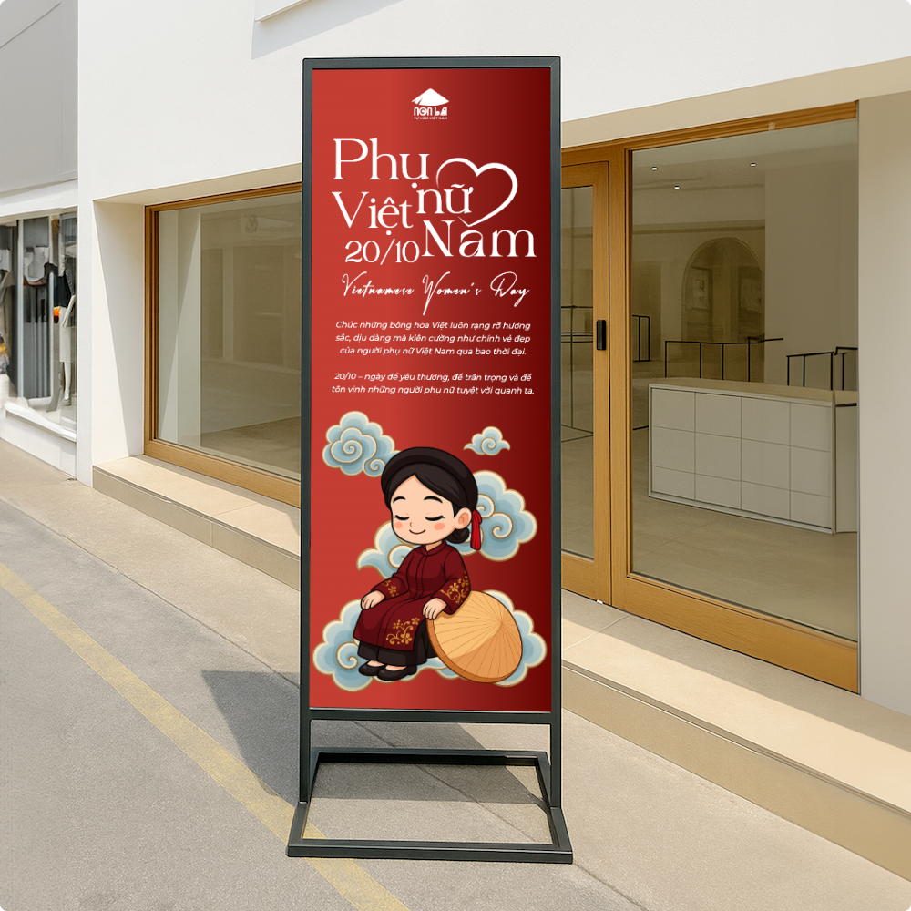 thieke thuvien Gợi ý mẫu Standee, cờ phướn ngày Phụ nữ 20/10 đẹp, miễn phí dành cho nhà bán hàng By admin | 15 tháng 10 năm 2025 171 đã đọc Ngày Phụ nữ Việt Nam 20/10 là thời điểm vàng để các nhà bán hàng, cửa tiệm hay doanh nghiệp nhỏ tạo chiến dịch tri ân và thu hút khách hàng nữ. Và trong số những công cụ truyền thông hiệu quả nhất, standee 20/10 và cờ phướn ngày phụ nữ luôn chiếm vị trí hàng đầu. Dù là cửa hàng thời trang, tiệm café, spa, nhà hàng hay showroom sản phẩm, một thiết kế standee hoặc cờ phướn đẹp sẽ biến không gian trở nên sinh động, tạo ấn tượng và truyền tải thông điệp tri ân đến khách hàng. Trên nền tảng Penci.vn - công cụ thiết kế online miễn phí của người Việt, bạn có thể tự tay tạo ra thiết kế standee, cờ phướn 20/10 miễn phí chỉ trong vài phút. Không cần kỹ năng thiết kế, không phải tải phần mềm, chỉ cần chọn mẫu, tùy chỉnh nội dung, thêm logo hoặc hình ảnh và đặt in trực tiếp. Sử dụng mẫu này 1. Vì sao nhà bán hàng cần chuẩn bị standee, cờ phướn cho ngày Phụ nữ Việt Nam 20/10 Nếu như những ngày lễ khác thường tập trung vào quảng bá khuyến mãi hoặc ra mắt sản phẩm mới, thì ngày 20/10 lại là cơ hội đặc biệt để thương hiệu thể hiện sự trân trọng với khách hàng nữ, đây là nhóm chiếm tỷ lệ lớn trong mọi lĩnh vực tiêu dùng. Một standee hoặc cờ phướn được thiết kế đẹp mắt, thông điệp rõ ràng không chỉ là công cụ trang trí, mà còn là “người đại diện thầm lặng” cho thương hiệu. Nó giúp: Tạo không khí lễ hội, thu hút sự chú ý: Không gian trưng bày có standee, cờ phướn sẽ nổi bật hơn hẳn, dễ khiến khách hàng dừng chân và ghé xem. Tăng độ nhận diện thương hiệu: Logo, slogan, màu sắc đặc trưng của cửa hàng được lặp lại trên ấn phẩm giúp khách hàng ghi nhớ lâu hơn. Truyền tải thông điệp tri ân: Một câu chúc đơn giản nhưng được trình bày tinh tế có thể khiến khách hàng cảm nhận được sự chân thành từ thương hiệu. Kết hợp quảng bá khuyến mãi: Thêm thông tin về ưu đãi hoặc mini game 20/10 ngay trên standee, cờ phướn giúp chiến dịch bán hàng trở nên hiệu quả hơn. Vì vậy, đầu tư cho ấn phẩm truyền thông như standee và cờ phướn 20/10 không chỉ là “làm cho đẹp”, mà là chiến lược giúp bạn chạm đến cảm xúc khách hàng và tăng doanh thu dịp lễ. 2. Mẫu thiết kế Standee 20/10 đẹp giúp thu hút khách hàng Một thiết kế standee 20/10 đẹp không chỉ cần bắt mắt, mà còn phải hài hòa giữa thông điệp, bố cục và màu sắc thương hiệu. Bộ sưu tập mẫu standee trên Penci.vn được đội ngũ họa sĩ Việt sáng tạo theo xu hướng hiện đại: sử dụng gam hồng phấn, pastel, be nhẹ hoặc đỏ đô sang trọng,... những tông màu đại diện cho sự dịu dàng nhưng đầy sức mạnh của người phụ nữ Việt. Các mẫu standee 20/10 được chia thành nhiều phong cách: sang trọng cho spa, mỹ phẩm; tươi trẻ cho cửa hàng quà tặng; chuyên nghiệp cho doanh nghiệp hoặc showroom. Tất cả đều có thể tùy chỉnh nội dung, thêm logo, hình ảnh hoặc QR code liên kết đến fanpage hay website của bạn. Dưới đây là một số mẫu nổi bật trên Penci, tất cả đều có thể sử dụng và tùy chỉnh miễn phí: Sử dụng mẫu này Sử dụng mẫu này Sử dụng mẫu này Sử dụng mẫu này Sử dụng mẫu này Sử dụng mẫu này Xem thêm: Thư viện Mẫu thiết kế Standee 20/10 đẹp, miễn phí 3. Mẫu thiết kế cờ phướn 20/10 ấn tượng, độc đáo Cờ phướn (loại cờ hình chữ nhật, thường được treo dọc trên các cột, cây, hoặc tường) là lựa chọn hoàn hảo để tăng độ phủ thương hiệu và lan tỏa không khí 20/10 tại khu vực cửa hàng, trung tâm thương mại hay mặt tiền đường. Một mẫu cờ phướn ấn tượng có thể khiến người đi đường dừng lại vài giây đủ để đọc thông điệp hoặc ghi nhớ hình ảnh thương hiệu. Penci cung cấp nhiều mẫu Cờ phướn 20/10 với kích thước chuẩn in 0.6x2.2m và có sẵn layout thiết kế theo hướng dọc với hình dáng cánh buồm, chữ nhật hoặc giọt nước. Bạn có thể chọn mẫu phù hợp với phong cách thương hiệu, thay đổi hình ảnh nhân vật, câu chúc, hoặc chèn chương trình khuyến mãi trực tiếp. Penci gợi ý bạn tùy chỉnh một số mẫu dưới đây: Sử dụng mẫu này Sử dụng mẫu này Sử dụng mẫu này Sử dụng mẫu này Sử dụng mẫu này Xem thêm: Thư viện mẫu thiết kế cờ phướn 20/10 ấn tượng, độc đáo 4. Thiết kế Standee, Cờ phướn trực tuyến trên Penci miễn phí và dễ dàng Không cần phải thuê thiết kế ngoài hay chờ đợi file in, Penci.vn cho phép bạn tự thiết kế standee, cờ phướn online chỉ trong vài phút và hoàn toàn miễn phí. Giao diện kéo thả trực quan giúp bất kỳ ai cũng có thể sử dụng, dù không biết Photoshop hay Illustrator. Khi truy cập Penci.vn, bạn chỉ cần: Chọn danh mục “Standee” hoặc “Cờ phướn” trong thư viện ấn phẩm. Lựa chọn mẫu yêu thích từ hàng trăm thiết kế sẵn. Tùy chỉnh nội dung và màu sắc theo thư