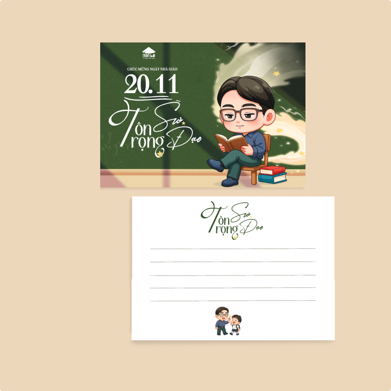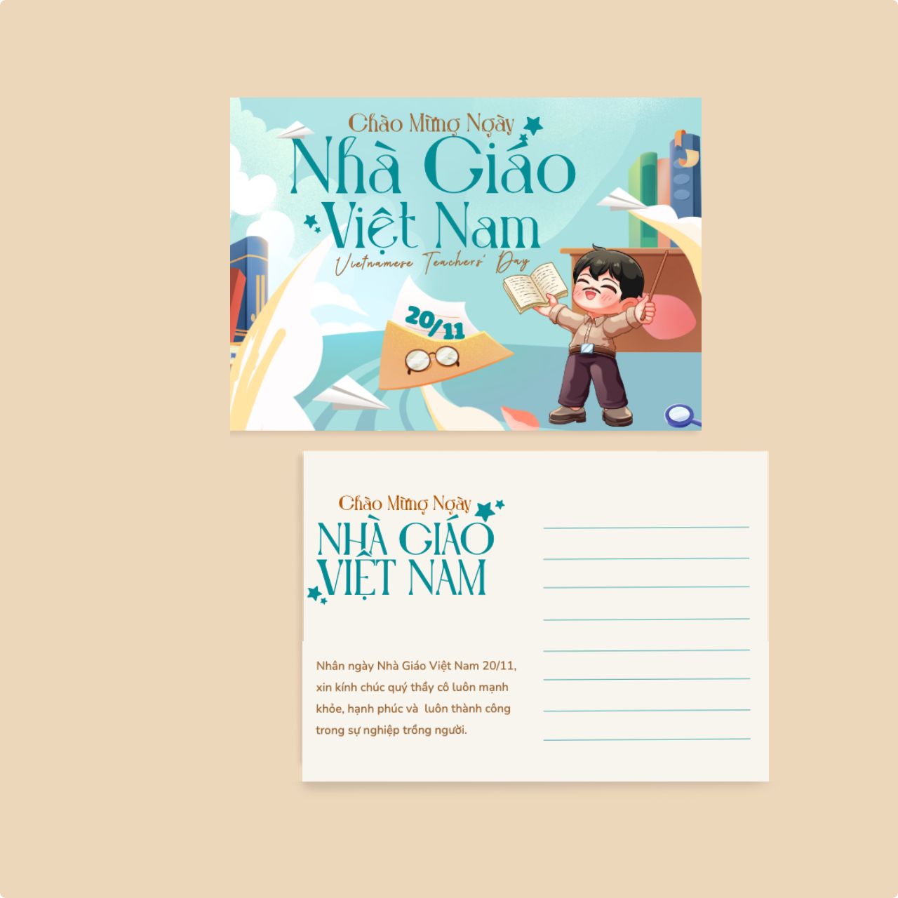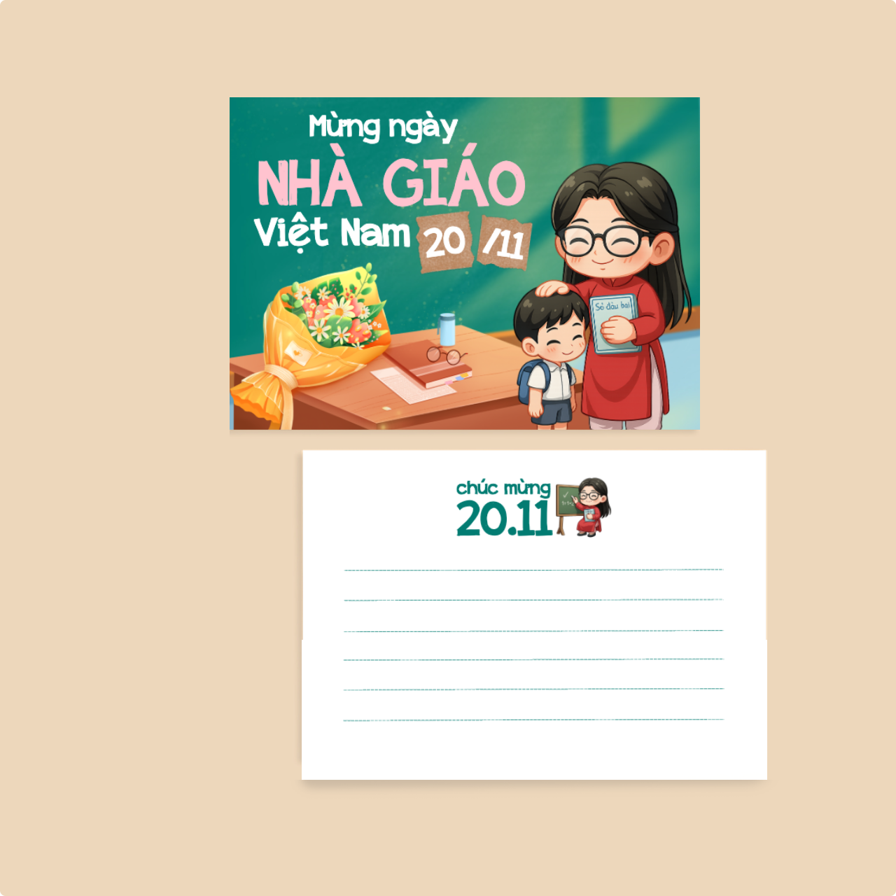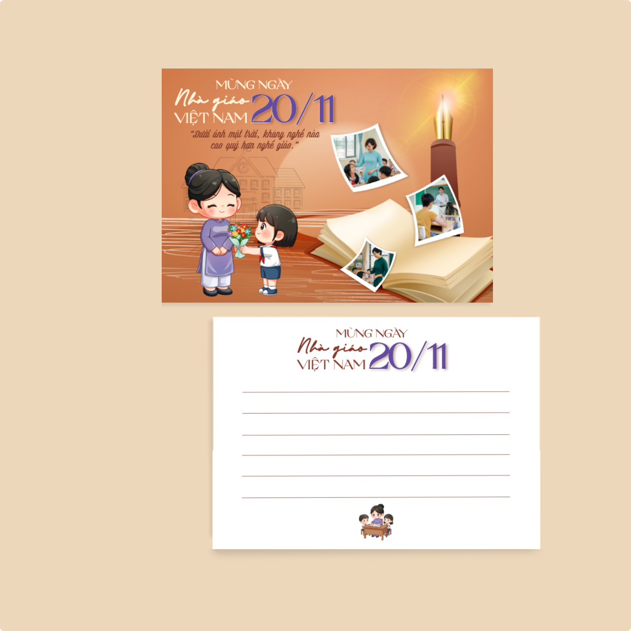 thieke thuvien Gợi ý những mẫu Thiệp chúc mừng 20/11 sáng tạo, ấn tượng và cách tạo thiệp online gửi tặng thầy cô ngày Nhà giáo Việt Nam By admin | 12 tháng 11 năm 2025 1509 đã đọc Ngày Nhà giáo Việt Nam 20/11 là dịp đặc biệt để tri ân những người thầy, người cô đã âm thầm gieo mầm tri thức. Bên cạnh những bó hoa tươi hay món quà nhỏ, một tấm thiệp chúc mừng 20/11 được thiết kế riêng sẽ mang đến cảm xúc sâu sắc hơn cả, bởi đó là lời cảm ơn được gửi gắm bằng chính sự sáng tạo và tình cảm chân thành. Cùng Penci khám phá những mẫu thiệp chúc mừng 20/1 độc đáo, đậm chất Việt và cách tự tay thiết kế thiệp online tặng thầy cô chỉ trong vài phút. 1. Vì sao 20/11 lại cần thiệp chúc mừng để tri ân thầy cô Ngày Nhà giáo Việt Nam 20/11 không chỉ là ngày tôn vinh nghề dạy học, mà còn là dịp để mỗi người chúng ta bày tỏ lòng biết ơn sâu sắc tới những “người lái đò” đã tận tâm dìu dắt qua từng bài học, từng năm tháng trưởng thành. Giữa muôn vàn món quà, một tấm thiệp chúc mừng 20/11 lại mang giá trị rất riêng. Nó không đơn thuần là một tờ giấy hay hình ảnh trang trí, mà là lời nói chưa kịp thổ lộ, là sự chân thành gửi gắm qua từng nét chữ, từng gam màu. Nhiều người chia sẻ rằng, dù đã ra trường nhiều năm, họ vẫn giữ lại những tấm thiệp cũ, bởi đó là minh chứng cho tình cảm giữa thầy và trò, là kỷ niệm khó phai của một thời áo trắng. Thiệp chúc mừng ngày Nhà giáo Việt Nam 20/11 ý nghĩa, đầy cảm xúc Ngày nay, khi công nghệ phát triển, việc tạo thiệp chúc mừng ngày Nhà giáo Việt Nam 20/11 online giúp mọi người dễ dàng thể hiện tình cảm dù ở xa. Dù là học sinh, sinh viên, hay giáo viên gửi lời chúc đến đồng nghiệp, mỗi tấm thiệp đều mang trong mình ý nghĩa sâu sắc, vừa hiện đại vừa trọn vẹn truyền thống tri ân. >> Xem thêm: Trọn bộ mẫu thiết kế thiệp chúc mừng ngày Nhà giáo Việt Nam 20/11 ấn tượng, độc đáo 2. Những mẫu thiệp chúc mừng ngày Nhà giáo Việt Nam 20/11 sáng tạo, ấn tượng Kho mẫu thiết kế thiệp chúc mừng 20/11 trên Penci.vn được sáng tạo bởi các họa sĩ trẻ, lấy cảm hứng từ ký ức mái trường, hình ảnh đời thường của thầy cô và những kỷ niệm tuổi học trò. Mỗi mẫu thiệp là một câu chuyện nhỏ giản dị, chân thành nhưng chan chứa cảm xúc tri ân. Mỗi mẫu thiệp chúc mừng đều có “chất riêng”: có mẫu mộc mạc, phảng phất nét xưa; có mẫu lại trẻ trung, hiện đại với đồ họa vector sinh động; và cũng có những mẫu được vẽ tay tinh tế từ trải nghiệm thực tế của họa sĩ từ bảng đen, phấn trắng, đến nụ cười hiền hậu của thầy cô. Dưới đây là gợi ý một số mẫu thiệp chúc mừng 20/11 đẹp, ấn tượng: Thiệp chúc mừng thầy cô 20/11 chủ đề “Người lái đò” ý nghĩa và xúc động Mẫu thiệp chúc mừng ngày Nhà giáo Việt Nam phong cách chibi đáng yêu, dễ thương Thiệp cảm ơn thầy cô 20/11 với hình ảnh bảng đen, phấn trắng và bó hoa tri ân Thiệp chúc mừng 20/11 vẽ tay hình ảnh thầy cô và học sinh trong lớp học Mẫu thiệp 20/11 sáng tạo, tri ân sự nghiệp trồng người cao quý của thầy cô Mẫu thiệp 20/11 vector hiện đại, phối màu pastel nhẹ nhàng và tinh tế Thiệp 20/11 cảm động với lời chúc tri ân viết tay trên nền giấy cổ điển Mẫu thiệp 20/11 đơn giản, tinh khôi với hình ảnh quyển vở học trò và mực tím quen thuộc Thiệp điện tử 20/11 dành tặng giáo viên, có thể tùy chỉnh tên và lời chúc riêng Mẫu thiệp chúc mừng 20/11 phong cách hiện đại, màu sắc trẻ trung, dễ chỉnh sửa >> Xem thêm: Thư viện mẫu thiết kế thiệp chúc mừng ngày Nhà giáo Việt Nam 20/11 sáng tạo và ý nghĩa nhất Điểm đặc biệt của các mẫu thiệp trên Penci là khả năng cá nhân hóa linh hoạt. Bạn có thể thay đổi màu sắc, chèn ảnh, viết lời chúc riêng hoặc thêm logo lớp, tên trường để biến mỗi tấm thiệp thành phiên bản duy nhất nhằm mang đậm dấu ấn người gửi. Hãy cùng tìm hiểu cách tạo nên một tấm thiệp 20/11 online chỉ trong vài phút đơn giản, nhanh và tràn đầy ý nghĩa. 3. Cách tạo thiệp online gửi tặng thầy cô ngày Nhà giáo Việt Nam Muốn gửi lời chúc thật đặc biệt đến thầy cô nhưng không biết thiết kế? Với Penci.vn, bạn hoàn toàn có thể tự tay tạo nên thiệp chúc mừng 20/11 online vừa đẹp mắt, vừa đầy cảm xúc chỉ trong vài phút, mà không cần kỹ năng thiết kế. Dưới đây là hướng dẫn chi tiết để bạn bắt đầu: Bước 1: Chọn mẫu thiệp có sẵn từ thư viện Penci Truy cập Penci.vn và nhập từ khóa “Thiệp chúc mừng” hoặc chọn chuyên mục “Thư mời” → “Thiệp chúc mừng” Tại đây, bạn sẽ thấy hàng trăm mẫu thiệp thiết kế sẵn, được nhóm theo chủ đề: tri ân thầy cô, cảm ơn giáo viên, lời chúc 20/11,… Tất cả đều mang phong cách thuần Việt, màu sắc hài hòa và bố cục chuyên nghiệp. Hãy chọn mẫu bạn ưng ý nhất để bắt đầu chỉnh sửa nha. Kho mẫu thiết kế thiệp