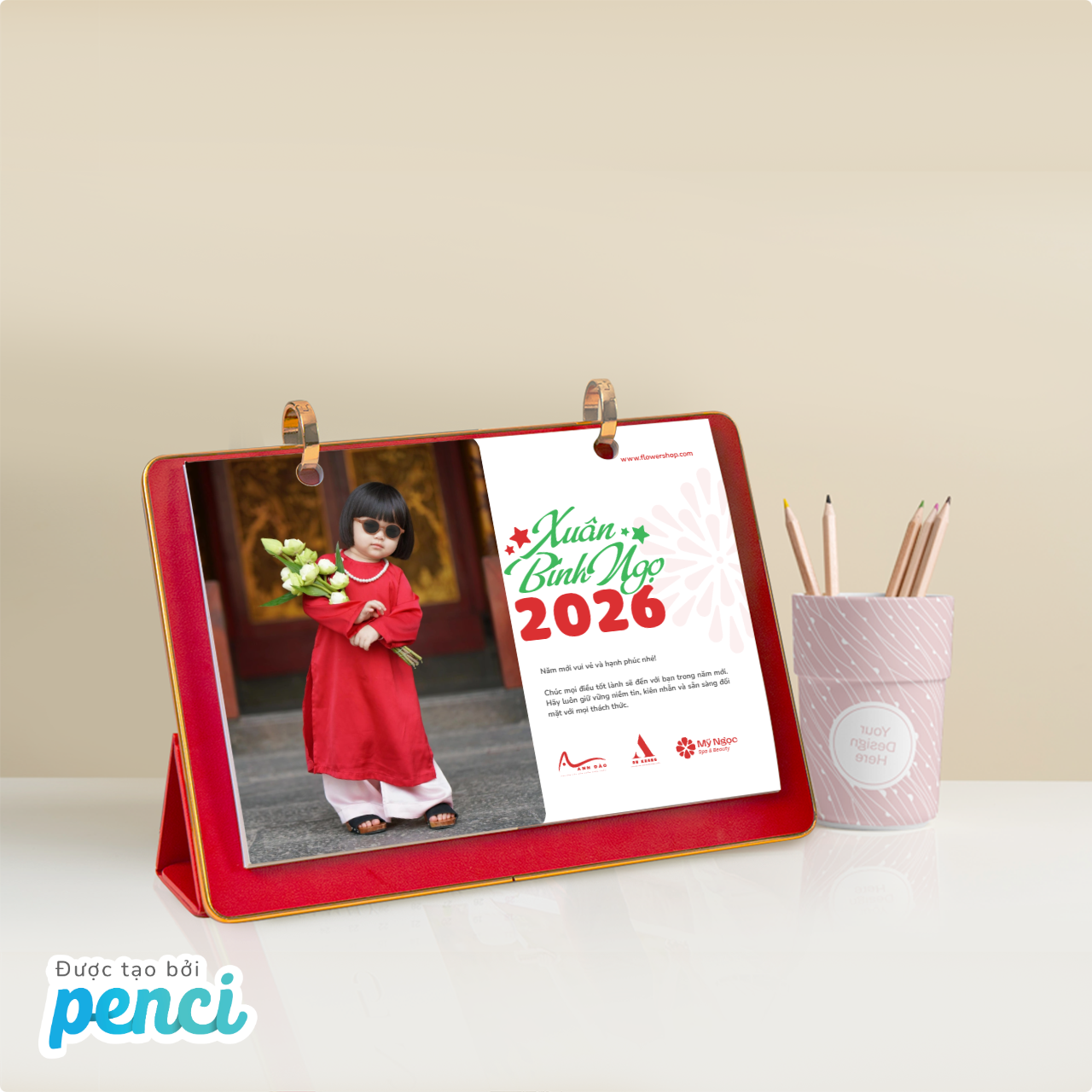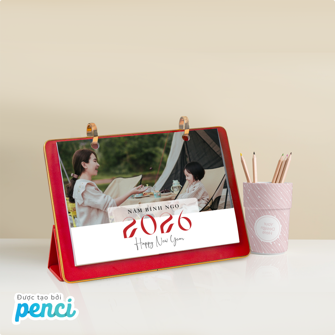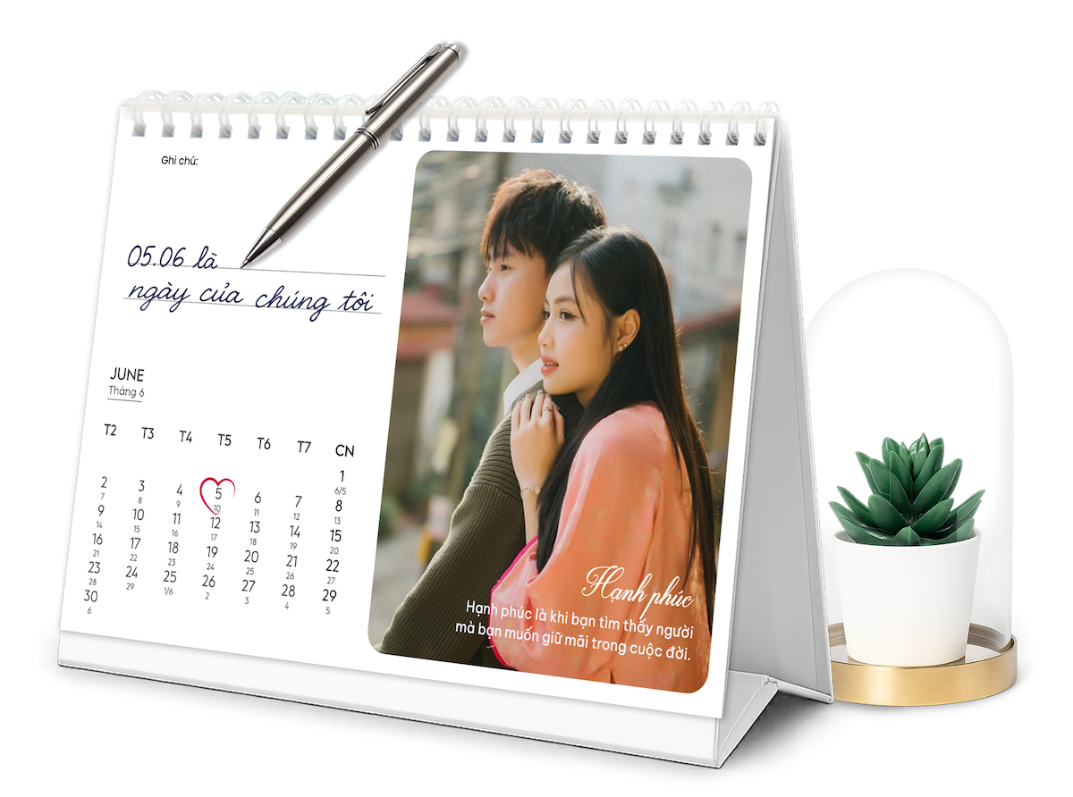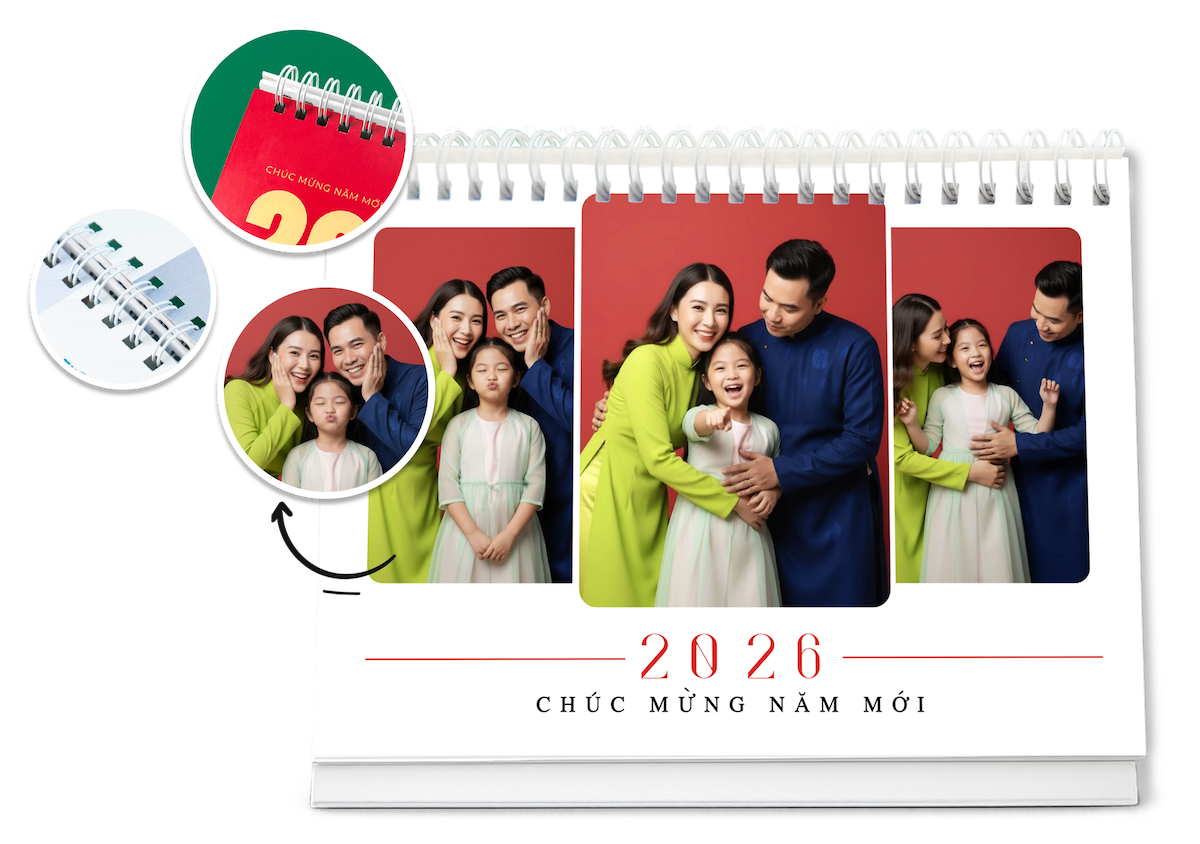 thieke thuvien In lịch để bàn cá nhân hóa theo yêu cầu, Thiết kế lịch in ảnh cá nhân hóa online năm 2026 đơn giản, dễ làm và nhận in từ 1 cuốn By admin | 19 tháng 11 năm 2025 846 đã đọc Bạn đang muốn in lịch để bàn theo yêu cầu, tự dùng ảnh cá nhân và biến nó thành một cuốn lịch in ảnh độc bản trong năm 2026? Thử ngay với Penci, bạn sẽ được tự thiết kế lịch để bàn online theo mẫu thiết kế có sẵn và đặt in lịch để bàn cá nhân hóa chỉ từ 1 cuốn, cực kỳ đơn giản và tiện lợi. >> Tham khảo các mẫu ly sứ in ảnh cá nhân hóa làm quà tặng cực kỳ ý nghĩa 1. Thiết kế lịch để bàn cá nhân hóa và lịch in ảnh cá nhân đơn giản, nhanh chóng với Penci Lịch để bàn cá nhân hóa là dạng lịch được thiết kế riêng dựa trên sở thích, phong cách và nhu cầu riêng của từng người, thay vì dùng những mẫu in sẵn ngoài thị trường. Bạn có thể tùy ý đưa vào ảnh cá nhân, ảnh gia đình, tên, câu nói truyền cảm hứng, ngày kỷ niệm hoặc lựa chọn một chủ đề thiết kế riêng biệt để tạo nên cuốn lịch in ảnh cá nhân độc bản. Nhờ sự cá nhân hóa cao, loại lịch in ảnh theo yêu cầu này đang trở thành xu hướng quà tặng cuối năm, quà tặng cá nhân hóa và là vật trang trí góc làm việc mang đậm dấu ấn riêng. Lịch để bàn cá nhân hóa năm 2026 mang thông điệp yêu thương và đầy ý nghĩa *Làm sao để in lịch để bàn cá nhân thật đơn giản mà không cần biết thiết kế? Penci là nền tảng thiết kế online cho phép bạn tự thiết kế lịch để bàn cá nhân hóa, tạo lịch in ảnh cá nhân và đặt in lịch cá nhân theo yêu cầu chỉ từ 1 cuốn. Toàn bộ quy trình được tối ưu từ khâu thiết kế lịch cá nhân online, in lịch để bàn chất lượng đến giao hàng toàn quốc mang đến cho bạn trải nghiệm nhanh, gọn và chất lượng nhất. - Thiết kế lịch để bàn cá nhân hóa online miễn phí dễ dàng với giao diện trực quan phù hợp cho cả người chưa từng biết thiết kế. - Thư viện mẫu Thuần Việt đa dạng có sẵn hàng trăm mẫu lịch in ảnh cá nhân, gia đình, kỷ niệm… để bạn chọn và tùy chỉnh theo ý thích. Tất cả mẫu thiết kế đều có tích hợp lịch âm – lịch dương giúp bạn theo dõi ngày tháng thuận tiện hơn. - Lịch để bàn cá nhân hóa được in sắc nét, cứng cáp với 2 loại đế cao cấp và phổ thông cho bạn dễ dàng lựa chọn - Nhận in lịch để bàn cá nhân hóa theo yêu cầu chỉ từ 1 cái và giao hàng toàn quốc nhanh chóng. >> BẮT ĐẦU THIẾT KẾ LỊCH ĐỂ BÀN IN ẢNH CÁ NHÂN HÓA NGAY TẠI ĐÂY Thiết kế lịch in ảnh cá nhân online miễn phí đơn giản với Penci Tại Penci, bạn không chỉ in lịch để bàn theo yêu cầu mà còn được tự tay sáng tạo và thiết kế cuốn lịch của riêng mình. Mỗi cuốn lịch để bàn cá nhân hóa bạn tạo ra đều là một phiên bản độc bản, mang dấu ấn cá nhân, phong cách riêng và những hình ảnh ý nghĩa nhất của bạn. >> Tham khảo ngay cách thiết kế áo thun online theo yêu cầu và gợi ý mẫu áo thun đẹp, độc đáo 2. Gợi ý 99+ mẫu lịch để bàn cá nhân hóa theo yêu cầu, lịch in ảnh cá nhân đẹp, độc đáo và sáng tạo phù hợp với mọi đối tượng Penci không chỉ giúp bạn tự thiết kế lịch để bàn online dễ dàng mà còn cung cấp kho mẫu lịch để bàn cá nhân hóa cực kỳ phong phú, phù hợp cho mọi nhu cầu: từ lịch gia đình, lịch cá nhân, lịch couple đến lịch tặng đồng nghiệp hay đối tác cuối năm. Tất cả mẫu đều có thể chỉnh sửa theo yêu cầu và in lịch để bàn số lượng ít từ 1 cuốn, phù hợp để sử dụng cá nhân hoặc làm quà tặng cuối năm thật ý nghĩa. >> Tham khảo ngay các mẫu thiết kế sổ tay lò xo in theo yêu cầu, cá nhân hóa từng chi tiết Click để chỉnh sửa và tự thiết kế Mẫu lịch để bàn cá nhân hóa minimal Chọn mẫu và tự thiết kế lịch để bàn online ngay với Mẫu lịch in ảnh cá nhân tone Hàn Quốc Tùy chỉnh và in lịch để bàn cá nhân phong cách vintage Chọn mẫu để tự thiết kế và in lịch để bàn couple dễ thương Click để dùng mẫu và tạo mẫu lịch để bàn 2026 đẹp, tối giản Chọn mẫu và tự thiết kế lịch để bàn online free mang phong cách hiện đại Nhấn để chỉnh sửa và in lịch để bàn làm quà tặng cuối năm >> Xem trọn bộ THƯ VIỆN MẪU lịch để bàn cá nhân hóa độc quyền của Penci và sử dụng miễn phí ngay hôm nay 3. Hướng dẫn chi tiết cách thiết kế lịch để bàn in ảnh cá nhân và đặt in lịch để bàn theo yêu cầu cực dễ, ai cũng làm được Nếu bạn vẫn chưa biết in lịch để bàn cá nhân ở đâu thì hãy tham khảo ngay cách thiết kế lịch in ảnh cá nhân online chi tiết để bạn có thể tự thiết kế lịch cá nhân hóa và đặt in lịch để bàn theo yêu cầu đẹp, sắc nét, giao hàng toàn quốc chỉ từ 1 cuốn mà ai cũng làm được. >> Xem hướng dẫn chi tiết cách đặt in quà tặng cá nhân hóa đơn giản với Penci Bước 1: Truy cập penci.vn Vào penci.vn tại mục Cá nhân hóa → “Lịch in ảnh cá nhân” → “Thiết kế ngay” trên trang Penc