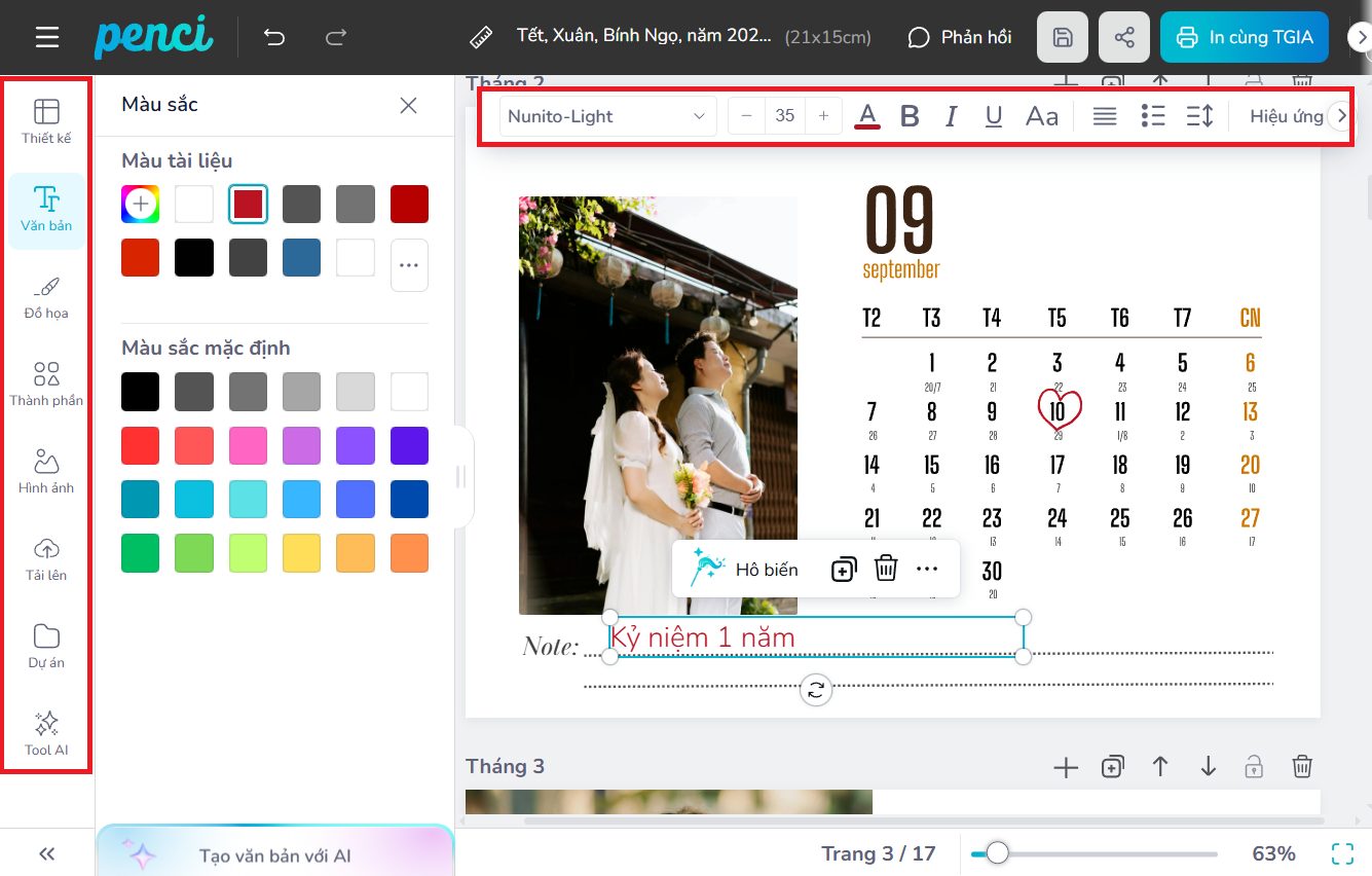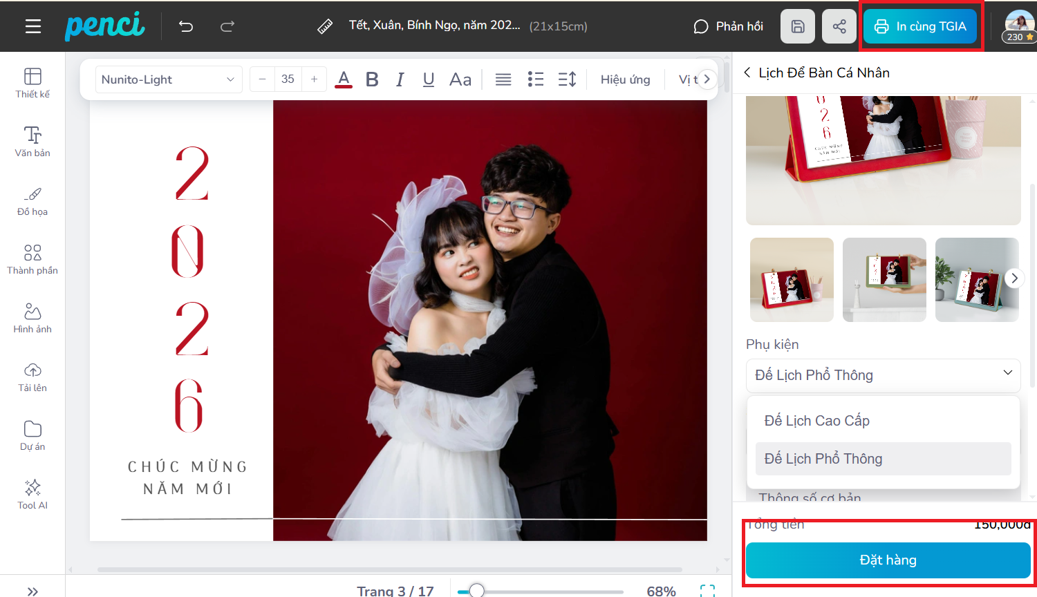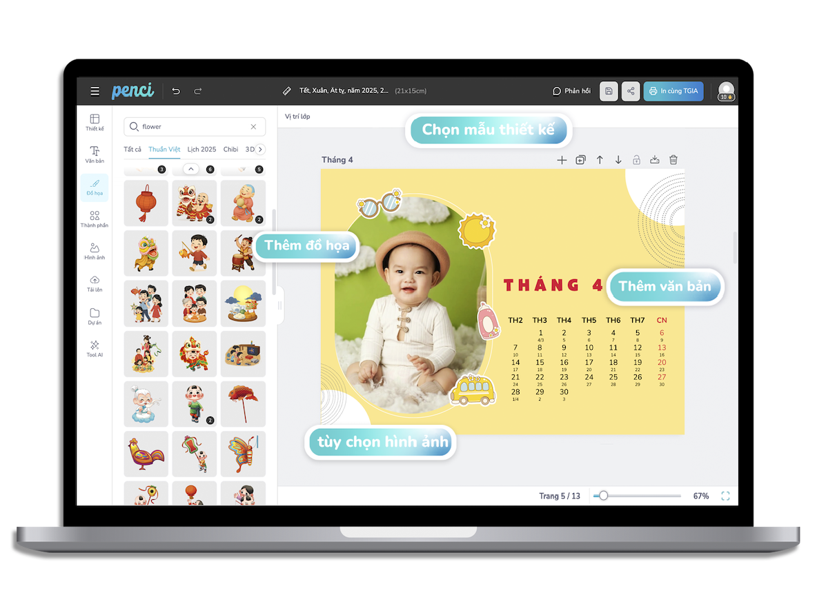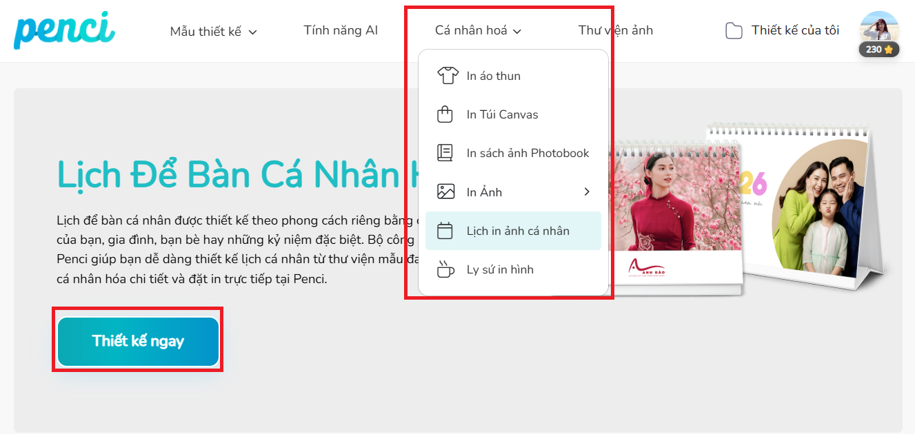 thieke thuvien In lịch để bàn cá nhân hóa theo yêu cầu, Thiết kế lịch in ảnh cá nhân hóa online năm 2026 đơn giản, dễ làm và nhận in từ 1 cuốn By admin | 19 tháng 11 năm 2025 846 đã đọc Bạn đang muốn in lịch để bàn theo yêu cầu, tự dùng ảnh cá nhân và biến nó thành một cuốn lịch in ảnh độc bản trong năm 2026? Thử ngay với Penci, bạn sẽ được tự thiết kế lịch để bàn online theo mẫu thiết kế có sẵn và đặt in lịch để bàn cá nhân hóa chỉ từ 1 cuốn, cực kỳ đơn giản và tiện lợi. >> Tham khảo các mẫu ly sứ in ảnh cá nhân hóa làm quà tặng cực kỳ ý nghĩa 1. Thiết kế lịch để bàn cá nhân hóa và lịch in ảnh cá nhân đơn giản, nhanh chóng với Penci Lịch để bàn cá nhân hóa là dạng lịch được thiết kế riêng dựa trên sở thích, phong cách và nhu cầu riêng của từng người, thay vì dùng những mẫu in sẵn ngoài thị trường. Bạn có thể tùy ý đưa vào ảnh cá nhân, ảnh gia đình, tên, câu nói truyền cảm hứng, ngày kỷ niệm hoặc lựa chọn một chủ đề thiết kế riêng biệt để tạo nên cuốn lịch in ảnh cá nhân độc bản. Nhờ sự cá nhân hóa cao, loại lịch in ảnh theo yêu cầu này đang trở thành xu hướng quà tặng cuối năm, quà tặng cá nhân hóa và là vật trang trí góc làm việc mang đậm dấu ấn riêng. Lịch để bàn cá nhân hóa năm 2026 mang thông điệp yêu thương và đầy ý nghĩa *Làm sao để in lịch để bàn cá nhân thật đơn giản mà không cần biết thiết kế? Penci là nền tảng thiết kế online cho phép bạn tự thiết kế lịch để bàn cá nhân hóa, tạo lịch in ảnh cá nhân và đặt in lịch cá nhân theo yêu cầu chỉ từ 1 cuốn. Toàn bộ quy trình được tối ưu từ khâu thiết kế lịch cá nhân online, in lịch để bàn chất lượng đến giao hàng toàn quốc mang đến cho bạn trải nghiệm nhanh, gọn và chất lượng nhất. - Thiết kế lịch để bàn cá nhân hóa online miễn phí dễ dàng với giao diện trực quan phù hợp cho cả người chưa từng biết thiết kế. - Thư viện mẫu Thuần Việt đa dạng có sẵn hàng trăm mẫu lịch in ảnh cá nhân, gia đình, kỷ niệm… để bạn chọn và tùy chỉnh theo ý thích. Tất cả mẫu thiết kế đều có tích hợp lịch âm – lịch dương giúp bạn theo dõi ngày tháng thuận tiện hơn. - Lịch để bàn cá nhân hóa được in sắc nét, cứng cáp với 2 loại đế cao cấp và phổ thông cho bạn dễ dàng lựa chọn - Nhận in lịch để bàn cá nhân hóa theo yêu cầu chỉ từ 1 cái và giao hàng toàn quốc nhanh chóng. >> BẮT ĐẦU THIẾT KẾ LỊCH ĐỂ BÀN IN ẢNH CÁ NHÂN HÓA NGAY TẠI ĐÂY Thiết kế lịch in ảnh cá nhân online miễn phí đơn giản với Penci Tại Penci, bạn không chỉ in lịch để bàn theo yêu cầu mà còn được tự tay sáng tạo và thiết kế cuốn lịch của riêng mình. Mỗi cuốn lịch để bàn cá nhân hóa bạn tạo ra đều là một phiên bản độc bản, mang dấu ấn cá nhân, phong cách riêng và những hình ảnh ý nghĩa nhất của bạn. >> Tham khảo ngay cách thiết kế áo thun online theo yêu cầu và gợi ý mẫu áo thun đẹp, độc đáo 2. Gợi ý 99+ mẫu lịch để bàn cá nhân hóa theo yêu cầu, lịch in ảnh cá nhân đẹp, độc đáo và sáng tạo phù hợp với mọi đối tượng Penci không chỉ giúp bạn tự thiết kế lịch để bàn online dễ dàng mà còn cung cấp kho mẫu lịch để bàn cá nhân hóa cực kỳ phong phú, phù hợp cho mọi nhu cầu: từ lịch gia đình, lịch cá nhân, lịch couple đến lịch tặng đồng nghiệp hay đối tác cuối năm. Tất cả mẫu đều có thể chỉnh sửa theo yêu cầu và in lịch để bàn số lượng ít từ 1 cuốn, phù hợp để sử dụng cá nhân hoặc làm quà tặng cuối năm thật ý nghĩa. >> Tham khảo ngay các mẫu thiết kế sổ tay lò xo in theo yêu cầu, cá nhân hóa từng chi tiết Click để chỉnh sửa và tự thiết kế Mẫu lịch để bàn cá nhân hóa minimal Chọn mẫu và tự thiết kế lịch để bàn online ngay với Mẫu lịch in ảnh cá nhân tone Hàn Quốc Tùy chỉnh và in lịch để bàn cá nhân phong cách vintage Chọn mẫu để tự thiết kế và in lịch để bàn couple dễ thương Click để dùng mẫu và tạo mẫu lịch để bàn 2026 đẹp, tối giản Chọn mẫu và tự thiết kế lịch để bàn online free mang phong cách hiện đại Nhấn để chỉnh sửa và in lịch để bàn làm quà tặng cuối năm >> Xem trọn bộ THƯ VIỆN MẪU lịch để bàn cá nhân hóa độc quyền của Penci và sử dụng miễn phí ngay hôm nay 3. Hướng dẫn chi tiết cách thiết kế lịch để bàn in ảnh cá nhân và đặt in lịch để bàn theo yêu cầu cực dễ, ai cũng làm được Nếu bạn vẫn chưa biết in lịch để bàn cá nhân ở đâu thì hãy tham khảo ngay cách thiết kế lịch in ảnh cá nhân online chi tiết để bạn có thể tự thiết kế lịch cá nhân hóa và đặt in lịch để bàn theo yêu cầu đẹp, sắc nét, giao hàng toàn quốc chỉ từ 1 cuốn mà ai cũng làm được. >> Xem hướng dẫn chi tiết cách đặt in quà tặng cá nhân hóa đơn giản với Penci Bước 1: Truy cập penci.vn Vào penci.vn tại mục Cá nhân hóa → “Lịch in ảnh cá nhân” → “Thiết kế ngay” trên trang Penc