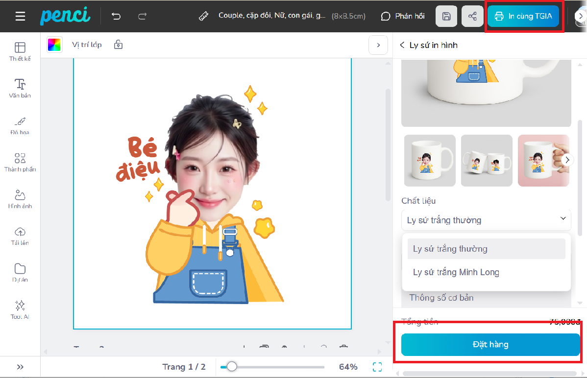 thieke thuvien In ly sứ theo yêu cầu, ly sứ in hình cá nhân đẹp, chất lượng - Tự thiết kế ly sứ quà tặng đẹp, ý nghĩa By admin | 28 tháng 10 năm 2025 50 đã đọc Bạn đang tìm kiếm một món quà đơn giản nhưng đầy ý nghĩa? Hay muốn tạo một chiếc ly sứ in hình theo yêu cầu mang đậm dấu ấn cá nhân? Hãy thử ngay với Penci, bạn hoàn toàn có thể tự thiết kế ly sứ in hình cá nhân và in ly sứ chất lượng mang hình ảnh, thông điệp riêng cực kỳ đơn giản chỉ trong 5 phút. >> Tham khảo thêm quà tặng handmade dễ làm 1. In ly sứ là gì? Tại sao bạn nên in ly sứ cá nhân hóa làm quà tặng Ly sứ in hình là sản phẩm được tùy chỉnh in hình, lời nhắn hoặc thiết kế riêng theo sở thích của bạn lên bề mặt ly sứ để tạo nên một sản phẩm độc bản, mang dấu ấn riêng. Đây không chỉ là món đồ dùng hằng ngày mà còn là ly sứ quà tặng ý nghĩa cho bạn bè, người thân hay đối tác. Ngày nay, in ly sứ theo yêu cầu đang trở thành xu hướng yêu thích của các bạn trẻ, đặc biệt là in hình lên ly sứ để lưu giữ kỷ niệm, thể hiện cá tính, hay gửi gắm thông điệp yêu thương. Từ in ly sứ sinh nhật cho bạn thân, in ly sứ kỷ niệm cho cặp đôi đến in ly sứ làm quà tặng doanh nghiệp chuyên nghiệp, tất cả đều dễ dàng thực hiện chỉ trong vài phút ngay tại Penci. >> BẮT ĐẦU THIẾT KẾ HÌNH IN VÀ IN LY SỨ THEO YÊU CẦU TẠI ĐÂY! Ly sứ in hình cá nhân hóa - Món quà tặng cá nhân hóa đặc biệt và ý nghĩa *Vậy tại sao nên bạn nên chọn in ly sứ chuyên nghiệp tại Penci? Penci là công cụ thiết kế trực tuyến giúp bạn tự thiết kế hoặc tùy chỉnh mẫu ly sứ có sẵn và in hình trực tiếp lên ly mà không cần xuất file gửi cho bên thứ 3 giúp quá trình in ly sứ nhanh gọn và chính xác. - Thiết kế ly sứ online nhanh và tiện lợi với những mẫu có sẵn tại Penci giúp bạn dễ dàng tùy chỉnh tạo thành phẩm riêng bằng cách chọn mẫu, tải ảnh và thêm chữ. - Áp dụng công nghệ in chuyển nhiệt thăng hoa giúp màu in bền, sắc nét, không bong tróc dù bạn in hình lên cốc hay in ly sứ theo tên, ảnh cá nhân. - Đa dạng lựa chọn với ly sứ thường và ly sứ Minh Long cao cấp, phù hợp với từng mục đích sử dụng từ ly sứ quà tặng sinh nhật, ly sứ đôi kỷ niệm đến ly sứ in logo doanh nghiệp. - Dịch vụ in ly sứ giá tốt với chất lượng đẹp, nhận in chỉ từ 1 sản phẩm, hỗ trợ giao hàng toàn quốc nhanh chóng, tiện lợi. >> Tham khảo các mẫu in hình ly sứ đẹp, hot trend nhất hiện nay Thư viện mẫu ly sứ in hình đa dạng, được thiết kế riêng theo xu hướng 2. Top những mẫu in ly sứ đẹp, gợi ý mẫu thiết kế ly sứ in hình làm quà tặng độc bản, ý nghĩa Nếu bạn đang tìm kiếm mẫu ly sứ đẹp để làm quà tặng hoặc sử dụng hằng ngày, hãy tham khảo những gợi ý dưới đây. 2.1. Ly sứ quà tặng sinh nhật – Món quà gửi gắm kỷ niệm Nếu bạn muốn món quà sinh nhật ý nghĩa thì hãy chọn ngay những mẫu ly in hình kỷ niệm, in tên riêng hoặc in lời chúc sẽ giúp chiếc ly sứ quà tặng sinh nhật trở nên đặc biệt và giàu cảm xúc hơn. Với dịch vụ in ly sứ theo yêu cầu tại Penci, bạn chỉ cần vài phút để thiết kế ly sứ online, chọn mẫu ly sứ yêu thích, tải ảnh và thêm thông điệp. Đây là lựa chọn lý tưởng để in ly sứ làm quà sinh nhật cho bạn thân vừa tinh tế, ý nghĩa, vừa đậm dấu ấn cá nhân. >> Tham khảo thêm các quà tặng sinh nhật cá nhân hóa ý nghĩa Tùy chỉnh mẫu và in ly sứ cá nhân hóa tại đây Tùy chỉnh mẫu và in ly sứ cá nhân hóa tại đây Tùy chỉnh mẫu và in ly sứ cá nhân hóa tại đây Tùy chỉnh mẫu và in ly sứ cá nhân hóa tại đây Tùy chỉnh mẫu và in ly sứ cá nhân hóa tại đây 2.2. Ly sứ đôi dành cho cặp đôi – Biểu tượng của tình yêu In ly sứ kỷ niệm cho cặp đôi bằng hình ảnh, chibi, meme đáng yêu đang là xu hướng quà tặng hot nhất hiện nay. In ly sứ kỷ niệm cho cặp đôi dễ thương là cách đơn giản để lưu giữ kỷ niệm và “đánh dấu chủ quyền” theo phong cách nhẹ nhàng. Penci cung cấp nhiều mẫu ly sứ couple đẹp giúp bạn đễ dàng tùy chỉnh và in ly sứ theo yêu cầu nhanh chóng, chất lượng và mang ý nghĩa cá nhân hóa sâu sắc. >> Tham khảo thêm các mẫu áo đôi, áo couple dành cho cặp đôi Tùy chỉnh mẫu và in ly sứ cá nhân hóa tại đây Tùy chỉnh mẫu và in ly sứ cá nhân hóa tại đây Tùy chỉnh mẫu và in ly sứ cá nhân hóa tại đây Tùy chỉnh mẫu và in ly sứ cá nhân hóa tại đây Tùy chỉnh mẫu và in ly sứ cá nhân hóa tại đây 2.3. Ly sứ in hình cá nhân hóa – Thể hiện phong cách riêng Với dịch vụ in ly sứ in hình theo yêu cầu, bạn hoàn toàn có thể tạo nên chiếc ly sứ in hình cá nhân hóa mang phong cách riêng. Penci cho phép bạn in hình lên ly, in tên riêng, in nhân vật yêu thích hay in ly sứ theo ảnh cá nhân,... tất cả đều được thực hiện trực tuyến, nhanh gọn và dễ dàng. Đây là lựa chọn tuyệt vời cho những ai muốn khẳng định cá tính, biến chiếc ly thành sản phẩm “độc bản” không trộn lẫn. >> Tha