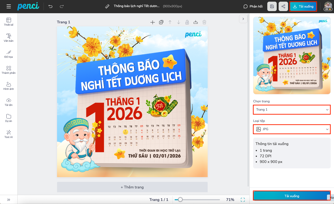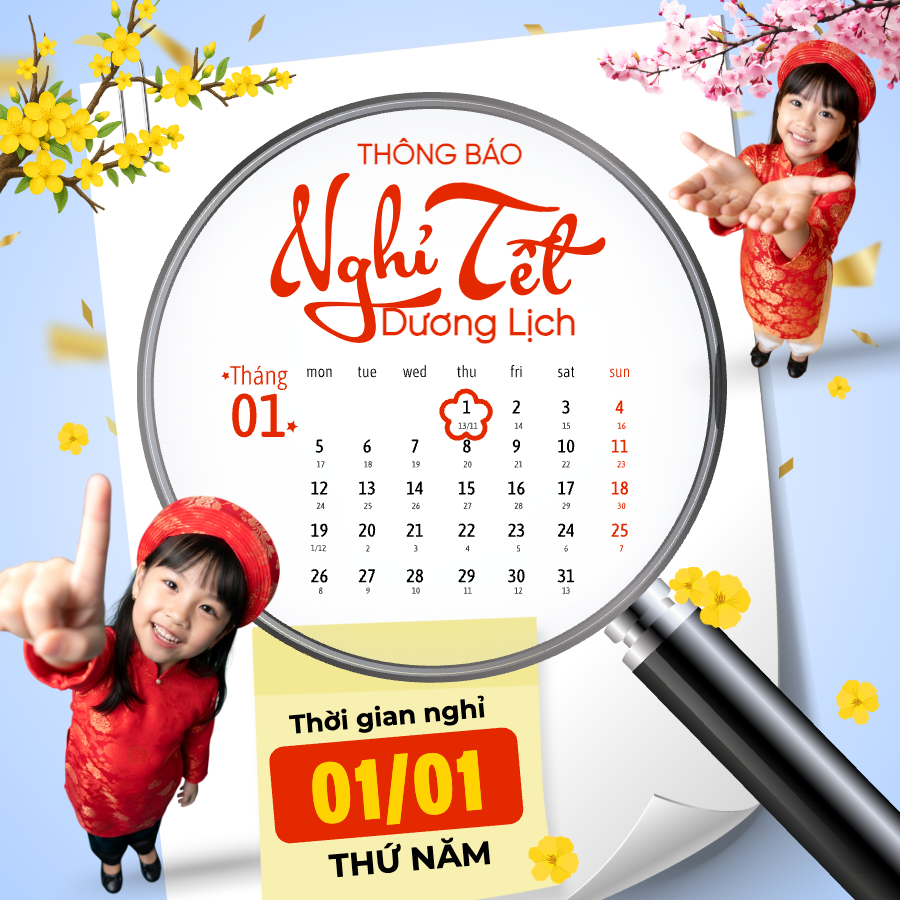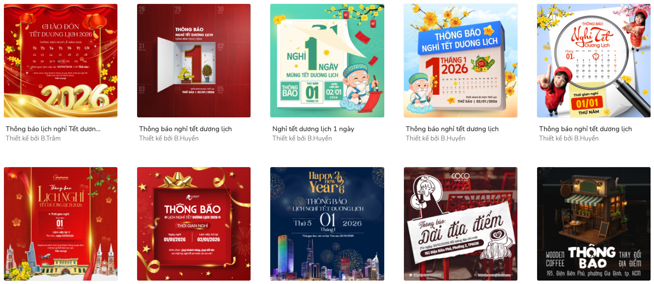 thieke thuvien Mẫu thông báo nghỉ Tết Dương Lịch năm 2026 đẹp, tùy chỉnh online dành cho doanh nghiệp, cửa hàng By admin | 16 tháng 12 năm 2025 30988 đã đọc Tết Dương lịch là dịp nghỉ lễ mở màn cho một năm mới, cũng là thời điểm doanh nghiệp, cửa hàng cần chủ động thông báo lịch nghỉ để nhân viên, khách hàng và đối tác dễ dàng sắp xếp công việc. Vậy Tết Dương lịch năm 2026 được nghỉ mấy ngày? Nên viết thông báo nghỉ Tết Dương lịch như thế nào cho rõ ràng, chuyên nghiệp mà vẫn đẹp mắt? Cùng Penci tìm hiểu chi tiết và tham khảo các mẫu thông báo nghỉ Tết Dương Lịch năm 2026 có thể tùy chỉnh online, dùng ngay không cần thiết kế từ đầu. 1. Tết Dương lịch năm 2026 được nghỉ mấy ngày? Tết Dương lịch năm 2026, ngày 01/01/2026 rơi vào thứ Năm. Áp theo quy định của Bộ luật Lao động hiện hành, người lao động trên cả nước sẽ được nghỉ 01 ngày và hưởng nguyên lương. Cụ thể, theo Điều 112 Bộ luật Lao động năm 2019, người lao động Việt Nam có tổng cộng 11 ngày nghỉ lễ, Tết trong năm, trong đó bao gồm Tết Dương lịch. Với các doanh nghiệp, cửa hàng, đây là mốc thời gian cần được thông báo sớm để đảm bảo vận hành trơn tru, tránh gián đoạn giao dịch và giữ hình ảnh chuyên nghiệp trong mắt khách hàng. 2. Mẫu thông báo nghỉ Tết Dương Lịch năm 2026 đẹp, tùy chỉnh online dành cho doanh nghiệp, cửa hàng Mẫu thông báo lịch nghỉ Tết Dương lịch 2026 có thể hiểu là văn bản dùng để thông tin chính thức đến toàn thể nhân viên, khách hàng và đối tác về: - Thời gian nghỉ Tết Dương lịch - Thời gian làm việc trở lại - Đối tượng áp dụng - Các lưu ý liên quan trong thời gian nghỉ lễ Một mẫu thông báo đầy đủ thường bao gồm: - Tên doanh nghiệp, cửa hàng - Tiêu đề thông báo - Thời gian nghỉ cụ thể - Thời gian hoạt động trở lại - Lời chúc năm mới ngắn gọn, lịch sự Hiện nay, nhiều doanh nghiệp không chỉ đăng thông báo dưới dạng văn bản mà còn trình bày dưới dạng hình ảnh thiết kế sẵn để đăng website, fanpage, Zalo OA hoặc gửi nội bộ. Cách này vừa dễ đọc, vừa tăng độ chuyên nghiệp, lại tránh cảnh… chữ nhiều mà chẳng ai muốn đọc. Dưới đây là một số mẫu thông báo nghỉ Tết Dương Lịch năm 2026 đẹp, tùy chỉnh online dành cho doanh nghiệp, cửa hàng: Mẫu thông báo nghỉ Tết Dương Lịch 2026 cho doanh nghiệp Mẫu thông báo lịch nghỉ Tết Dương lịch năm 2026 Thông báo nghỉ Tết Dương Lịch 2026 dễ chỉnh sửa Mẫu thông báo nghỉ lễ 01/01/2026 cho cửa hàng Mẫu thông báo nghỉ Tết Dương Lịch 2026 đăng website Thông báo lịch nghỉ Tết Dương lịch 2026 chuyên nghiệp Mẫu thông báo nghỉ Tết Dương Lịch 2026 cho khách hàng Mẫu thông báo nghỉ Tết Dương lịch 2026 cho nội bộ Thông báo nghỉ lễ Tết Dương Lịch năm 2026 Mẫu thông báo lịch nghỉ 01/01/2026 >> Trọn bộ mẫu thiết kế thông báo lịch nghỉ Tết Dương lịch 2026 3. Vì sao nên dùng mẫu thông báo tùy chỉnh online? Không cần biết thiết kế vẫn chỉnh sửa được Với các mẫu thông báo tùy chỉnh online, người dùng không cần nền tảng thiết kế chuyên môn vẫn có thể hoàn thiện ấn phẩm trong vài phút. Nội dung đã được bố cục sẵn, việc cần làm chỉ là thay đổi thông tin như thời gian nghỉ, tên doanh nghiệp hoặc lời chúc. Cách này giúp tiết kiệm đáng kể thời gian, đặc biệt phù hợp với doanh nghiệp nhỏ, cửa hàng hoặc bộ phận hành chính nhân sự không có đội ngũ thiết kế riêng. Penci có sẵn thư viện mẫu, chỉ cần chọn là dùng miễn phí Thay đổi logo, màu sắc theo nhận diện thương hiệu Mẫu thông báo tùy chỉnh cho phép doanh nghiệp dễ dàng thêm logo, điều chỉnh màu sắc hoặc yếu tố nhận diện để phù hợp với thương hiệu hiện có. Nhờ đó, thông báo nghỉ lễ không bị rời rạc so với các ấn phẩm truyền thông khác, mà vẫn giữ được sự nhất quán về hình ảnh. Đây là điểm quan trọng giúp doanh nghiệp trông chuyên nghiệp hơn, kể cả với những thông báo hành chính đơn giản. Tải ảnh lên, xoá nền miễn phí và kéo thả đến vị trí mình cần Xuất file nhanh để đăng mạng xã hội hoặc in ấn Sau khi chỉnh sửa, người dùng có thể xuất file ngay với định dạng phù hợp để đăng tải trên website, fanpage, Zalo OA hoặc sử dụng cho in ấn. Quy trình gọn nhẹ giúp doanh nghiệp chủ động thời gian, không phụ thuộc vào bên thứ ba và tránh tình trạng “chờ file” sát ngày nghỉ lễ. Thông báo được đưa đến khách hàng đúng lúc, đúng kênh. Tải ảnh thông báo nghỉ Tết về dưới dạng ảnh hoặc file PDF Đừng để đến sát ngày nghỉ mới vội vàng soạn thông báo. Chọn sẵn mẫu thông báo nghỉ Tết Dương Lịch 2026 có thể chỉnh sửa online giúp doanh nghiệp chủ động lịch trình, truyền tải thông tin rõ ràng và giữ hình ảnh chuyên nghiệp trên mọi kênh truyền thông. >> Thiết kế thông báo nghỉ Tết Dương Lịch 2026 ngay Penci - Thiết kế dễ dàng, đậm chất Việt Đã sao chép