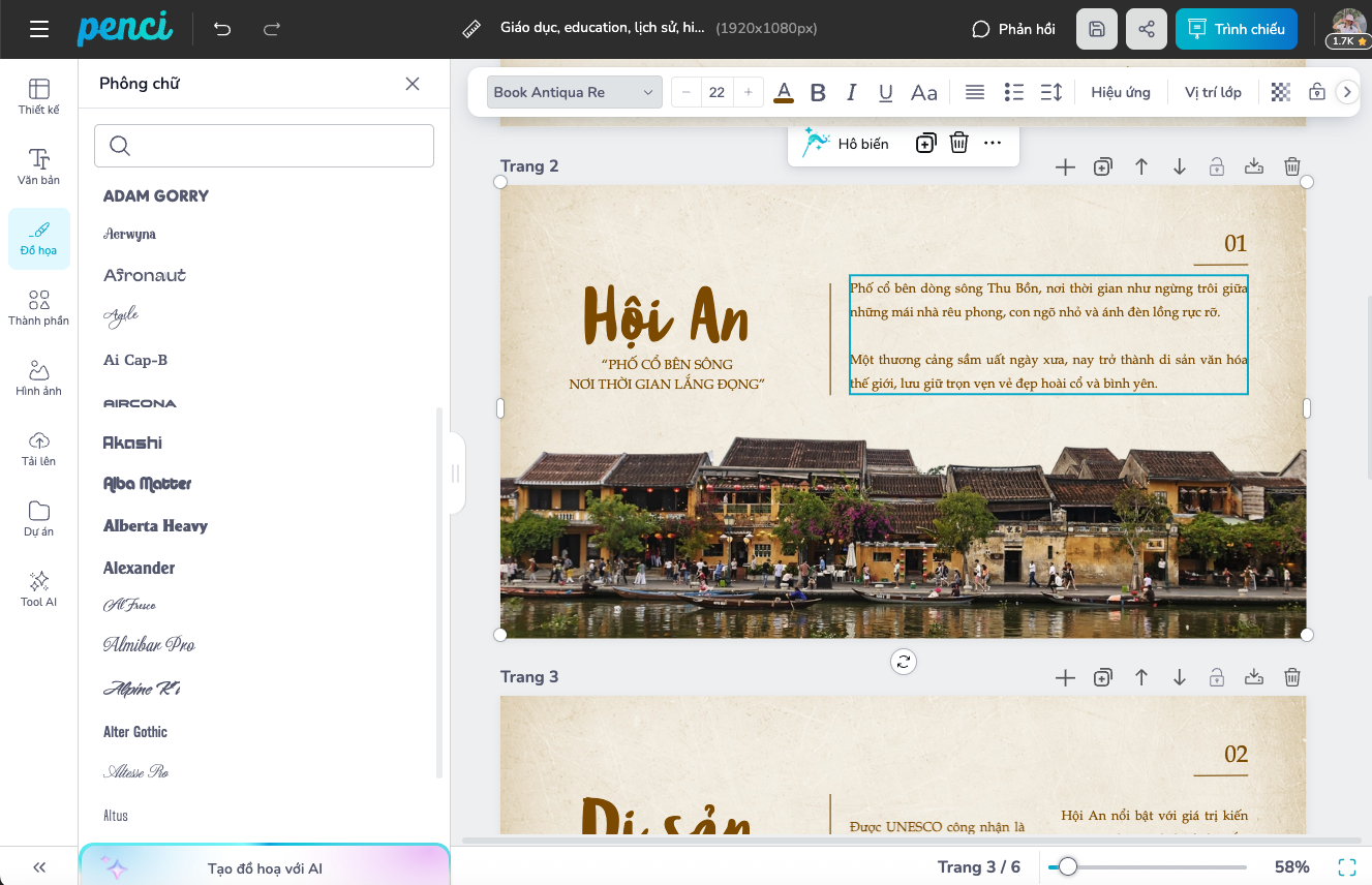 thieke thuvien Mẹo thiết kế slide thuyết trình đẹp, sáng tạo, dễ gây ấn tượng với khán giả By admin | 03 tháng 12 năm 2025 318 đã đọc Trong một bài thuyết trình, các bố cục slide đẹp đóng vai trò quan trọng không kém nội dung. Bài có bố cục slide thuyết trình đẹp không chỉ giúp truyền tải thông tin rõ ràng mà còn thu hút sự chú ý của khán giả, làm nổi bật thông điệp chính. Bài viết này sẽ hướng dẫn bạn các mẹo và nguyên tắc để giúp mẫu thiết kế bài thuyết trình của bạn chuyên nghiệp hơn. 1. Thế nào là một bố cục slide đẹp? Một bố cục slide đẹp không chỉ đơn giản là sự sắp xếp nội dung theo một trật tự hợp lý mà còn cần đảm bảo tính thẩm mỹ, khả năng truyền tải thông điệp một cách hiệu quả. Để được đánh giá là đẹp, bài thuyết trình cần đảm bảo những yếu tố sau: - Sự kết hợp hài hòa giữa các yếu tố như hình ảnh, văn bản, khoảng trống. - Tính cân đối, sự nhất quán trong cấu trúc giúp người xem dễ dàng nắm bắt thông tin, không cảm thấy bị quá tải. - Tuân theo một số nguyên tắc thiết kế cơ bản để thể hiện thông điệp và tạo ra trải nghiệm thị giác hấp dẫn. 2. Những yếu tố cần có để xây dựng tính thống nhất trong bố cục slide Tính thống nhất là yếu tố cốt lõi giúp các bố cục slide đẹp, chuyên nghiệp và dễ theo dõi. Để đảm bảo sự nhất quán, bạn cần chú ý đến việc phối hợp hình khối, font chữ, cách sắp xếp nội dung, đồng thời tận dụng các công cụ hỗ trợ. Những yếu tố này không chỉ đảm bảo sự đồng bộ mà còn tạo ấn tượng mạnh mẽ, giúp truyền tải thông điệp hiệu quả. >> Những mẫu slide thuyết trình được thiết kế sẵn, có tính thông nhất về màu sắc và bố cục 2.1 Về màu sắc Màu sắc tạo sự hấp dẫn thị giác, giúp điều hướng ánh nhìn của khán giả. Để đạt hiệu quả tốt, bạn nên chọn bảng màu chủ đạo, sử dụng nhất quán xuyên suốt slide. Thông thường, bảng màu gồm 2 - 4 màu chính. Màu nền, màu chữ, màu điểm nhấn cần có độ tương phản vừa đủ để nội dung hiển thị rõ ràng. Phối màu sắc thiết kế slide phù hợp cho từng nhóm ngành nghề 2.2 Về hình khối Hình khối giúp phân chia nội dung trên slide rõ ràng. Các bố cục slide đẹp thường dùng hình khối để định hướng ánh nhìn. Tuy nhiên, hãy bố trí hợp lý, tránh quá nhiều yếu tố trang trí gây rối mắt. Chú trọng hài hòa giữa hình khối và nội dung, phù hợp với chủ đề trình bày. 2.3 Về font chữ Chọn font dễ đọc, kích thước vừa phải để truyền tải thông điệp hiệu quả. Thường dùng các font như Arial, Calibri, Roboto để tạo sự gần gũi, chuyên nghiệp. Duy trì 1 - 2 loại font xuyên suốt slide và dùng in đậm, in nghiêng, hoặc màu khác để nhấn mạnh phần quan trọng. Penci có trọn bộ font chữ Việt Hoá, thiết kế slide thuyết trình khong sợ bị lỗi font 2.4 Về cách sắp xếp Slide cần bố trí hợp lý để người xem dễ theo dõi mạch nội dung. Tuân theo nguyên tắc căn lề, sắp xếp thông tin từ trái sang phải, từ trên xuống dưới. Khoảng cách giữa các yếu tố cần đảm bảo không gian trống hợp lý, giúp slide thoáng, dễ nhìn. 3. Một số bố cục phổ biến khi thiết kế slide Hiện nay có nhiều bố cục slide đẹp, mỗi kiểu có ưu điểm riêng, phù hợp với các mục đích trình bày khác nhau. Việc linh hoạt áp dụng sẽ giúp slide độc đáo và thu hút hơn. >> Trọn bộ mẫu thiết kế slide thuyết trình có bố cục đẹp, chuẩn nguyên tắc thiết kế 3.1 Bố cục slide trung tâm Thông điệp chính đặt ngay giữa slide, thu hút ánh nhìn. Phù hợp cho bài trình bày ngắn gọn, mang tính định hướng rõ ràng. 3.2 Bố cục đối xứng Thường dùng để minh họa cấu trúc tổ chức, tính năng sản phẩm, hoặc chia nhỏ quy trình phức tạp thành các bước dễ hiểu. Tạo cảm giác ổn định, trang trọng, gọn gàng. 3.3 Bố cục 1/2 slide Chia đôi màn hình, giúp trình bày văn bản và hình ảnh cân đối, dễ theo dõi. Phù hợp bài có lượng nội dung trung bình, tránh quá tải. 3.4 Bố cục 1/3 slide Chia slide theo tỉ lệ 2:1, dẫn dắt ánh nhìn vào thông điệp chính. Phần lớn có thể dùng hình ảnh, phần còn lại cho văn bản, tạo điểm nhấn thị giác. 3.5 Bố cục lưới Linh hoạt, sắp xếp nhiều hình ảnh và nội dung, giữ kích thước khoảng trắng đồng đều, giúp slide gọn gàng, dễ nhìn, vẫn duy trì tính nhất quán. 4. Nguyên tắc vàng cần nắm để có bố cục slide đẹp - Tính đơn giản: Trình bày điểm chính, tránh nhồi nhét thông tin. - Tính nhất quán: Chọn tối đa 2 font chữ, duy trì màu nền và kiểu hình ảnh đồng bộ. - Tạo điểm nhấn: Dùng kích thước chữ lớn, hình ảnh hoặc ký hiệu độc đáo để nhấn mạnh thông tin quan trọng. - Sự cân đối: Phân bổ hợp lý giữa nội dung, hình ảnh và đồ họa, tạo cảm giác dễ chịu và giúp người xem nắm bắt thông tin. 5. Hướng dẫn cách thiết kế slide đẹp, gây ấn tượng với người xem Thiết kế slide ấn tượng không chỉ là bố cục hợp l