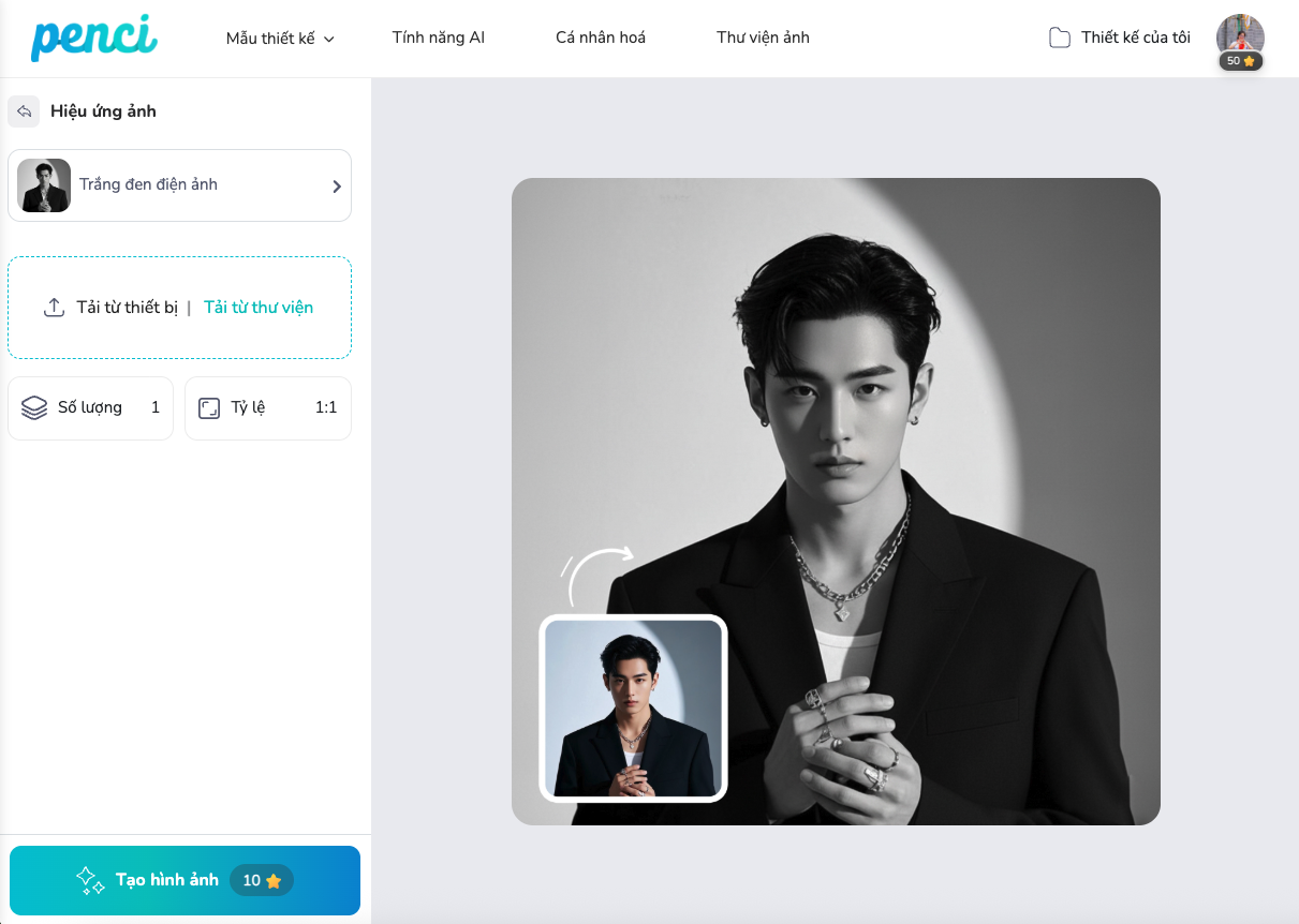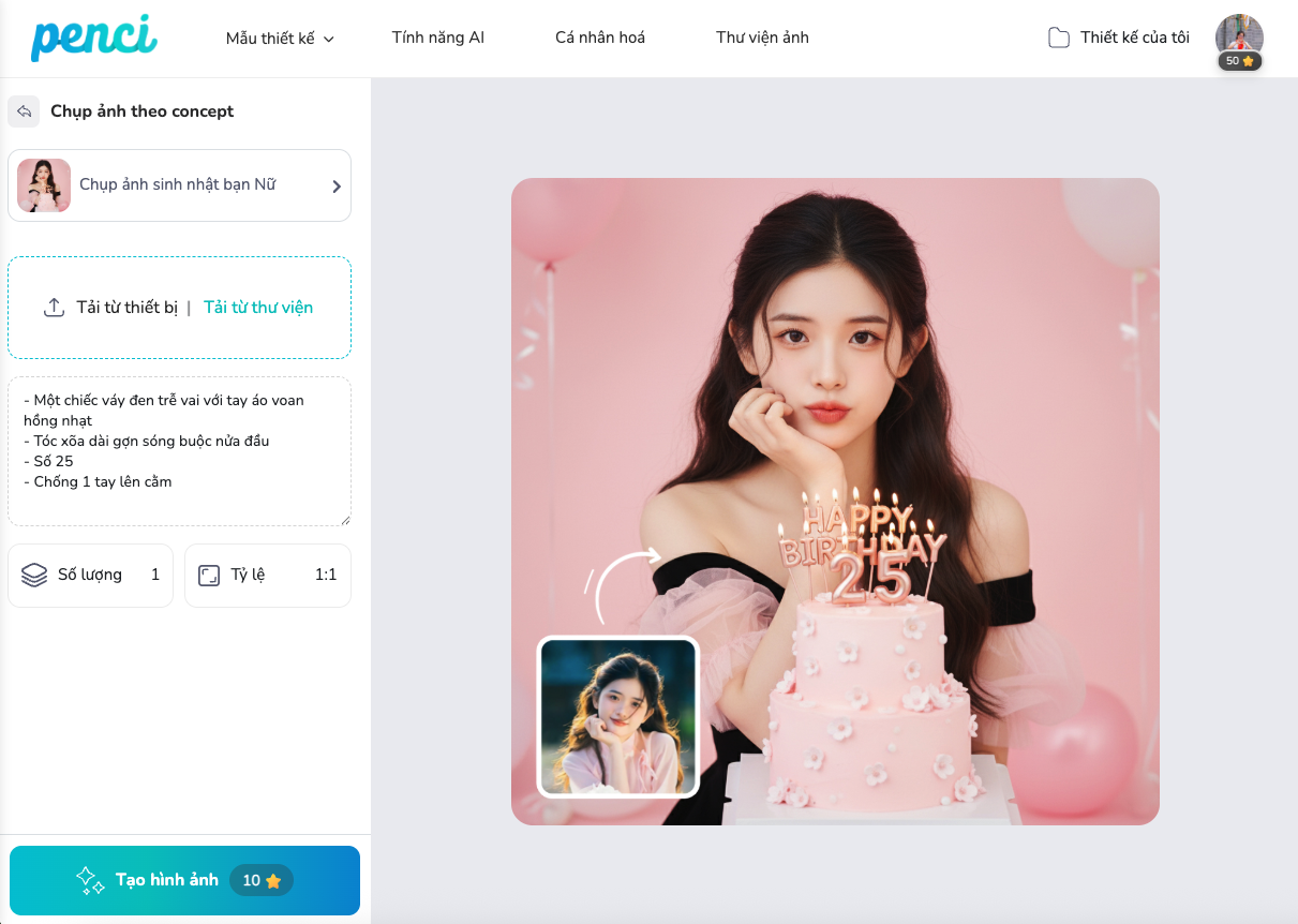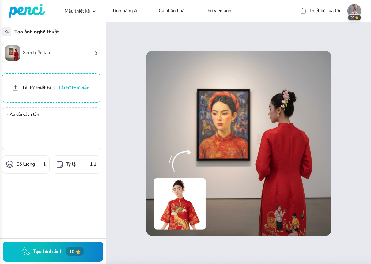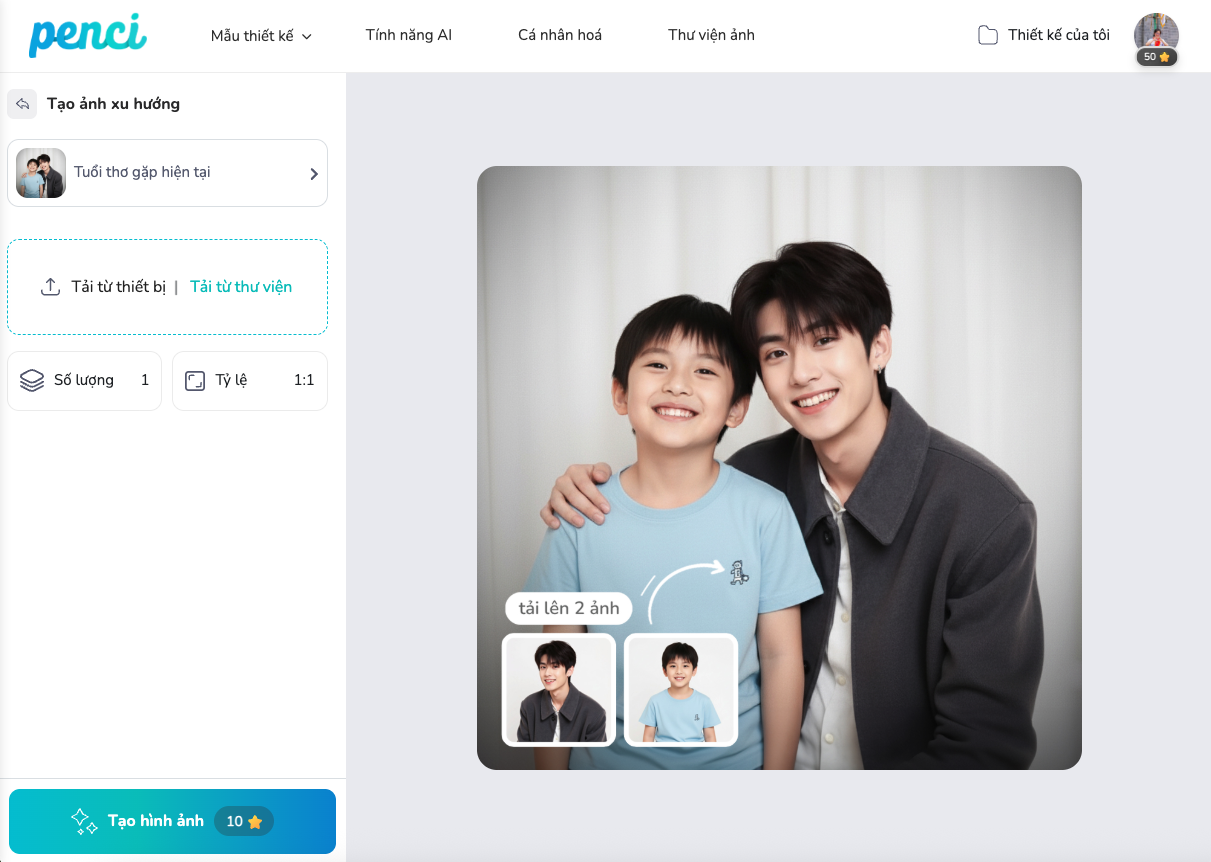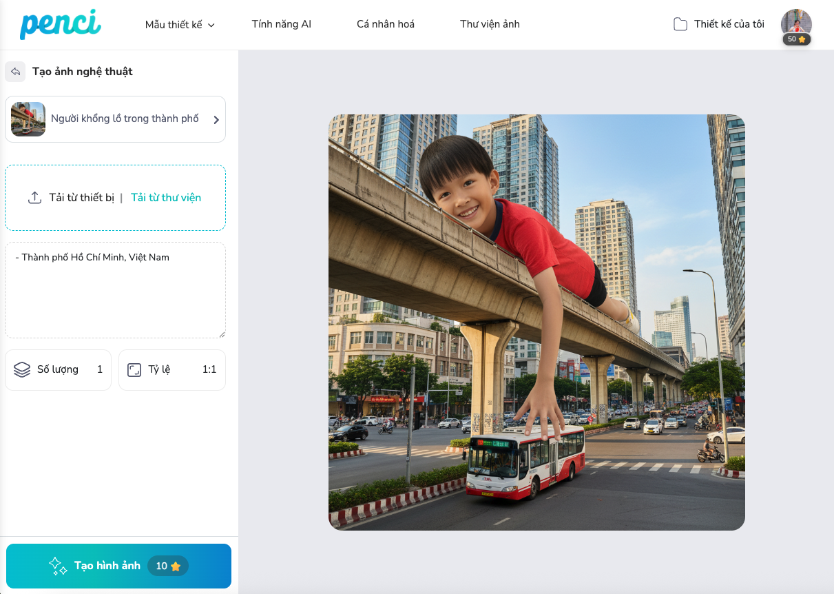 thieke thuvien Phong cách tạo ảnh AI, mô hình 3D xu hướng mà không cần prompt, câu lệnh By admin | 27 tháng 09 năm 2025 356 đã đọc Bạn đã từng nhìn thấy một bức ảnh trending được tạo từ AI và bạn tự hỏi: “Làm sao để tạo ra một tác phẩm tương tự, hoặc thậm chí còn độc đáo hơn?" Với sự phát triển không ngừng của trí tuệ nhân tạo, việc tạo ra những bức ảnh chỉ bằng vài dòng mô tả (prompt) đã trở nên dễ dàng hơn bao giờ hết. Nhưng làm thế nào để bạn có được hình ảnh chất lượng mà không biết cấu trúc prompt, câu lệnh tạo ra chúng? 👉 Bắt đầu: Tạo hình ảnh AI, mô hình 3D xu hướng mà không cần prompt, câu lệnh Nếu bạn đang muốn tạo ra những bức ảnh AI độc đáo, sáng tạo hay hình ảnh anime đẹp mắt nhưng chưa biết bắt đầu từ đâu, thì bài viết này chính là dành cho bạn. Bài viết này tổng hợp các phong cách tạo ảnh AI, mô hình 3D xu hướng, giúp bạn dễ dàng bắt trend chỉ với vài cú click. Tham khảo ngay để áp dụng và khám phá thế giới hình ảnh cực kỳ sống động từ AI nhé. 1. Tổng hợp các phong cách tạo ảnh AI, mô hình 3D xu hướng mà không cần prompt, câu lệnh Tạo ảnh chân dung điện ảnh nền đỏ Bạn chỉ cần tải ảnh chân dung của mình lên vả nhập mô tả trang phục mà bạn muốn. Sau đó hệ thống sẽ tự động áp dụng hiệu ứng nền đỏ đô phong cách điện ảnh, giúp gương mặt nổi bật và chuyên nghiệp. Đợi khoảng 10 giây để nhận kết quả, có thể chỉnh sửa nhiều lần đến khi ưng ý. 👉 Bắt đầu Tạo ảnh chân dung điện ảnh nền đỏ Tạo ảnh trong bảo tàng Bạn chỉ cần tải ảnh lên và nhập mô tả trang phục bạn mong muốn. Công cụ sẽ ghép bạn vào không gian triển lãm, với những bức tranh trên tường chính là chân dung của bạn. Một trải nghiệm thú vị và “ảo” nhưng cực kỳ chân thực. 👉 Bắt đầu Tạo ảnh trong bảo tàng Tạo ảnh Polaroid gặp bản thân lúc nhỏ Để tạo ảnh kỷ niệm độc đáo, bạn chỉ cần tải ảnh hiện tại của mình lên. Công cụ sẽ ghép bạn với phiên bản “chính mình” lúc nhỏ, tạo cảm giác xúc động và thú vị. Nhấn “Tạo ảnh” và kết quả sẽ xuất hiện sau vài giây. 👉 Bắt đầu Tạo ảnh Polaroid gặp bản thân lúc nhỏ Tạo ảnh thẻ (ID Photo) Bạn chỉ cần tải ảnh lên, nhập lại mô tả trang phục, chọn kích thước chuẩn quốc tế hoặc theo nhu cầu. Penci AI sẽ tự động xử lý nền, chỉnh ánh sáng và bố cục đúng quy chuẩn ảnh thẻ. Kết quả sẽ có ngay trong 10 giây. 👉 Bắt đầu Tạo ảnh thẻ (ID Photo) Tạo ảnh Profile nghệ thuật hiệu ứng điện ảnh trắng đen Chỉ cần tải ảnh bạn muốn, hệ thống sẽ biến đổi thành cảnh phim trắng đen, nhân vật đứng trong góc tường với ánh sáng hắt qua cửa sổ. Bạn có thể thử nhiều lần để chọn ra tấm ưng ý nhất. 👉 Bắt đầu Tạo ảnh Profile nghệ thuật hiệu ứng điện ảnh trắng đen Tạo ảnh bản thân ngắm mưa trên xe như phim Hàn Quốc Bạn chỉ cần tải ảnh của mình lên và nhập mô tả trang phục. Công cụ sẽ ghép bạn vào bối cảnh cinematic, ngồi trong xe ngắm mưa như trong phim Hàn. Kết quả được tạo tự động, chỉ mất khoảng 10 giây. 👉 Bắt đầu Tạo ảnh bản thân ngắm mưa trên xe như phim Hàn Quốc Tạo ảnh vẽ tranh chính mình Tải ảnh lên, Penci AI sẽ biến bạn thành họa sĩ, ghép hình ảnh bạn đang vẽ bức tranh màu nước chính chân dung của mình. Một concept sáng tạo và rất nghệ thuật. 👉 Bắt đầu Tạo ảnh vẽ tranh chính mình Tạo ảnh phác thảo chân dung bản thân nét bút chì Tải ảnh chân dung của bạn lên, hệ thống sẽ tự động chuyển đổi thành bản phác thảo chì nghệ thuật, giữ nguyên thần thái và chi tiết. Có thể lặp lại nhiều lần để chọn bản đẹp nhất. 👉 Bắt đầu Tạo ảnh phác thảo chân dung bản thân nét bút chì Tạo ảnh người khổng lồ trong thành phố nhỏ vui nhộn Bạn chỉ cần tải ảnh của mình lên và nhập mô tả thành phố mà bạn muốn “xuất hiện”, công cụ sẽ biến bạn thành nhân vật khổng lồ giữa thành phố tí hon. Hiệu ứng này tạo cảm giác viễn tưởng và ấn tượng thị giác mạnh mẽ. 👉 Bắt đầu Tạo ảnh người khổng lồ trong thành phố nhỏ vui nhộn Ghép ảnh trang phục tốt nghiệp Tải ảnh của bạn lên rồi chọn mẫu áo, mũ tốt nghiệp và mô tả phông nền mà bạn muốn chụp. Penci AI sẽ tự động ghép chỉnh sửa, tạo ảnh kỷ niệm như thật mà không cần thuê máy cơ. 👉 Bắt đầu Ghép ảnh trang phục tốt nghiệp Ghép ảnh bản thân vào concept chụp sinh nhật ở studio Bạn chỉ cần tải ảnh chân dung lên, nhập mô tả bằng tiếng Việt theo gợi ý. Công cụ sẽ ghép bạn vào các concept sinh nhật với bánh, bóng bay, background lung linh. Kết quả trông như chụp tại studio. 👉 Bắt đầu Ghép ảnh bản thân vào concept chụp sinh nhật ở studio 👉 Bắt đầu: Tạo hình ảnh AI, mô hình 3D xu hướng mà không cần prompt, câu lệnh 2. Hướng dẫn tạo ảnh AI, mô hình 3D xu hướng mà không cần prompt, câu lệnh Muốn có một b