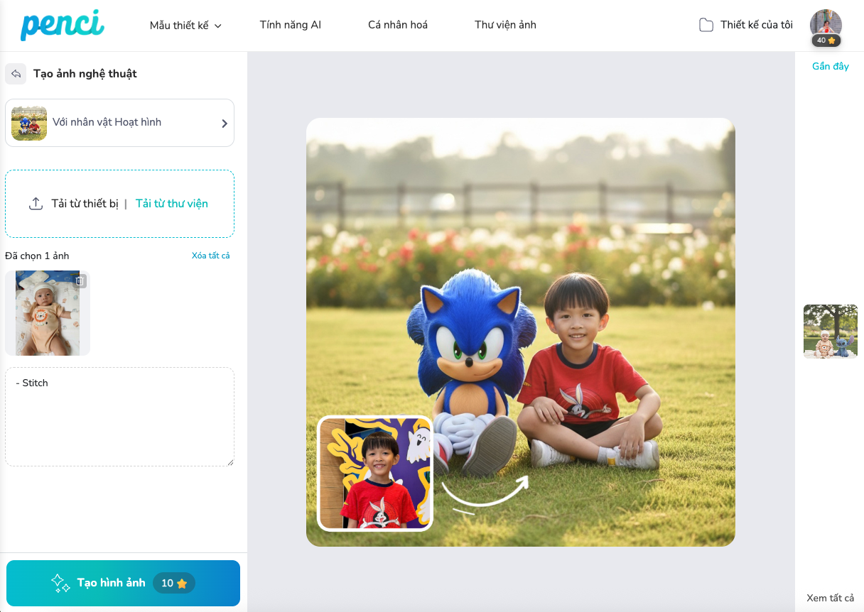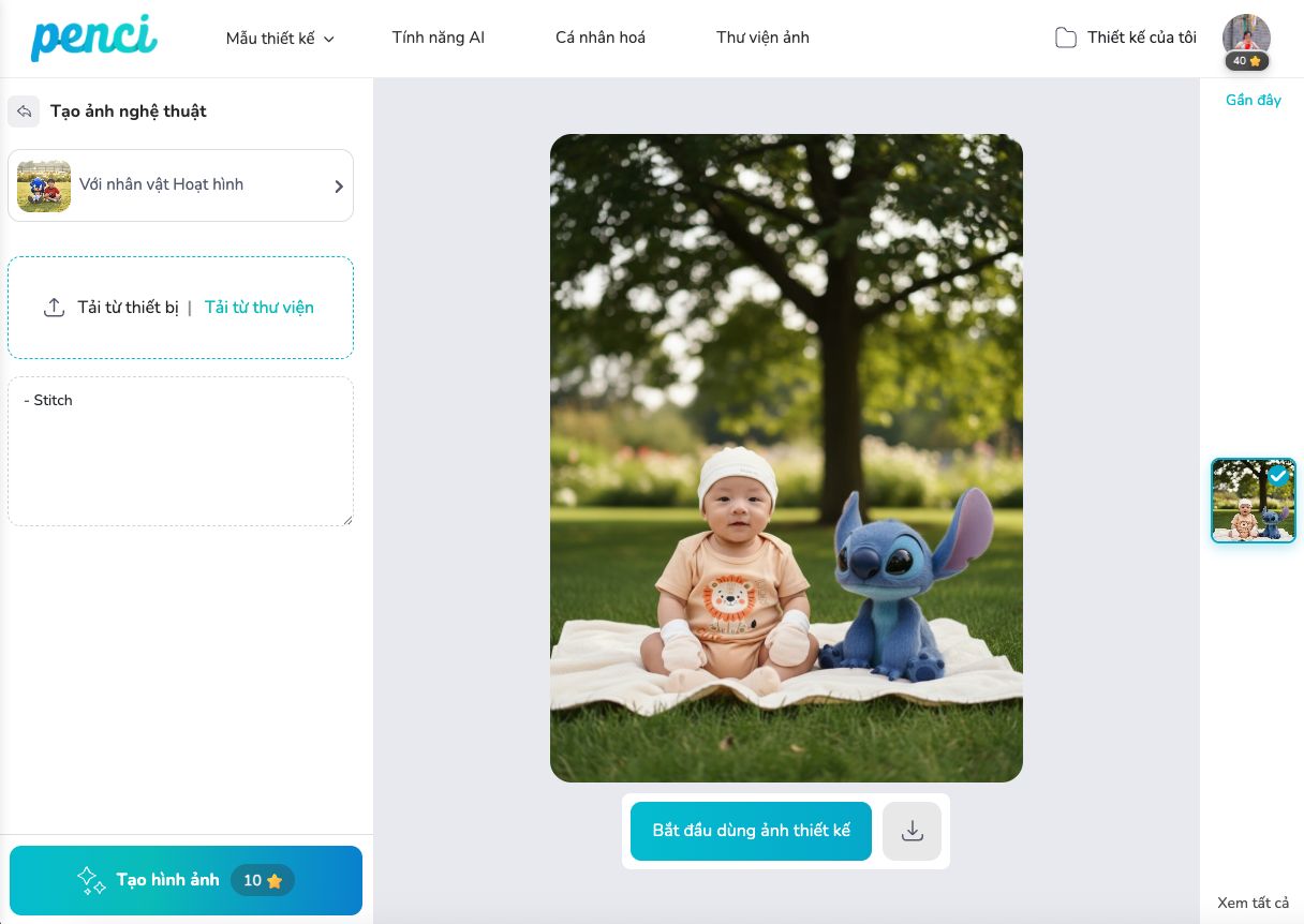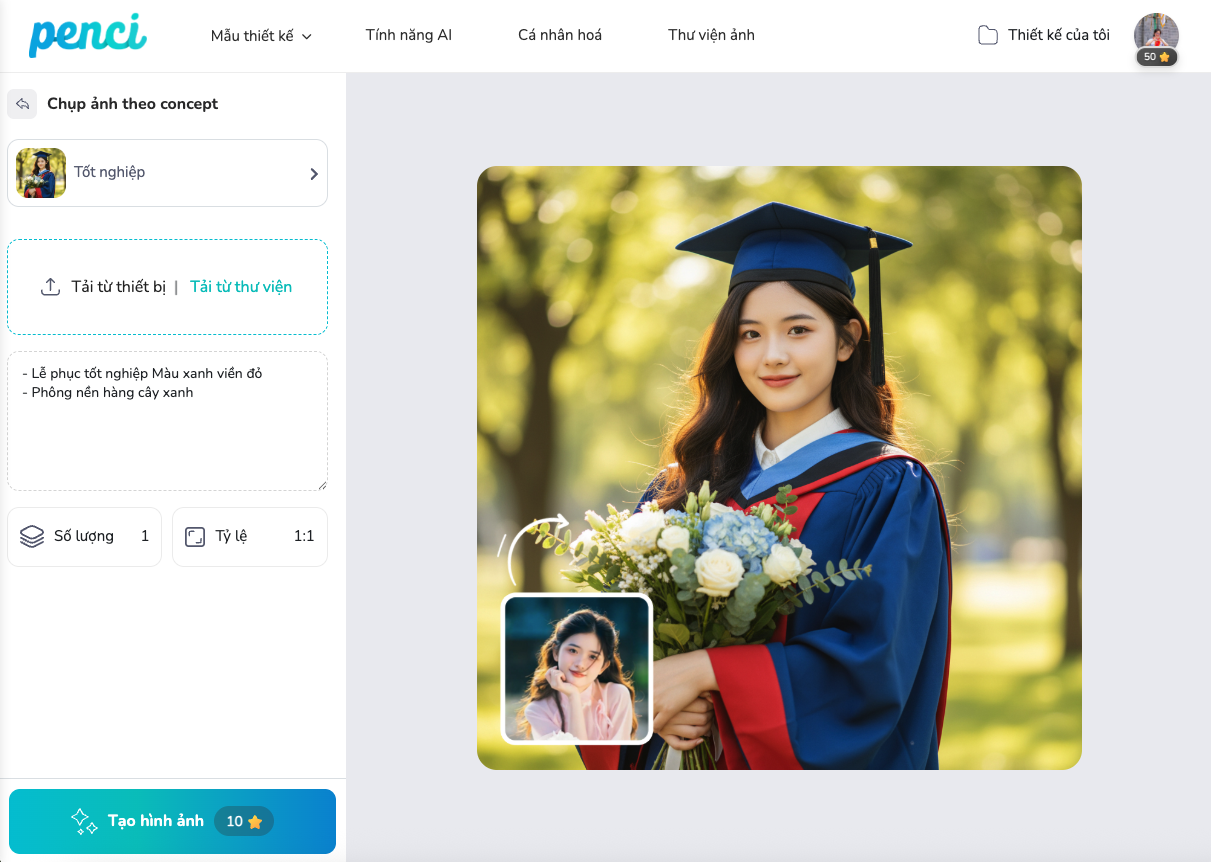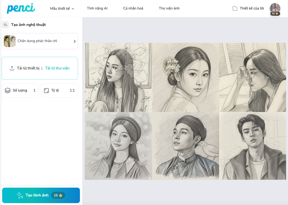 thieke thuvien Phong cách tạo ảnh AI, mô hình 3D xu hướng mà không cần prompt, câu lệnh By admin | 27 tháng 09 năm 2025 356 đã đọc Bạn đã từng nhìn thấy một bức ảnh trending được tạo từ AI và bạn tự hỏi: “Làm sao để tạo ra một tác phẩm tương tự, hoặc thậm chí còn độc đáo hơn?" Với sự phát triển không ngừng của trí tuệ nhân tạo, việc tạo ra những bức ảnh chỉ bằng vài dòng mô tả (prompt) đã trở nên dễ dàng hơn bao giờ hết. Nhưng làm thế nào để bạn có được hình ảnh chất lượng mà không biết cấu trúc prompt, câu lệnh tạo ra chúng? 👉 Bắt đầu: Tạo hình ảnh AI, mô hình 3D xu hướng mà không cần prompt, câu lệnh Nếu bạn đang muốn tạo ra những bức ảnh AI độc đáo, sáng tạo hay hình ảnh anime đẹp mắt nhưng chưa biết bắt đầu từ đâu, thì bài viết này chính là dành cho bạn. Bài viết này tổng hợp các phong cách tạo ảnh AI, mô hình 3D xu hướng, giúp bạn dễ dàng bắt trend chỉ với vài cú click. Tham khảo ngay để áp dụng và khám phá thế giới hình ảnh cực kỳ sống động từ AI nhé. 1. Tổng hợp các phong cách tạo ảnh AI, mô hình 3D xu hướng mà không cần prompt, câu lệnh Tạo ảnh chân dung điện ảnh nền đỏ Bạn chỉ cần tải ảnh chân dung của mình lên vả nhập mô tả trang phục mà bạn muốn. Sau đó hệ thống sẽ tự động áp dụng hiệu ứng nền đỏ đô phong cách điện ảnh, giúp gương mặt nổi bật và chuyên nghiệp. Đợi khoảng 10 giây để nhận kết quả, có thể chỉnh sửa nhiều lần đến khi ưng ý. 👉 Bắt đầu Tạo ảnh chân dung điện ảnh nền đỏ Tạo ảnh trong bảo tàng Bạn chỉ cần tải ảnh lên và nhập mô tả trang phục bạn mong muốn. Công cụ sẽ ghép bạn vào không gian triển lãm, với những bức tranh trên tường chính là chân dung của bạn. Một trải nghiệm thú vị và “ảo” nhưng cực kỳ chân thực. 👉 Bắt đầu Tạo ảnh trong bảo tàng Tạo ảnh Polaroid gặp bản thân lúc nhỏ Để tạo ảnh kỷ niệm độc đáo, bạn chỉ cần tải ảnh hiện tại của mình lên. Công cụ sẽ ghép bạn với phiên bản “chính mình” lúc nhỏ, tạo cảm giác xúc động và thú vị. Nhấn “Tạo ảnh” và kết quả sẽ xuất hiện sau vài giây. 👉 Bắt đầu Tạo ảnh Polaroid gặp bản thân lúc nhỏ Tạo ảnh thẻ (ID Photo) Bạn chỉ cần tải ảnh lên, nhập lại mô tả trang phục, chọn kích thước chuẩn quốc tế hoặc theo nhu cầu. Penci AI sẽ tự động xử lý nền, chỉnh ánh sáng và bố cục đúng quy chuẩn ảnh thẻ. Kết quả sẽ có ngay trong 10 giây. 👉 Bắt đầu Tạo ảnh thẻ (ID Photo) Tạo ảnh Profile nghệ thuật hiệu ứng điện ảnh trắng đen Chỉ cần tải ảnh bạn muốn, hệ thống sẽ biến đổi thành cảnh phim trắng đen, nhân vật đứng trong góc tường với ánh sáng hắt qua cửa sổ. Bạn có thể thử nhiều lần để chọn ra tấm ưng ý nhất. 👉 Bắt đầu Tạo ảnh Profile nghệ thuật hiệu ứng điện ảnh trắng đen Tạo ảnh bản thân ngắm mưa trên xe như phim Hàn Quốc Bạn chỉ cần tải ảnh của mình lên và nhập mô tả trang phục. Công cụ sẽ ghép bạn vào bối cảnh cinematic, ngồi trong xe ngắm mưa như trong phim Hàn. Kết quả được tạo tự động, chỉ mất khoảng 10 giây. 👉 Bắt đầu Tạo ảnh bản thân ngắm mưa trên xe như phim Hàn Quốc Tạo ảnh vẽ tranh chính mình Tải ảnh lên, Penci AI sẽ biến bạn thành họa sĩ, ghép hình ảnh bạn đang vẽ bức tranh màu nước chính chân dung của mình. Một concept sáng tạo và rất nghệ thuật. 👉 Bắt đầu Tạo ảnh vẽ tranh chính mình Tạo ảnh phác thảo chân dung bản thân nét bút chì Tải ảnh chân dung của bạn lên, hệ thống sẽ tự động chuyển đổi thành bản phác thảo chì nghệ thuật, giữ nguyên thần thái và chi tiết. Có thể lặp lại nhiều lần để chọn bản đẹp nhất. 👉 Bắt đầu Tạo ảnh phác thảo chân dung bản thân nét bút chì Tạo ảnh người khổng lồ trong thành phố nhỏ vui nhộn Bạn chỉ cần tải ảnh của mình lên và nhập mô tả thành phố mà bạn muốn “xuất hiện”, công cụ sẽ biến bạn thành nhân vật khổng lồ giữa thành phố tí hon. Hiệu ứng này tạo cảm giác viễn tưởng và ấn tượng thị giác mạnh mẽ. 👉 Bắt đầu Tạo ảnh người khổng lồ trong thành phố nhỏ vui nhộn Ghép ảnh trang phục tốt nghiệp Tải ảnh của bạn lên rồi chọn mẫu áo, mũ tốt nghiệp và mô tả phông nền mà bạn muốn chụp. Penci AI sẽ tự động ghép chỉnh sửa, tạo ảnh kỷ niệm như thật mà không cần thuê máy cơ. 👉 Bắt đầu Ghép ảnh trang phục tốt nghiệp Ghép ảnh bản thân vào concept chụp sinh nhật ở studio Bạn chỉ cần tải ảnh chân dung lên, nhập mô tả bằng tiếng Việt theo gợi ý. Công cụ sẽ ghép bạn vào các concept sinh nhật với bánh, bóng bay, background lung linh. Kết quả trông như chụp tại studio. 👉 Bắt đầu Ghép ảnh bản thân vào concept chụp sinh nhật ở studio 👉 Bắt đầu: Tạo hình ảnh AI, mô hình 3D xu hướng mà không cần prompt, câu lệnh 2. Hướng dẫn tạo ảnh AI, mô hình 3D xu hướng mà không cần prompt, câu lệnh Muốn có một b