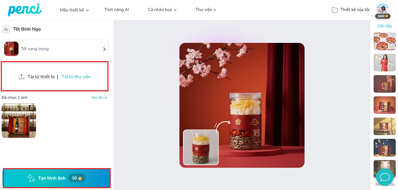 thieke thuvien Tạo phông nền Tết cho sản phẩm bằng AI không cần câu lệnh, có sẵn background Tết 2026 đẹp dùng ngay cho bán hàng By admin | 07 tháng 01 năm 2026 1896 đã đọc Dịp Tết Bính Ngọ 2026, việc sở hữu những bộ ảnh sản phẩm lung linh là yếu tố "sống còn" để bùng nổ doanh số. Tuy nhiên, không phải ai cũng có ngân sách thuê studio hay kỹ năng viết những câu lệnh (prompt) phức tạp. Xu hướng tạo phông nền Tết cho sản phẩm bằng AI không cần câu lệnh đang trở thành "cứu cánh" cho các chủ shop online. Với công nghệ AI tạo ảnh background Tết cho sản phẩm, bạn có thể thay background Tết bằng AI chỉ trong vài giây. >> Tham khảo thêm các mẫu bài post social, bài đăng mạng xã hội đẹp và thu hút 1. Vì sao nên dùng AI để tạo phông nền Tết cho sản phẩm? Thực tế cho thấy không phải ai bán hàng cũng là designer hay photographer chuyên nghiệp. Phần lớn người bán chỉ cần phông nền Tết đẹp, đúng tinh thần lễ hội và có thể dùng ngay cho bán hàng, thay vì mất thời gian dựng bối cảnh, chụp lại hay chỉnh sửa thủ công. Các công cụ AI hiện nay giải quyết đúng nhu cầu đó bằng cách tự động hóa toàn bộ quy trình. Với Penci, người dùng có thể tạo phông nền Tết cho sản phẩm bằng AI không cần câu lệnh, không phải viết prompt phức tạp hay can thiệp kỹ thuật. Tạo phông nền Tết cho sản phẩm bằng AI không cần câu lệnh Penci AI hỗ trợ người bán tối đa với các tính năng thông minh - Tạo background Tết chân thật mà không cần setup bối cảnh chụp- Tự động ghép ảnh sản phẩm vào không gian Tết, đảm bảo bố cục hài hòa- Căn chỉnh ánh sáng và màu sắc để sản phẩm nổi bật nhưng vẫn giữ không khí lễ hội Nhờ đó, người bán có thể dễ dàng sở hữu phông nền Tết truyền thống hoặc phong cách hiện đại, phù hợp với từng loại sản phẩm, mà không cần chỉnh tay hay kỹ năng thiết kế. >> Tham khảo ngay các mẫu decal, tem dán sản phẩm Tết 2026 ấn tượng nhất 2. Tổng hợp các tool AI tạo phông nền Tết tự động không cần câu lệnh của Penci Penci cung cấp các công cụ AI tạo background Tết với hàng nghìn mẫu background Tết 3D cho sản phẩm. Bạn không cần đau đầu suy nghĩ câu lệnh, chỉ cần chọn phong cách mình muốn và AI sẽ tự phân tích hình ảnh sản phẩm, tách nền chính xác và ghép vào background Tết cho sản phẩm đã được thiết kế sẵn. Các tool AI của Penci tập trung giải quyết bài toán tạo phông nền Tết cho sản phẩm bằng AI nhanh, đẹp và dùng được ngay cho bán hàng online trên các nền tảng Shopee, TikTok Shop, website và quảng cáo mạng xã hội. 2.1. Phông nền Tết truyền thống “Sắc đỏ mai vàng” bằng AI cho sản phẩm Concept sử dụng phông nền Tết truyền thống với gam đỏ chủ đạo, kết hợp hoa mai, ấm trà và các chi tiết trang trí quen thuộc ngày Tết. AI tự động ghép sản phẩm vào background Tết cho sản phẩm theo bố cục cân đối, tạo cảm giác ấm cúng và đậm không khí lễ hội. Concept này đặc biệt phù hợp với các sản phẩm mang tính truyền thống như bánh mứt, trà, đặc sản biếu Tết,... giúp tạo phông nền Tết cho sản phẩm bằng AI theo đúng tinh thần Tết cổ truyền, dễ ứng dụng cho ảnh bán hàng online. >> Nhấn vào đây để bắt đầu tạo phông nền Tết đỏ mai vàng cho sản phẩm Phông nền Tết truyền thống sắc đỏ mai vàng cho sản phẩm 2.2. Phông nền Tết 2026 phong cách sang trọng “Tết thanh xuân” “Tết thanh xuân” là concept phông nền Tết 2026 mang phong cách hiện đại, sang trọng, sử dụng gam xanh dương kết hợp họa tiết vân mây truyền thống cách điệu. AI tạo background Tết với bố cục thoáng, giúp sản phẩm nổi bật nhưng vẫn giữ được tinh thần Tết Á Đông. Concept này phù hợp với các sản phẩm giá trị cao như rượu, quà biếu doanh nghiệp,... cần hình ảnh chỉnh chu để bán hàng. >> Nhấn vào đây để bắt đầu tạo phông nền Tết sang trọng cho sản phẩm AI tạo phông nền Tết xanh dương sang trọng cho ảnh sản phẩm 2.3. Phông nền concept “Tết nhà mình” tạo background Tết ấm áp cho sản phẩm Concept “Tết nhà mình” mang tone vàng ấm, tái hiện không gian gia đình gần gũi ngày Tết. AI tự động ghép nền Tết với các chi tiết quen thuộc như bàn trà, gian bếp, tạo cảm giác thân thuộc và đời thường. Concept này rất phù hợp với các sản phẩm thủ công, đặc sản nhà làm hoặc quà Tết mang tính cảm xúc, gần gũi với người mua. >> Nhấn vào đây để bắt đầu tạo phông nền Tết ấm áp cho sản phẩm Phông nền Tết ấm áp, đơn giản cho sản phẩm bán hàng 2.4. Phông nền concept “Xuân phú quý” tạo ảnh sản phẩm Tết cùng model “Xuân phú quý” là concept AI tạo phông nền Tết kết hợp sản phẩm cùng model, giúp hình ảnh trông chân thật như chụp studio. AI tự động xử lý ánh sáng, tỉ lệ và bối cảnh để sản phẩm hòa hợp với nhân vật. >> Nhấn vào đây để bắt đầu tạo phông nền Tết cùng người mẫu cho sản phẩm AI chụp ảnh sản phẩm Tết cùng người mẫu không cần studio 2.5. Phông 