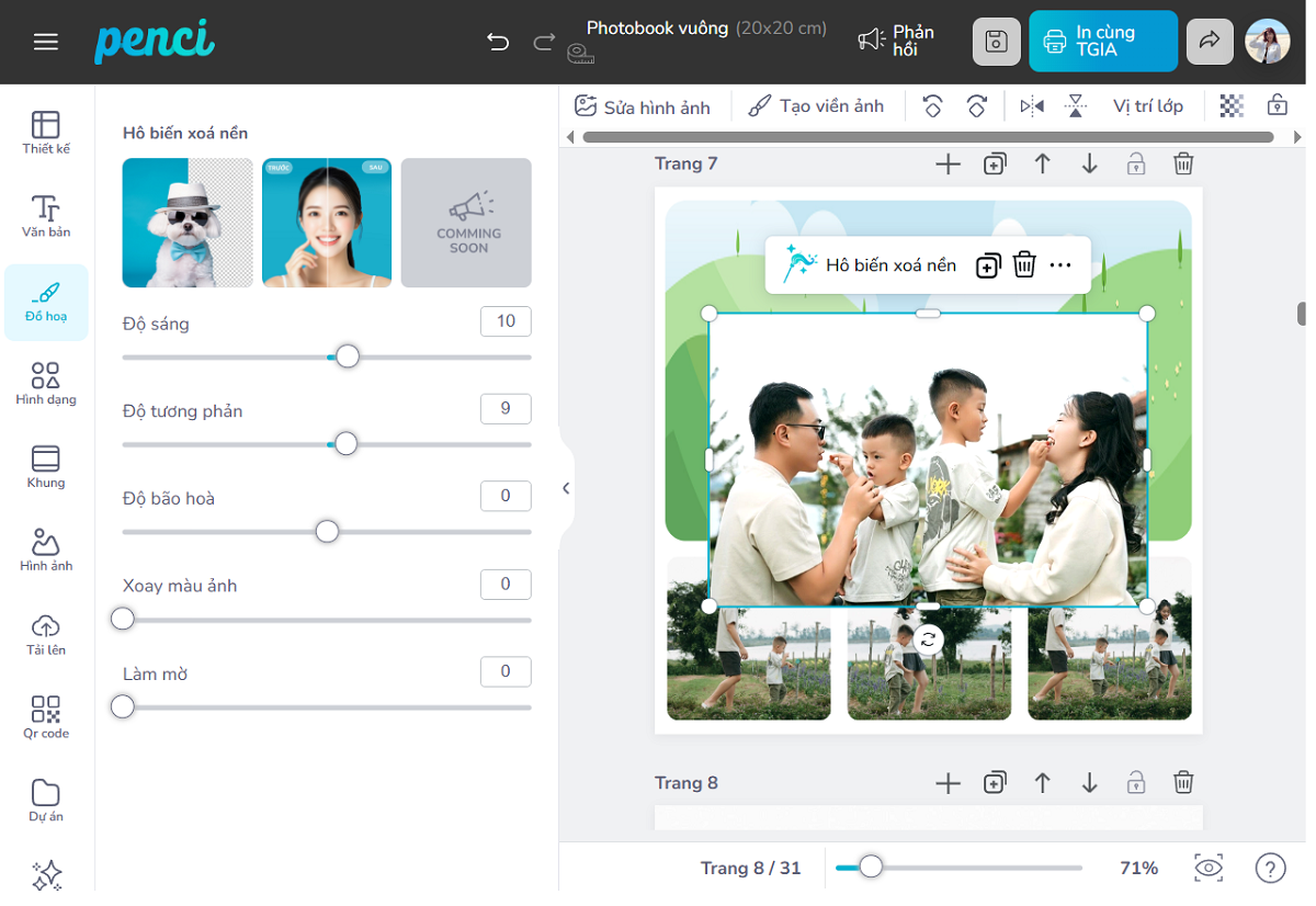 thieke thuvien Thiết kế photobook gia đình món quà tặng ba mẹ ý nghĩa, lưu giữ kỷ niệm trọn vẹn By admin | 24 tháng 09 năm 2025 81 đã đọc Đối với ba mẹ, còn gì quý giá hơn khi được nhìn lại cả chặng đường yêu thương bên con cháu? Một cuốn photobook gia đình chính là cách bạn gửi gắm lời tri ân sâu sắc và lưu giữ cảm xúc nguyên vẹn cho mai sau. 1. Vì sao photobook gia đình trở thành món quà tặng gia đình vô giá được yêu thích? Có những món quà có thể mua được bằng tiền, nhưng có những món quà chỉ có thể tạo nên bằng tình yêu và sự trân trọng. Photobook gia đình chính là một món quà vô giá để tặng ba mẹ trong những dịp đặc biệt như ngày kỷ niệm cưới, gửi tặng mẹ 20/10 hay dành cho ba dịp sinh nhật,... bởi nó lưu giữ cả hành trình yêu thương mà ba mẹ đã vun đắp cho gia đình. Thay vì món quà vật chất dễ phai nhạt, một cuốn photobook kỷ niệm có thể gắn bó cả đời, để ba mẹ hay ông bà nhìn lại hành trình cùng con cháu. Tự thiết kế photobook gia đình trở thành món quà tặng mẹ vô giá mang giá trị bền lâu vì: Lưu giữ kỷ niệm trọn vẹn qua từng trang sách. Quà tặng gia đình ý nghĩa cho mọi dịp đặc biệt. Thay lời tri ân gửi đến cha mẹ, ông bà. Đa dạng mẫu photobook gia đình đẹp, dễ dàng tạo photobook gia đình theo phong cách riêng. Giá trị tinh thần bền lâu, lưu giữ cảm xúc mãi với thời gian. >> Bắt đầu tự thiết kế photobook gia đình ngay tại đây! 2. Hướng dẫn cách tạo photobook gia đình đơn giản và miễn phí với Penci Nhiều người thường nghĩ rằng tạo photobook gia đình rất phức tạp, cần nhiều kỹ năng thiết kế. Nhưng thực ra, với Penci, bạn hoàn toàn có thể tự làm một album ảnh photobook gia đình đẹp chỉ trong vài phút và hoàn toàn miễn phí chỉ với 4 bước đơn giản sau: Bước 1: Truy cập nền tảng Penci Mở trình duyệt và truy cập vào Penci – Thiết kế photobook online miễn phí. Bước 2: Chọn mẫu photobook gia đình đẹp mà bạn yêu thích Click “Thiết kế ngay” để khám phá thư viện mẫu photobook gia đình đẹp và đa dạng được Penci luôn cập nhật theo xu hướng. Tất cả đều tinh tế, chuyên nghiệp, lại dễ dàng tùy chỉnh theo phong cách riêng. Bước 3: Cá nhân hóa theo dấu ấn riêng Tự do sáng tạo bằng cách tải ảnh, thêm chữ, chèn sticker, thay đổi bố cục, màu sắc, font chữ… Nhờ đó, mỗi album photobook kỷ niệm gia đình bạn làm ra đều trở thành phiên bản độc bản, phản ánh câu chuyện của chính gia đình mình. Bước 4: Đặt in photobook gia đình chất lượng cao Chỉ cần nhấn “In cùng TGIA” và hoàn tất thông tin nhận hàng, Penci sẽ in photobook gia đình với chất lượng cao. Sau vài ngày, bạn đã có ngay một cuốn photobook ý nghĩa để lưu giữ hoặc dành tặng như một quà tặng ba mẹ đặc biệt. >> Xem thêm video hướng dẫn chi tiết cách tự thiết kế photobook online đơn giản tại đây! 3. Top những lý do bạn nên chọn Penci để thiết kế và in photobook gia đình? Photobook gia đình không đơn thuần là một cuốn album ảnh, mà là nơi cất giữ hành trình yêu thương, kỷ niệm của nhiều thế hệ. Vì vậy, việc lựa chọn nơi thiết kế và in ấn rất quan trọng. Và bạn có thể hoàn toàn yên tâm với Penci vì: Dễ dàng thiết kế và cá nhân hóa 100%: Giao diện Penci thân thiện, ai cũng có thể tự tạo photobook trong vài phút. Không cần phần mềm phức tạp, chỉ cần kéo thả và tùy chỉnh là đã có cuốn album như ý. Kho mẫu photobook phong phú, phù hợp văn hóa gia đình Việt: Từ các mẫu thiết kế hiện đại, tinh tế hay hoài niệm thì Penci đều có mẫu thiết kế sẵn. Bạn chỉ cần chọn mẫu phù hợp, sau đó cá nhân hóa theo cách riêng của mình. Hình ảnh sắc nét, màu sắc sống động: Penci sử dụng công nghệ in ấn tiên tiến, đảm bảo từng bức ảnh được tái hiện chân thực, rõ nét đến từng chi tiết. Giấy in cao cấp và bền đẹp theo thời gian: Photobook gia đình tại Penci được in trên loại giấy dày, chống nhòe mực, khó phai màu và chịu được tác động của thời gian. Sau nhiều năm lật giở, cuốn album vẫn giữ nguyên vẹn độ sáng, không ố vàng hay bạc màu. Với Penci, cuốn photobook gia đình không chỉ đẹp ở hình thức mà còn bền vững ở giá trị. Để mỗi lần ba mẹ, ông bà hay chính bạnm ở cuốn sách ra đó không chỉ là những bức ảnh, mà là hành trình ký ức sống lại nguyên vẹn. >> Tham khảo thêm các mẫu photobook gia đình miễn phí trên Penci! Photobook - Món quà vô giá gửi tặng ba mẹ In photobook gia đình chính là cách tuyệt vời để lưu giữ kỷ niệm theo năm tháng. Mỗi bức ảnh là một mảnh ghép nhỏ và cả album ảnh photobook gia đình lại trở thành hành trình đầy đủ của tình yêu thương. Đây chính là món quà vô giá, không phai theo thời gian, vừa gần gũi vừa thiêng liêng, như lời tri ân sâu sắc gửi đến ba mẹ. >> Hãy thiết kế photobook gia đình tại Penci ngay hôm nay, để món quà yêu thương kịp đến tay và mang lại niềm hạnh phúc trọn vẹn cho gia đình bạn. Penci - Thiết kế dễ dàng, đậ