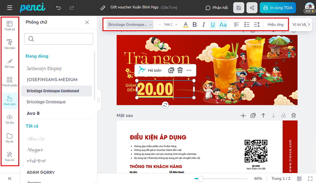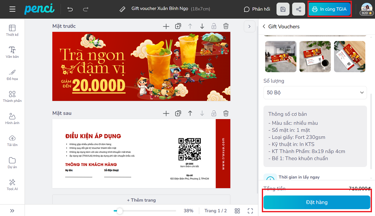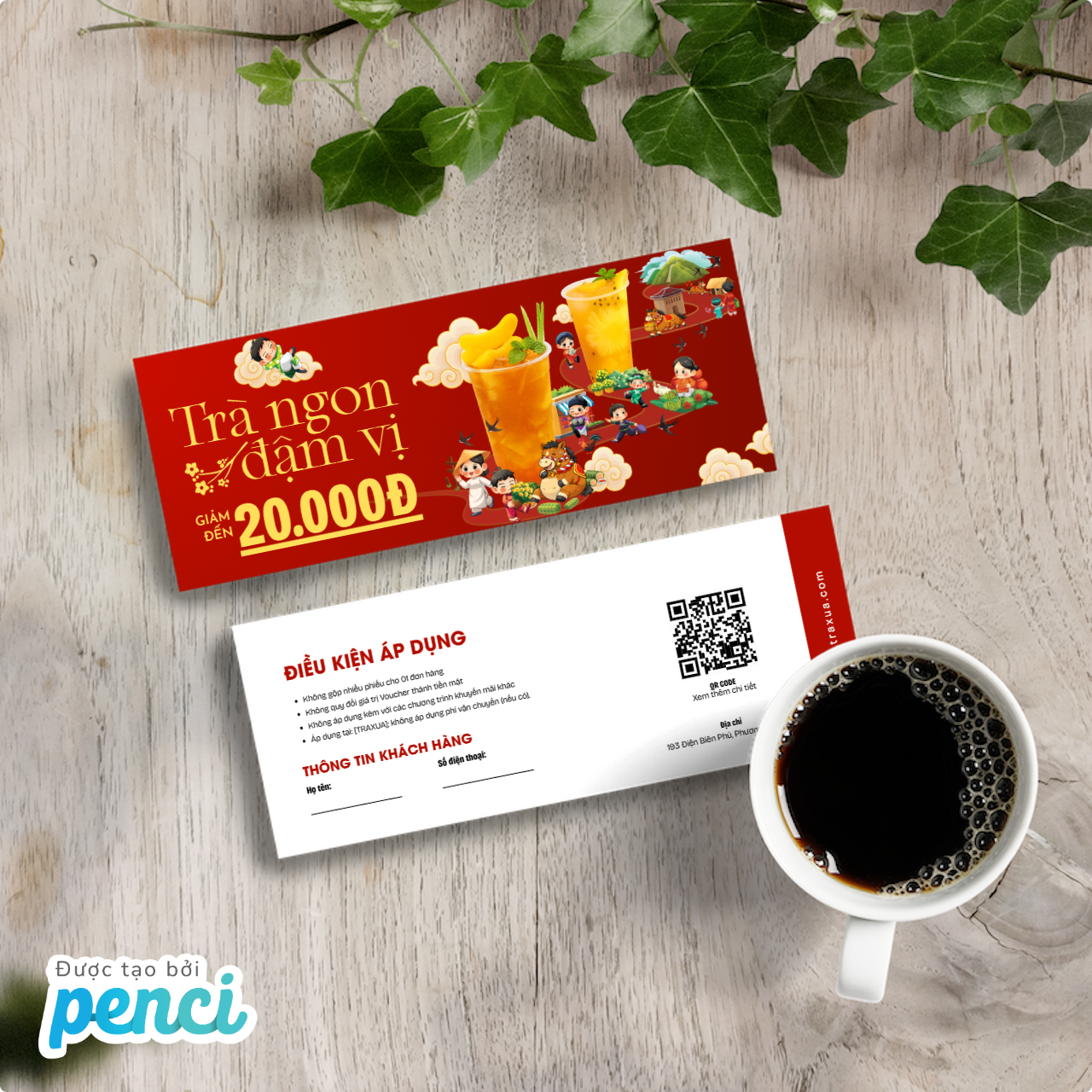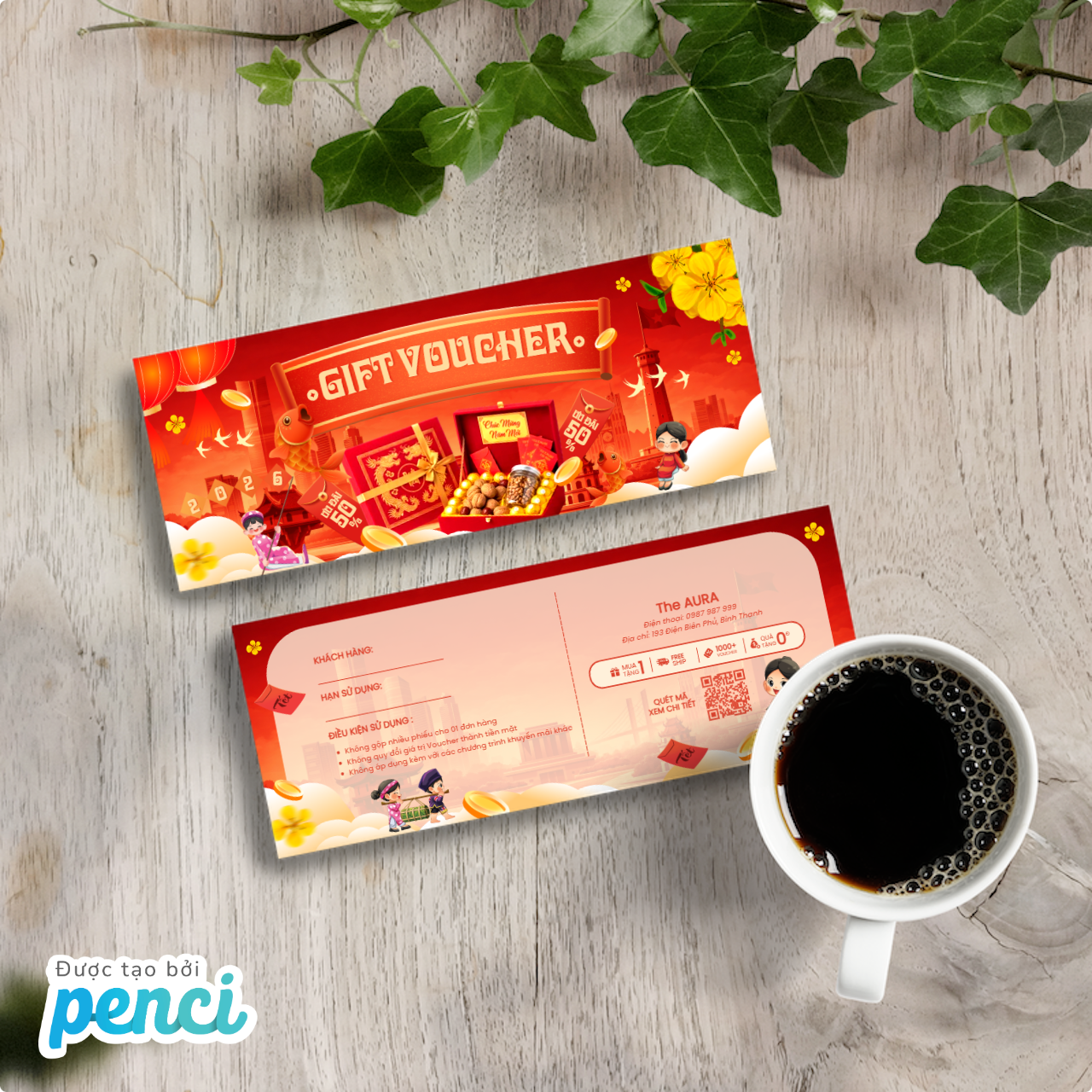thieke thuvien Tổng hợp 29+ mẫu Voucher giảm giá, Phiếu quà tặng Tết 2026 đẹp, ấn tượng cho mọi ngành hàng, tải xuống miễn phí By admin | 08 tháng 01 năm 2026 32 đã đọc Nếu bạn đang tìm mẫu voucher giảm giá Tết 2026 để triển khai chương trình khuyến mãi Tết hiệu quả? Tham khảo ngay bộ phiếu quà tặng Tết, gift voucher cho năm mới ngay trong bài viết này. Các mẫu voucher Tết được thiết kế sẵn miễn phí, phù hợp cho mọi lĩnh vực như siêu thị, nhà hàng, quán cafe, quán ăn, spa, khách sạn, du lịch, shop quần áo cũng như các voucher doanh nghiệp cho dịp Tết. Bạn có thể thiết kế voucher Tết online, tùy chỉnh cá nhân hóa nội dung dễ dàng, chỉnh sửa trực tiếp theo nhu cầu và đặt in voucher Tết theo yêu cầu với số lượng nhiều hoặc ít tùy nhu cầu. Hãy cùng Penci tham khảo ngay mẫu voucher Tết bên dưới! >> Tham khảo thêm các mẫu nhãn dán decal, tem dán sản phẩm cho dịp Tết Bính Ngọ 2026 1. Vì sao doanh nghiệp nên dùng voucher giảm giá Tết 2026 cho chương trình khuyến mãi? Trong chương trình khuyến mãi Tết Bính Ngọ, người tiêu dùng thường có xu hướng chi tiêu mạnh tay hơn, đặc biệt cho các nhu cầu ăn uống, làm đẹp và mua sắm dịp Tết. Thay vì áp dụng hình thức giảm giá trực tiếp, nhiều doanh nghiệp hiện nay ưu tiên sử dụng voucher quà Tết, voucher giảm giá Tết hoặc phiếu quà tặng Tết như một giải pháp khuyến mãi thông minh và linh hoạt hơn. Việc triển khai voucher giảm giá Tết 2026 mang lại nhiều lợi ích như: - Kích thích khách hàng quay lại mua sắm nhiều lần, từ đó gia tăng tần suất sử dụng dịch vụ hoặc sản phẩm- Tạo động lực gia tăng giá trị đơn hàng trung bình, khi khách hàng có xu hướng mua thêm để tận dụng voucher- Dễ dàng kiểm soát chi phí khuyến mãi, phù hợp cho cả cửa hàng nhỏ lẫn voucher doanh nghiệp Tết Voucher giảm giá thường được sử dụng rộng rãi trong các chương trình khuyến mãi Tết >> Xem thêm các mẫu standee Tết 2026 ấn tượng và thu hút khách từ cái nhìn đầu tiên Không chỉ dừng lại ở giá trị ưu đãi, các thẻ quà tặng Tết hay voucher lì lì Tết cho khách hàng còn mang ý nghĩa tri ân khách hàng dịp Tết, góp phần xây dựng mối quan hệ lâu dài với khách hàng và các đối tác lâu năm. Đây cũng là lý do vì sao mẫu gift voucher, mẫu phiếu quà tặng hay các mẫu voucher giảm giá Tết 2026 ngày càng được nhiều doanh nghiệp lựa chọn trong mùa Tết năm nay. 2. Tổng hợp các mẫu Voucher giảm giá, Phiếu quà tặng Tết 2026 đẹp nhất cho mọi ngành hàng Dưới đây là bộ mẫu voucher giảm giá Tết 2026, phiếu quà tặng Tết và gift voucher Tết được thiết kế sẵn, phù hợp cho nhiều ngành hàng khác nhau như cửa hàng bán lẻ, quán ăn, quán cà phê, spa, dịch vụ làm đẹp và voucher doanh nghiệp Tết. Các mẫu voucher Tết thiết kế sẵn có thể chỉnh sửa online, cá nhân hóa nội dung nhanh chóng và sử dụng ngay cho chương trình khuyến mãi Tết Bính Ngọ, giúp doanh nghiệp tiết kiệm thời gian mà vẫn đảm bảo tính chuyên nghiệp. Mẫu voucher giảm giá Tết 2026 cho chương trình khuyến mãi Tết Gift voucher Tết sang trọng cho nhà hàng, quán ăn Voucher giảm giá Tết cho shop thời trang cho hoạt động khuyến mãi Tết Bính Ngọ Phiếu quà tặng Tết doanh nghiệp dùng tri ân khách hàng Voucher lì lì Tết cho khách hàng với thiết kế đẹp, ấn tượng Mẫu gift voucher Tết 2026 cho spa và dịch vụ làm đẹp thu hút Thiết kế Phiếu giảm giá Tết 2026 đẹp, đơn giản Mẫu Voucher Tết giảm giá theo phần trăm cho cửa hàng Gift voucher Tết sang trọng, nổi bật cho dịp Tết Bính Ngọ 2026 >> Xem ngay toàn bộ mẫu Gift Voucher Tết 2026 đặc sắc và độc quyền của Penci 3. Hướng dẫn thiết kế & in Voucher giảm giá Tết 2026 nhanh gọn chỉ với Penci Để triển khai các chương trình khuyến mãi với voucher giảm giá Tết 2026, phiếu quà tặng hay gift voucher Tết, bạn không cần kỹ năng thiết kế chuyên nghiệp hay phải làm việc với nhiều bên khác nhau. Với Penci, toàn bộ quy trình từ chọn mẫu > thiết kế > in ấn đều được thực hiện trên cùng một nền tảng, giúp tiết kiệm thời gian và đảm bảo tính đồng bộ cho voucher doanh nghiệp Tết và voucher Tết cho cửa hàng. Bước 1: Truy cập penci.vn và chọn mẫu Gift Voucher Tết phù hợp Truy cập nền tảng penci.vn, chọn danh mục Gift Voucher Tại đây, bạn có thể dễ dàng tìm thấy mẫu gift voucher Tết 2026, mẫu voucher giảm giá và phiếu quà tặng Tết Bính Ngọ đẹp được thiết kế sẵn phù hợp với từng ngành hàng như cửa hàng bán lẻ, quán ăn, quán cà phê, spa, dịch vụ làm đẹp hay doanh nghiệp. Các mẫu Gift Voucher Tết 2026 sinh động phù hợp cho mọi ngành hàng Bước 2: Thiết kế và cá nhân hóa thông tin cửa hàng, doanh nghiệp Sau khi chọn mẫu, bạn có thể thiết kế voucher Tết online, chỉnh sửa trực tiếp các nội dung quan trọng như: - Tên cửa hàng hoặc doanh nghiệp- Logo, màu sắc thương hiệu- Giá trị voucher, điều kiện sử dụng- Thông điệp và lời chúc Tết Quá trình cá nhân hóa, chỉnh sửa mẫu thiết kế voucher online được tối 