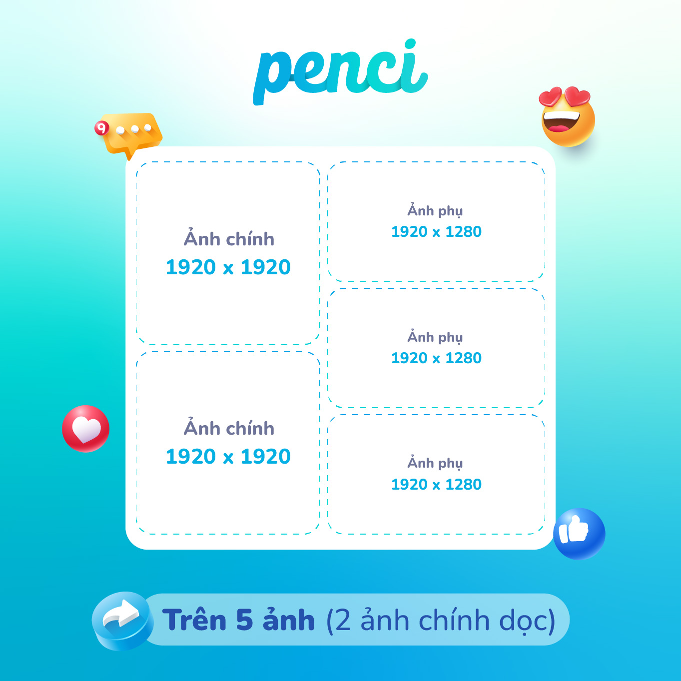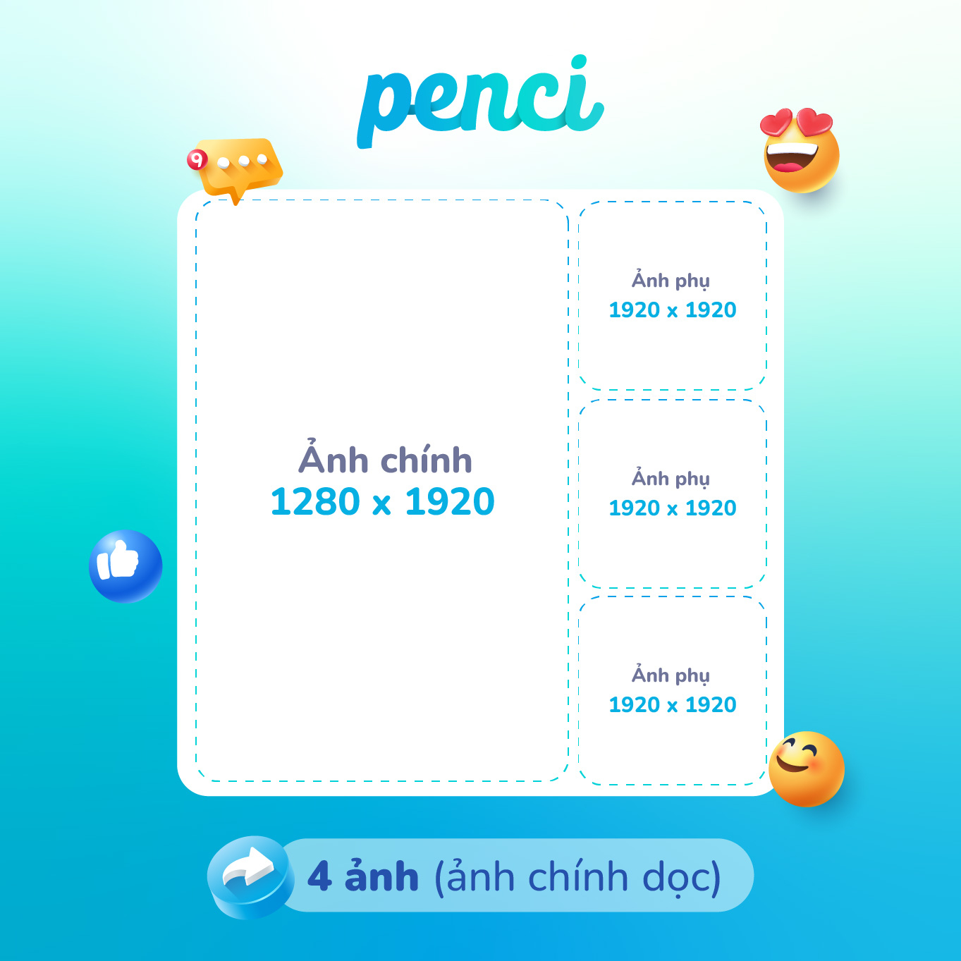 thieke thuvien Tổng hợp kích thước ảnh chuẩn đăng Facebook chuẩn mới nhất 2026 By admin | 10 tháng 07 năm 2025 773 đã đọc Trong kỷ nguyên số hóa, hình ảnh vừa mang tính thẩm mỹ vừa là yếu tố chiến lược để gây ấn tượng với người xem, khách hàng mục tiêu, đối tác,... Là một trong những nền tảng được dùng nhiều nhất, kích thước ảnh đăng Facebook cần tuân thủ đúng để đảm bảo hình ảnh không bị vỡ, mờ, mất nét và làm giảm hiệu quả truyền tải thông điệp. 1. Tại sao cần sử dụng đúng kích thước ảnh trên Facebook? Hình ảnh là yếu tố quan trọng trong việc thu hút sự chú ý và truyền tải thông điệp trên Facebook. Tuy nhiên, nếu không sử dụng đúng kích thước chuẩn, ảnh có thể bị cắt xén, méo mó hoặc giảm chất lượng, ảnh hưởng trực tiếp đến hiệu quả truyền thông. Lợi ích của việc dùng kích thước ảnh chuẩn: Hiển thị chính xác trên mọi thiết bị và định dạng (bảng tin, ảnh bìa, quảng cáo) Giữ chất lượng hình ảnh sắc nét, tránh bị nén mờ Tăng tính chuyên nghiệp, nâng cao hình ảnh cá nhân hoặc thương hiệu Truyền tải thông điệp hiệu quả, tránh hiểu sai nội dung Tối ưu quảng cáo, cải thiện tỷ lệ tương tác và hiệu suất chiến dịch Chọn đúng kích thước ảnh không chỉ đảm bảo yếu tố thẩm mỹ mà còn góp phần nâng cao hiệu quả tiếp cận và truyền thông trên nền tảng Facebook. Tại Penci có sẵn danh mục các mẫu thiết kế ảnh đăng Facebook chuẩn kích thước. Kho thư viện mẫu thiết kế ảnh đăng Facebook đa dạng của Penci 2. Kho thư viện mẫu bài đăng Facebook tại Penci có đầy đủ định dạng Tại Penci, chúng tôi xây dựng một kho thư viện mẫu thiết kế ảnh đăng Facebook được thiết kế chuẩn kích thước cho từng dạng hiển thị phổ biến, bao gồm: - Bài đăng vuông phù hợp cho nội dung hình ảnh thông thường - Bài đăng ngang tối ưu cho quảng cáo và đường dẫn - Tin Facebook (Story) tỷ lệ dọc chuẩn 9:16 - Ảnh bìa fanpage, ảnh bìa sự kiện đảm bảo hiển thị đẹp trên cả máy tính và điện thoại - …. Xem thêm Mỗi nhóm định dạng đều được phân chia thành các danh mục chủ đề rõ ràng như: Ẩm thực, Đồ uống, Du lịch, Làm đẹp, Thời trang, Tuyển dụng, Khai trương, Khuyến mãi,... giúp người dùng dễ dàng tìm được mẫu phù hợp với mục đích sử dụng. Tất cả mẫu thiết kế tại Penci đều: - Đa dạng phong cách: từ hiện đại, năng động đến tối giản, sang trọng - Dễ dàng chỉnh sửa: chỉ cần kéo thả, thay nội dung trong vài phút - Tải về miễn phí: chỉ cần đăng ký tài khoản là sử dụng miễn phí trọn đời Với kho thư viện này, bạn có thể nhanh chóng tạo ra những bài đăng ấn tượng, chuyên nghiệp và đúng chuẩn Facebook, ngay cả khi không biết thiết kế. 3. Tổng hợp kích thước ảnh đăng Facebook chuẩn 2026 Để hình ảnh trên Facebook hiển thị đúng ý và gây ấn tượng mạnh mẽ, bạn cần nắm rõ kích thước chuẩn cho từng loại nội dung. Từ ảnh đại diện, ảnh bìa đến các bài đăng và quảng cáo, mỗi loại đều có quy định riêng. 3.1 Kích thước ảnh đại diện Facebook Ảnh đại diện (avatar) là yếu tố đầu tiên thu hút sự chú ý khi người khác truy cập vào hồ sơ cá nhân hoặc fanpage. Đây không chỉ là hình ảnh cá nhân hóa mà còn là bộ mặt đại diện cho thương hiệu, doanh nghiệp. Vì vậy, việc chọn đúng kích thước ảnh đại diện là vô cùng quan trọng. - Kích thước ảnh đại diện chuẩn trên Facebook là 1024 x 1024 pixel - Kích thước ảnh đại diện tối đa: 2048 x 2048 pixel - Tỷ lệ chuẩn là 1:1 Kích thước Avatar Facebook 3.2 Kích thước ảnh bìa Facebook Ảnh bìa (cover photo) là một trong những phần lớn nhất và nổi bật nhất trên hồ sơ cá nhân, fanpage hoặc nhóm Facebook. Đây là nơi bạn có thể thể hiện phong cách cá nhân hoặc chiến lược thương hiệu một cách rõ nét. Tuy nhiên, nếu không chọn đúng kích thước, ảnh có thể bị mờ hoặc cắt xén không mong muốn. Thiết kế ảnh bìa đúng kích thước sẽ giúp tối ưu hóa trải nghiệm người dùng và đảm bảo hình ảnh của bạn luôn đẹp và chuyên nghiệp trên Facebook. - Kích thước ảnh bìa Facebook trên mọi thiết bị: 1958 x 745 pixel - Tỷ lệ khung hình: 16:9 Kích thước ảnh bìa chuẩn 3.3 Kích thước đăng khi có text và hình ảnh Text và 1 hình ảnh Dạng bài đăng này sẽ có một khung text ở phía trên và một hình ảnh đính kèm ở dưới để thể hiện thông tin liên quan - Kích thước ảnh khi đăng kèm text là: 1440 x 1440 px - Tỷ lệ ảnh dạng vuông Kích thước ảnh vuông đăng kèm text Text và nhiều hình ảnh Dạng bài đăng này sẽ có một khung text ở phía trên và nhiều hình ảnh đính kèm ở dưới để thể hiện thông tin liên quan - Kích thước ảnh khi đăng kèm text là: 1440 x 1440 px - Tỷ lệ ảnh dạng vuông Kích thước nhiều ảnh vuông đăng kèm text 3.4 Kích thước đăng ảnh Banner Facebook Baner Facebook là dạng bài đăng gồm content và chỉ có 1 hình ảnh duy nhất. Hình ảnh này sẽ chiếm toàn bộ chiều rộng của nguồn cấp 