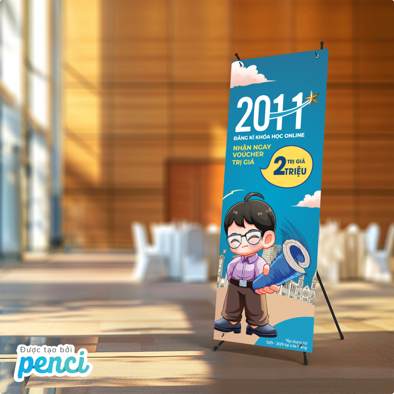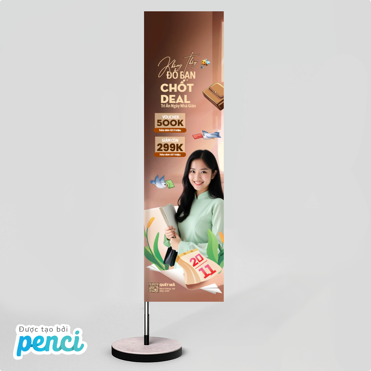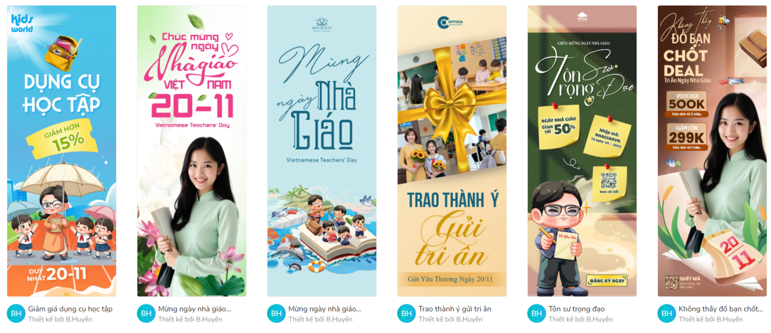 thieke thuvien Tổng hợp Mẫu Standee 20/11, Mẫu Cờ Phướn Chào Mừng Ngày Nhà giáo Việt Nam Đẹp, Ấn tượng, Thu Hút Và Miễn Phí Thiết Kế By admin | 13 tháng 11 năm 2025 407 đã đọc Standee Chào mừng Ngày Nhà giáo Việt Nam hay các Mẫu Cờ Phướn 20/11 là những ấn phẩm truyền thông trực quan không thể thiếu giúp sự kiện 20/11 tri ân thầy cô thêm phần ấn tượng và thu hút. Một Mẫu Standee Ngày Nhà giáo Việt Nam được thiết kế chuyên nghiệp không chỉ làm nổi bật thông điệp mà còn là điểm nhấn thu hút sự chú ý. >> Tham khảo các mẫu poster 20/11 đẹp, độc quyền của Penci Hiểu được nhu cầu đó, Penci mang đến bộ sưu tập độc quyền các Mẫu Standee Ngày Nhà giáo Việt Nam và Cờ Phướn 20/11 hoàn toàn miễn phí cho phép bạn dễ dàng chỉnh sửa, in ấn standee 20/11 trực tiếp tại Penci chỉ với vài thao tác đơn giản. >> BẮT ĐẦU THIẾT KẾ Standee 20/11 tri ân ngày Nhà giáo Việt Nam ngay tại đây >> BẮT ĐẦU THIẾT KẾ Cờ phướn 20/11 chào mừng ngày Nhà giáo Việt Nam ngay tại đây 1. Tổng hợp các mẫu Standee 20/11 chào mừng ngày Nhà giáo Việt Nam, Mẫu Standee 20/11 khuyến mãi, quảng bá thương hiệu, phục vụ bán hàng Các Mẫu Standee Chào mừng Ngày Nhà giáo Việt Nam hay các Mẫu Standee 20/11 quảng bá thương hiệu tại Penci đều được tối ưu để phù hợp với mọi không gian sự kiện, từ sảnh trường học đến khu vực ngoài trời. Dưới đây là những bộ sưu tập standee 20/11 nổi bật mà bạn có thể tùy chỉnh trực tuyến tại Penci >> Xem ngay các mẫu thiệp chúc mừng ngày nhà giáo Việt Nam hay và ý nghĩa Thiết kế ngay Standee 20/11 quảng bá thương hiệu thu hút khách hàng và nhấn mạnh khuyến mãi Thiết kế ngay mẫu Standee mang thông điệp tri ân này Tải xuống Mẫu Standee 20/11 chào mừng ngày Nhà giáo Việt Nam thiết kế trang trọng, tinh tế Mẫu Standee 20/11 hiện đại, tinh tế phù hợp cho mọi không gian sự kiện Mẫu Standee chúc mừng ngày Nhà giáo Việt Nam 20/11 với bố cục chuẩn in ấn >> Xem ngay trọn bộ THƯ VIỆN MẪU Standee 20/11 chào mừng ngày nhà giáo Việt Nam đẹp 2. Mẫu Cờ phướn 20/11 đẹp, ấn tượng chào mừng ngày Nhà giáo Việt Nam Cờ Phướn 20/11 là giải pháp trang trí ngoài trời hiệu quả và tiết kiệm chi phí nhất, giúp lan tỏa không khí tri ân đến toàn bộ khu vực trường học, cơ quan hay cửa hàng. Việc sở hữu một Mẫu Cờ Phướn Chào Mừng Ngày Nhà giáo Việt Nam được thiết kế chuẩn mực là yếu tố then chốt giúp thu hút sự chú ý. Dưới đây là các Mẫu Cờ Phướn 20/11 được Penci thiết kế với các hình dáng cờ phướn cánh buồm, cờ phướn hình chữ nhật hay cờ phướn giọt nước tối ưu cho việc truyền tải thông điệp và quảng bá thương hiệu. >> Tham khảo các mẫu banner khuyến mãi dành cho các cửa hàng đẹp, chuyên nghiệp Tùy chỉnh Mẫu Cờ phướn 20/11 khuyến mãi nổi bật thông điệp tri ân thầy cô và chương trình ưu đãi dịp 20/11. Tải xuống mẫu cờ phướn quảng bá thương hiệu ngày Nhà giáo Việt Nam Thiết kế ngay Cờ phướn 20/11 quảng bá thương hiệu thu hút khách hàng và nhấn mạnh khuyến mãi Sử dụng Mẫu Cờ phướn 20/11 truyền tải thông điệp tri ân thầy cô và chương trình ưu đãi ấn tượng. >> Xem trọn bộ THƯ VIỆN MẪU cờ phướn 20/11 chào mừng ngày Nhà giáo Việt Nam đặc sắc và ấn tượng 3. Hướng dẫn thiết kế Standee 20/11, Cờ phướng chào mừng ngày Nhà giáo Việt Nam miễn phí, đơn giản, chuyên nghiệp cùng Penci Penci là nền tảng thiết kế online giúp bạn dễ dàng tự tay thiết kế Standee 20/11 hay cờ phướn chào mừng ngày Nhà giáo Việt Nam nhanh chóng, đẹp mắt mà không cần kỹ năng thiết kế chuyên nghiệp. Penci cung cấp kho mẫu Standee, cờ phướn 20/11 có sẵn được thiết kế độc quyền cho các sự kiện tri ân ngày 20/11 giúp các trường học, doanh nghiệp và cửa hàng chuẩn bị không gian tri ân thầy cô thật ấn tượng. Bạn có thể tự thiết kế standee 20/11 mới hoặc tùy chỉnh các mẫu standee, cờ phướn có sẵn, được thiết kế riêng bởi Penci, chỉ trong 4 bước đơn giản sau: Bước 1: Truy cập penci.vn và chọn danh mục “Standee” hoặc “Cờ phướn” Bước 2: Chọn mẫu thiết kế standee, cờ phướn có sẵn Hàng trăm Mẫu Standee Ngày Nhà giáo Việt Nam và các bộ sưu tập cờ phướn 20/11 đã được Penci thiết kế sẵn, bao phủ mọi lĩnh vực: trường học, cửa hàng quà tặng, trung tâm giáo dục, v.v. Bạn chỉ cần chọn mẫu Standee 20/11 đẹp, trang trọng phù hợp nhất và bắt đầu tùy chỉnh ngay lập tức. Thư viện mẫu standee đa dạng phong cách phù hợp cho mọi nhu cầu Bước 3: Tùy chỉnh và cá nhân hóa mẫu thiết kế standee chào mừng ngày Nhà giáo Việt Nam - Chỉnh sửa thông tin: Thay đổi nội dung standee, cờ phướn tri ân thầy cô, thông điệp khuyến mãi, giảm giá, combo sản phẩm… - Đồng bộ nhận diện thương hiệu: Thêm logo, điều chỉnh màu sắc và font chữ để mẫu Standee, Cờ Phướn 20/11 đồng bộ với thương hiệu. Giao diện thiết kế và chỉnh sửa mẫu standee của Penci Bước 4: Xuất file in standee 20/11 hay cờ ph