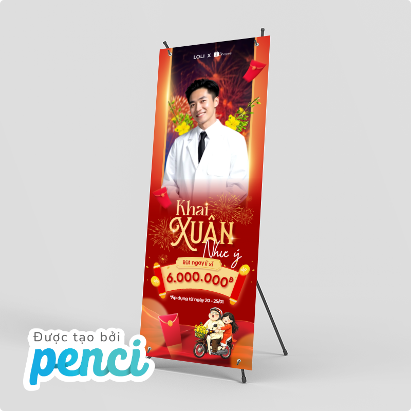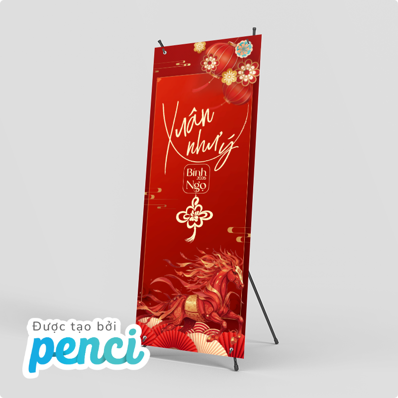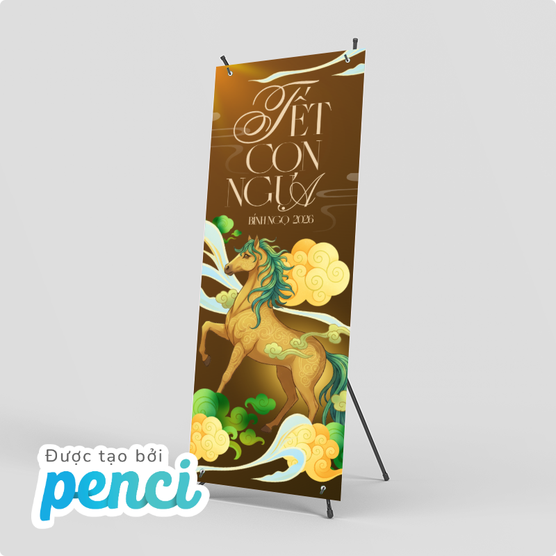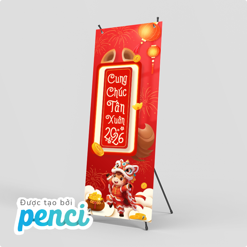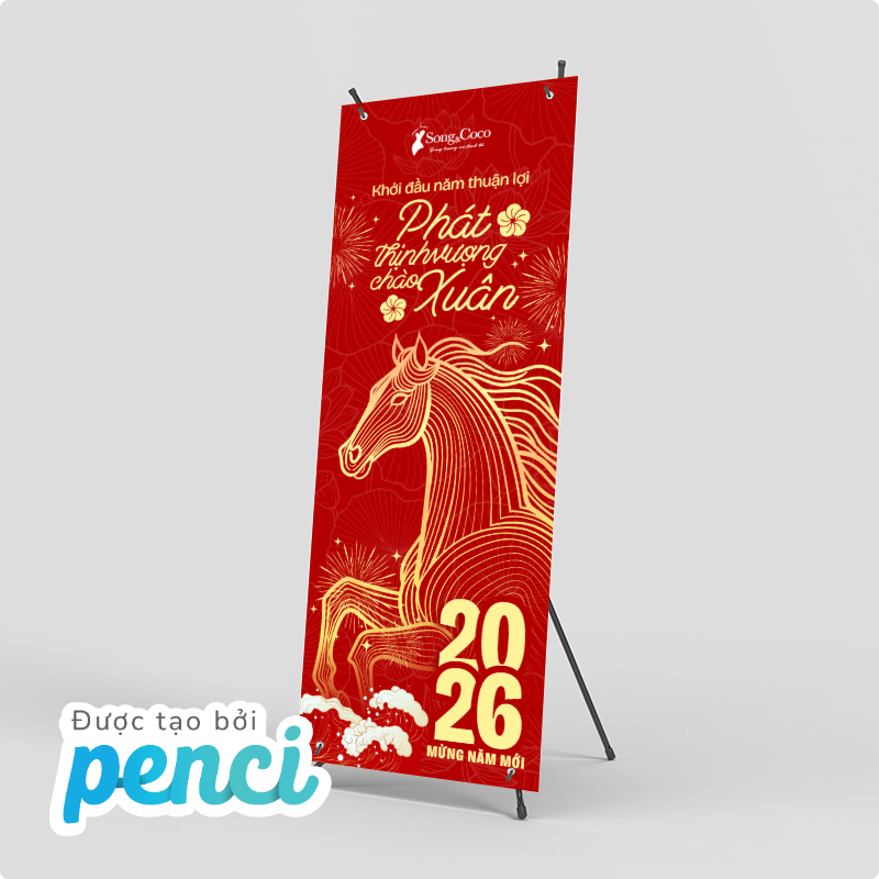 thieke thuvien Tổng hợp mẫu Standee Tết 2026 ấn tượng, Standee chúc mừng năm mới cho các sự kiện, cửa hàng, công ty dịp Tết Bính Ngọ By admin | 31 tháng 12 năm 2025 332 đã đọc Tết luôn là thời điểm “vàng” để doanh nghiệp, cửa hàng và tổ chức sự kiện tăng độ nhận diện thương hiệu, thu hút khách hàng và tạo ấn tượng. Trong đó, standee tết 2026, Standee chúc mừng năm mới được xem là ấn phẩm quảng bá không thể thiếu, xuất hiện ở hầu hết các không gian từ cửa hàng bán lẻ, trung tâm thương mại đến văn phòng công ty, hội chợ, sự kiện tất niên. Bài viết này sẽ giúp bạn tổng hợp mẫu standee Tết 2026 đẹp và ấn tượng, phù hợp cho trang trí cửa hàng, văn phòng công ty hay các sự kiện tất niên, khai xuân dịp Tết. Với các mẫu thiết kế standee Tết 2026 online và tải file thiết kế standee miễn phí của Penci sẽ giúp tiết kiệm thời gian, chi phí mà vẫn đảm bảo tính thẩm mỹ và hiệu quả truyền thông trong mùa Tết Bính Ngọ. Tổng hợp mẫu Standee Tết 2026 nổi bật, ấn tượng thu hút sự chú ý >> Tham khảo ngay các mẫu backdrop, banner cho sự kiện cuối năm 1. Các loại Standee Tết 2026 phổ biến nhất & nên chọn loại standee nào cho cửa hàng, sự kiện, công ty? Để triển khai hiệu quả các chiến dịch trang trí và truyền thông dịp Tết, việc lựa chọn đúng loại standee Tết 2026 là yếu tố rất quan trọng. Mỗi loại standee sẽ phù hợp với từng không gian, mục đích sử dụng và ngân sách khác nhau. Dưới đây là ba loại standee được sử dụng phổ biến nhất hiện nay: 1.1 Standee cuốn (Roll-up Standee) – Phổ biến nhất trong mùa Tết 2026 Standee cuốn là loại standee được sử dụng rộng rãi nhất trong các chiến dịch standee Tết 2026 nhờ thiết kế gọn nhẹ, tính thẩm mỹ cao. Nội dung standee được cuộn gọn bên trong hộp nhôm, giúp việc bảo quản trở nên dễ dàng hơn. Standee cuốn mang tính thẩm mỹ cao cho dịp tết 2026 Ưu điểm khi sử dụng Standee cuốn cho dịp Tết 2026: - Dễ lắp đặt, gọn nhẹ, thuận tiện di chuyển- Có thể tái sử dụng cho nhiều chương trình, sự kiện- Phù hợp với cả standee Tết truyền thống và standee Tết hiện đại- Mang lại cảm giác chuyên nghiệp, sang trọng cho không gian trưng bày Standee cuốn thường được sử dụng làm standee chào mừng năm mới, standee chúc Tết công ty hoặc standee sự kiện Tết như tất niên, khai xuân, hội chợ đầu năm. Loại standee này cũng rất phù hợp để đặt tại sảnh văn phòng, showroom hoặc khu vực tiếp khách nhằm tạo điểm nhấn trang trọng trong dịp Tết. >> Xem ngay các mẫu hashtag chủ đề Tết 2026 bắt trend mới nhất 1.2 Standee chữ X – Giải pháp tiết kiệm cho cửa hàng dịp Tết Standee chữ X là dòng standee có cấu tạo đơn giản với khung chữ X phía sau, được nhiều cửa hàng lựa chọn trong mùa standee Tết 2026 nhờ chi phí thấp và dễ triển khai. Standee chữ X được sử dụng rộng rãi trong dịp Tết Bính Ngọ 2026 Ưu điểm khi sử dụng Standee chữ X chào mừng Tết Bính Ngọ 2026: - Giá thành tiết kiệm, phù hợp ngân sách nhỏ- Dễ in ấn, dễ thay đổi nội dung- Trọng lượng nhẹ, thuận tiện lắp đặt- Phù hợp cho các chiến dịch ngắn hạn Standee chữ X thường được sử dụng trong các chương trình standee sale Tết, standee khuyến mãi Tết và standee Tết cửa hàng nhằm thu hút sự chú ý của khách hàng tại điểm bán. Đây là lựa chọn phù hợp cho các chiến dịch giảm giá, ưu đãi ngắn ngày hoặc trưng bày trước cửa hàng. >> Tham khảo ngay các mẫu thiết kế ảnh sản phẩm Tết đẹp, đặc trưng và miễn phí sử dụng 1.3 Standee chân sắt – Chắc chắn, bền bỉ cho không gian trưng bày lớn Standee chân sắt là loại standee có khung kim loại chắc chắn, độ bền cao và khả năng đứng vững tốt, phù hợp với các không gian cần trưng bày trong thời gian dài dịp standee Tết 2026. Standee chân sắt chào mừng năm mới ấn tượng cho mùa Tết 2026 Ưu điểm khi sử dụng Standee chân sắt cho dịp Tết Bính Ngọ 2026: - Kết cấu vững chắc, hạn chế đổ ngã- Sử dụng lâu dài, thay đổi nội dung linh hoạt- Phù hợp không gian rộng, đông người qua lại Standee chân sắt thường được dùng làm standee chúc mừng năm mới 2026, standee trang trí Tết tại sảnh lớn, trung tâm thương mại hoặc khu vực check-in sự kiện. Loại standee này cũng rất phù hợp cho các standee sự kiện Tết kéo dài nhiều ngày, cần sự ổn định và chắc chắn trong suốt quá trình trưng bày. >> Tham khảo ngay kích thước Standee chuẩn in ấn 2. Tổng hợp mẫu Standee Tết 2026 đẹp, ấn tượng cho cửa hàng, sự kiện & doanh nghiệp Các mẫu standee Tết 2026 độc quyền của Penci được thiết kế sẵn với bố cục hoàn chỉnh, nội dung linh hoạt và phong cách đa dạng, giúp người dùng dễ dàng lựa chọn và sử dụng ngay mà không tốn nhiều thời gian thiết kế từ đầu. Chỉ với vài thao tác đơn giản, bạn đã có thể chỉnh sửa nội dung, kích thước và tải file sử dụng ngay hoặc in standee theo yêu cầu với Penci. Mẫu standee Tết 2026 phong cách truyền thống 