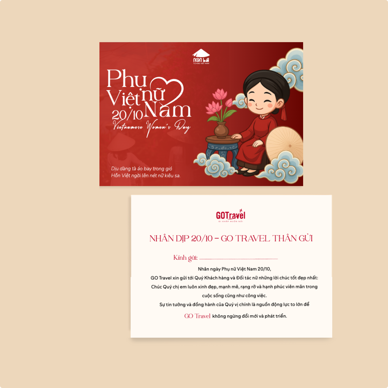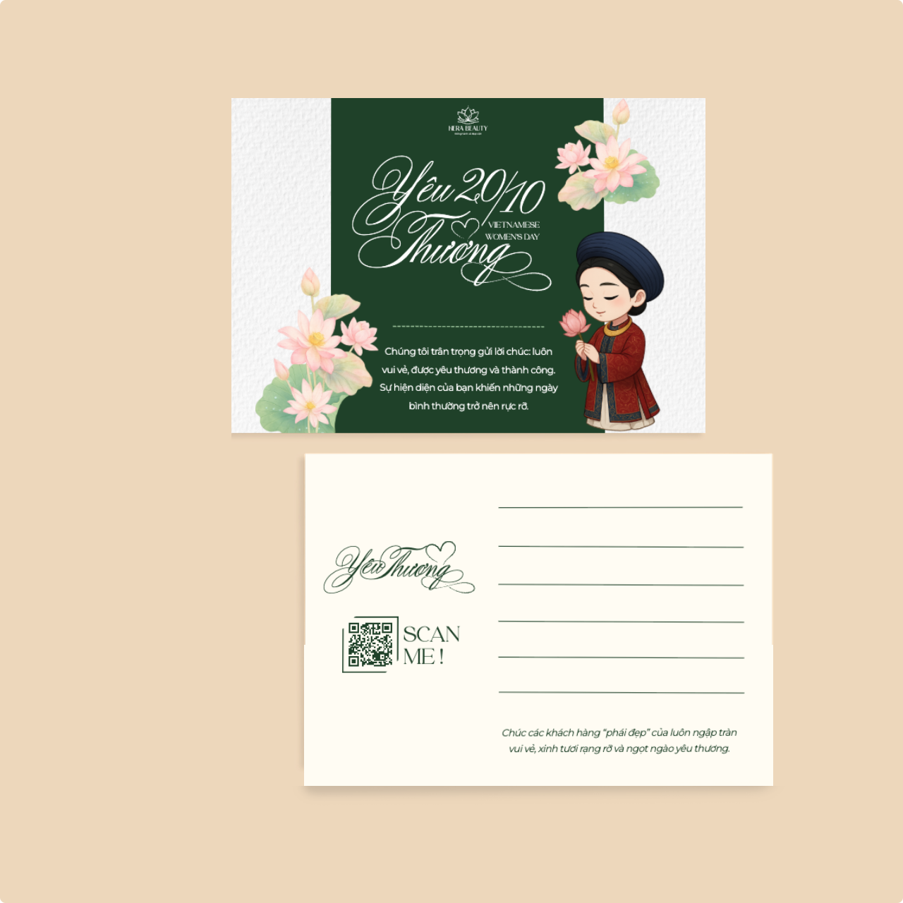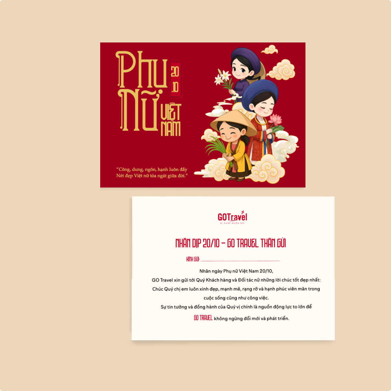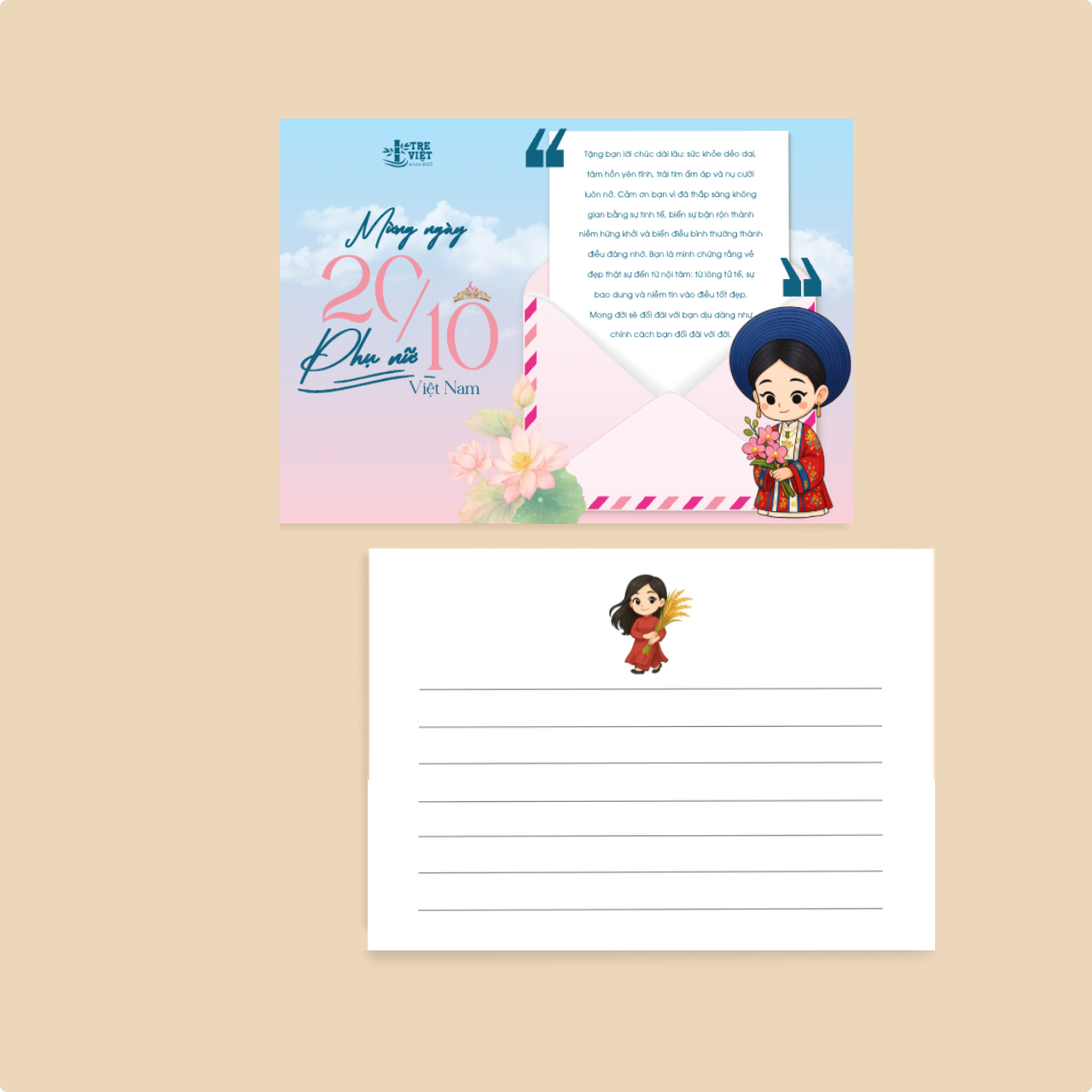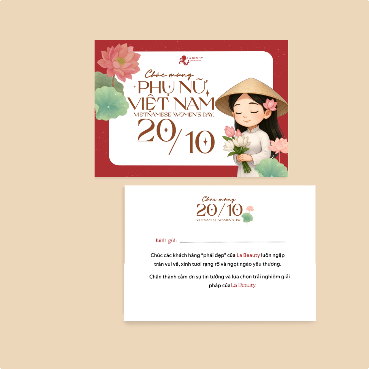 thieke thuvien Tổng hợp mẫu thiệp chúc mừng 20/10 sáng tạo, Penci thiết kế riêng dành cho phụ nữ Việt Nam By admin | 08 tháng 10 năm 2025 76 đã đọc Mỗi năm, cứ đến tháng 10, khắp Việt Nam lại ngập tràn sắc hoa và lời chúc dành tặng những người phụ nữ tuyệt vời quanh ta, đó chính là dịp 20/10 - Ngày Phụ nữ Việt Nam. Đây không chỉ là thời điểm để bày tỏ lòng biết ơn, mà còn là cơ hội để mỗi người thể hiện tình cảm với mẹ, chị, cô giáo, đồng nghiệp hay bạn gái của mình. Và giữa vô vàn cách thể hiện, một tấm thiệp chúc mừng 20/10, dù nhỏ bé nhưng lại có sức mạnh lan tỏa yêu thương bền lâu hơn bất kỳ món quà nào. Với tinh thần đó, Penci mang đến bộ sưu tập thiệp 20/10 sáng tạo, độc quyền, được thiết kế riêng cho phụ nữ Việt Nam vô cùng tinh tế, ý nghĩa và chan chứa cảm xúc. 1. Nguồn gốc, ý nghĩa của Ngày Phụ nữ Việt Nam Ngày 20 tháng 10 năm 1930, Hội Liên hiệp Phụ nữ Việt Nam chính thức được thành lập, đánh dấu cột mốc lịch sử ghi nhận vai trò và đóng góp to lớn của phụ nữ trong công cuộc dựng xây đất nước. Từ đó, ngày 20/10 hằng năm trở thành Ngày Phụ nữ Việt Nam, là dịp để tôn vinh “một nửa thế giới” là những người mẹ, người chị, người bạn gái luôn âm thầm cống hiến, hy sinh và giữ lửa yêu thương trong mỗi mái ấm. Ý nghĩa của ngày này không chỉ nằm ở việc tri ân, mà còn nhắc nhở chúng ta về sự bình đẳng, tôn trọng và yêu thương dành cho phụ nữ, họ là những người luôn xứng đáng được trân trọng cả trong đời sống vật chất lẫn tinh thần. Đó là lý do vì sao, dù thời gian có đổi thay, ngày 20/10 vẫn luôn mang giá trị sâu sắc và được người Việt gìn giữ qua nhiều thế hệ. Hình ảnh người phụ nữ Việt Nam tần tảo. Ảnh: Penci AI 2. Vì sao cần có thiệp chúc mừng vào ngày này? Một tấm thiệp nhỏ nhưng mang ý nghĩa vô cùng lớn lao và đặc biệt. Thiệp 20/10 không chỉ là món quà tinh thần, mà còn là cách để nói lời yêu thương bằng hành động giản dị và chân thành nhất. Phụ nữ vui vẻ vì sự hy sinh thầm lặng được công nhận. Ảnh: Penci AI Nhiều công ty, tổ chức thường gửi thiệp chúc mừng 20/10 hoặc thiết kế social post nhân ngày Phụ nữ Việt Nam để tri ân toàn thể nhân viên nữ, họ là những người góp phần quan trọng vào sự phát triển chung. Đây cũng là dịp vàng cho các thương hiệu thể hiện giá trị nhân văn, truyền cảm hứng và kết nối với cộng đồng. Một thiết kế thiệp 20/10 được cá nhân hóa, mang tinh thần thương hiệu, sẽ giúp doanh nghiệp ghi điểm trong mắt nhân viên và khách hàng vừa ấm áp, vừa tinh tế. Còn gì ý nghĩa hơn khi dành tặng một tấm thiệp 20/10 do chính tay mình chọn hoặc thiết kế cho bà, cho mẹ, cho chị, hay cho người phụ nữ mình thương? Một vài dòng chữ viết tay, hay chỉ đơn giản là lời chúc ngắn gọn, cũng đủ khiến người nhận xúc động. Vì phụ nữ không cần những món quà xa hoa, họ chỉ cần được thấu hiểu và được biết rằng, những vất vả, hy sinh của họ được ghi nhận. Giữa thời đại mạng xã hội và tin nhắn nhanh gọn, một tấm thiệp mừng ngày 20/10 vẫn mang sức mạnh kết nối cảm xúc thật. Thiệp là thứ lưu giữ được, có thể ép lại trong quyển sổ, cất trong ngăn kéo hay để trên bàn làm việc. Nó là kỷ niệm hữu hình của một khoảnh khắc cảm xúc, của lời chúc giản dị mà chân thành. Đôi khi, chỉ cần một tấm thiệp nhỏ, là đủ khiến người phụ nữ cảm thấy được trân trọng cả ngày dài. 3. Những mẫu thiệp chúc mừng 20/10 sáng tạo, Penci thiết kế riêng dành cho phụ nữ Việt Nam Phụ nữ Việt luôn dịu dàng nhưng mạnh mẽ, tinh tế nhưng kiên cường. Và cũng chính vì thế, đội họa sĩ nhà Penci đã dành nhiều tuần nghiên cứu, sáng tạo để mang đến bộ sưu tập thiệp chúc mừng ngày 20/10 độc quyền, lấy cảm hứng từ chính vẻ đẹp đời thường của người phụ nữ Việt Nam: từ tà áo dài mềm mại, nụ cười hiền của mẹ, cho đến nét tự tin, hiện đại của những cô gái trẻ. Bộ sưu tập gồm nhiều phong cách, từ cổ điển, hoa nhã đến hiện đại, trẻ trung, tất cả đều được thiết kế theo tinh thần: “Gửi yêu thương, chạm cảm xúc.” Các mẫu thiệp được vẽ tay bởi đội họa sĩ Việt, kết hợp màu sắc nhẹ nhàng, bố cục tinh tế, dễ dàng tùy chỉnh để người dùng thêm lời chúc, logo thương hiệu hoặc ảnh cá nhân. Đặc biệt, người dùng có thể thiết kế trực tiếp trên Penci.vn, xem mockup thực tế và tải file in chỉ trong vài phút, vô cùng tiện lợi, nhanh chóng và không cần biết thiết kế. Dưới đây là những mẫu thiệp chúc mừng ngày Phụ nữ Việt Nam 20/10 nổi bật nhất tại Penci dành riêng cho bạn: Sử dụng mẫu này Sử dụng mẫu này Sử dụng mẫu này Sử dụng mẫu này Sử dụng mẫu này Sử dụng mẫu này Sử dụng mẫu này Sử dụng mẫu này Sử dụng mẫu này Đang cập nhật thêm… Xem thêm: Thư viện mẫu thiết kế Thiệp chúc mừng 20/10