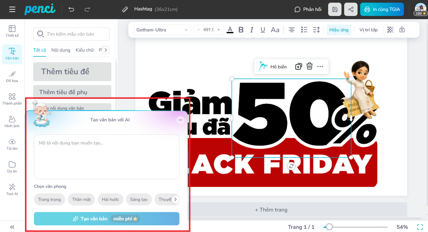 thieke thuvien Tổng hợp mẫu thiết kế hashtag cầm tay Black Friday ấn tượng nhất và cách thiết kế hashtag sale Black Friday nhanh chóng, miễn phí cùng Penci By admin | 25 tháng 11 năm 2025 159 đã đọc Hashtag cầm tay Black Friday là vật dụng không thể thiếu trong mọi chiến dịch sale lớn như Black Friday giúp khuấy động không khí, tạo tương tác mạnh mẽ và tăng sự kết nối giữa khách hàng với thương hiệu. Những mẫu thiết kế hashtag Black Friday bắt mắt không chỉ giúp khách tham gia check-in dễ dàng mà còn lan tỏa hình ảnh thương hiệu nhanh chóng trên mạng xã hội. Bởi vậy, việc chuẩn bị mẫu hashtag Black Friday đẹp, độc đáo và thu hút là yếu tố vô cùng quan trọng cho mọi shop, cửa hàng và sự kiện mùa sale. Trong bài viết này, Penci sẽ tổng hợp những mẫu thiết kế hashtag Black Friday nổi bật, thu hút và ấn tượng nhất, đồng thời chia sẻ hướng dẫn chi tiết cách thiết kế hashtag cầm tay Black Friday đẹp dành cho shop, cửa hàng, thương hiệu hoặc mọi sự kiện đang chuẩn bị cho mùa sale bùng nổ. >> Bắt đầu THIẾT KẾ HASHTAG BLACK FRIDAY nhanh chóng tại đây 1. Top 99+ mẫu hashtag cầm tay Black Friday đẹp, sáng tạo và thu hút nhất cho mùa sale Black Friday >> Xem ngay các ý tưởng trang trí shop, cửa hàng độc đáo, nổi bật, sôi động mùa Black Friday Trong mùa sale Black Friday lớn nhất năm, những mẫu thiết kế hashtag Black Friday và mẫu hashtag khuyến mãi Black Friday luôn là “vũ khí” giúp shop, cửa hàng và thương hiệu tạo điểm nhấn mạnh mẽ. Một mẫu hashtag cầm tay Black Friday đẹp, độc đáo và thu hút sẽ giúp tăng tỷ lệ check-in, tạo hiệu ứng lan truyền và nâng tầm nhận diện thương hiệu ngay tại sự kiện. Dưới đây là các mẫu thiết kế hashtag cầm tay Black Friday nổi bật nhất mà bạn có thể tham khảo: Nhấn để sử dụng ngay mẫu hashtag Black Friday ấn tượng và nổi bật này Chỉnh sửa mẫu thiết kế hashtag cầm tay Black Friday nổi bật, phong cách hiện đại Click để tùy chỉnh hashtag cầm tay Black Friday ấn tượng thu hút cho cửa hàng. Dùng mẫu hashtag cầm tay Black Friday, mẫu hashtag sale chuyên nghiệp Mẫu hashtag Black Friday ấn tượng cho chụp ảnh check-in Thiết kế hashtag cầm tay Black Friday tối giản, dễ nhìn cho sự kiện sale. Mẫu thiết kế Black Friday dạng hashtag cầm tay chuyên nghiệp cho các cửa hàng Template hashtag cầm tay Black Friday thu hút, ấn phẩm Black Friday chuyên nghiệp cho sự kiện Mẫu thiết kế hashtag Black Friday thu hút, mẫu hashtag sale chuyên nghiệp >> Xem ngay toàn bộ THƯ VIỆN MẪU thiết kế hashtag Black Friday miễn phí của Penci 2. Thiết kế hashtag cầm tay Black Friday miễn phí, chuyên nghiệp và nhanh chóng với Penci Nếu bạn đang tìm cách thiết kế hashtag cầm tay Black Friday thật bắt mắt, thu hút và đồng bộ nhận diện thương hiệu, hãy thử ngay với Penci. Với thư viện mẫu thiết kế hashtag Black Friday đa dạng, công cụ chỉnh sửa đơn giản và khả năng in ấn trực tiếp, Penci giúp bạn tạo nên những mẫu hashtag Black Friday ấn tượng chỉ trong vài phút. >> Tham khảo các tài nguyên thiết kế sử dụng trong Black Friday của Penci - Thư viện hàng trăm mẫu hashtag Black Friday được thiết kế sẵn Penci cung cấp kho mẫu thiết kế hashtag Black Friday đa dạng từ các mẫu hashtag sale, hashtag Black Friday đẹp và các mẫu thiết kế Black Friday theo xu hướng mới nhất. Các mẫu hashtag cầm tay đa dạng, từ phong cách tối giản đến nổi bật hay phá cách được tối ưu cho hashtag cầm tay sự kiện, props chụp ảnh Black Friday hay bảng cầm tay Black Friday phù hợp cho mọi ngành hàng như các shop thời trang, cửa hàng mỹ phẩm, điện máy, F&B, các sự kiện sale, hội chợ hay chương trình khuyến mãi… Thư viện 99+ mẫu thiết kế hashtag cầm tay Black Friday nổi bật - Tùy chỉnh mẫu hashtag Black Friday linh hoạt, thể hiện dấu ấn riêng của thương hiệu Bạn có thể tùy chỉnh linh hoạt mẫu hashtag cầm tay Black Friday theo phong cách và nhận diện thương hiệu riêng. Từ màu sắc, font chữ, kích thước đến nội dung slogan, mọi chi tiết đều có thể điều chỉnh để tạo ra mẫu hashtag Black Friday độc quyền, nổi bật và thu hút khách hàng. Đây là cách hiệu quả để thiết kế hashtag cầm tay Black Friday đẹp và tạo dấu ấn riêng cho shop hay sự kiện. Giao diện tùy chỉnh mẫu thiết kế Black Friday đơn giản, dễ sử dụng - Tích hợp AI – trợ thủ sáng tạo cực thông minh cho hashtag cầm tay Black Friday Điểm mạnh lớn nhất của Penci chính là AI được tích hợp trực tiếp trong giao diện thiết kế, giúp bạn tạo ra mẫu hashtag cầm tay Black Friday nhanh chóng, ấn tượng và thu hút hơn. + AI viết nội dung: Gợi ý slogan, câu chúc hoặc caption hấp dẫn cho hashtag cầm tay Black Friday, giúp thiết kế hashtag cầm tay Black Friday đẹp và phù hợp với chiến dịch marketing, sự kiện sale. + AI tạo hình ảnh và đồ họa bằng mô tả (Text to Image): Chỉ cần gõ vài từ như “check-in Black Friday”, Penci AI sẽ tự động tạo hình ảnh hoặc đồ họa phù hợp, dễ dàng chèn vào hashtag cầm tay Black Friday. Tính năng AI của Penci hỗ trợ b