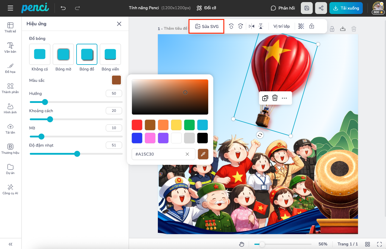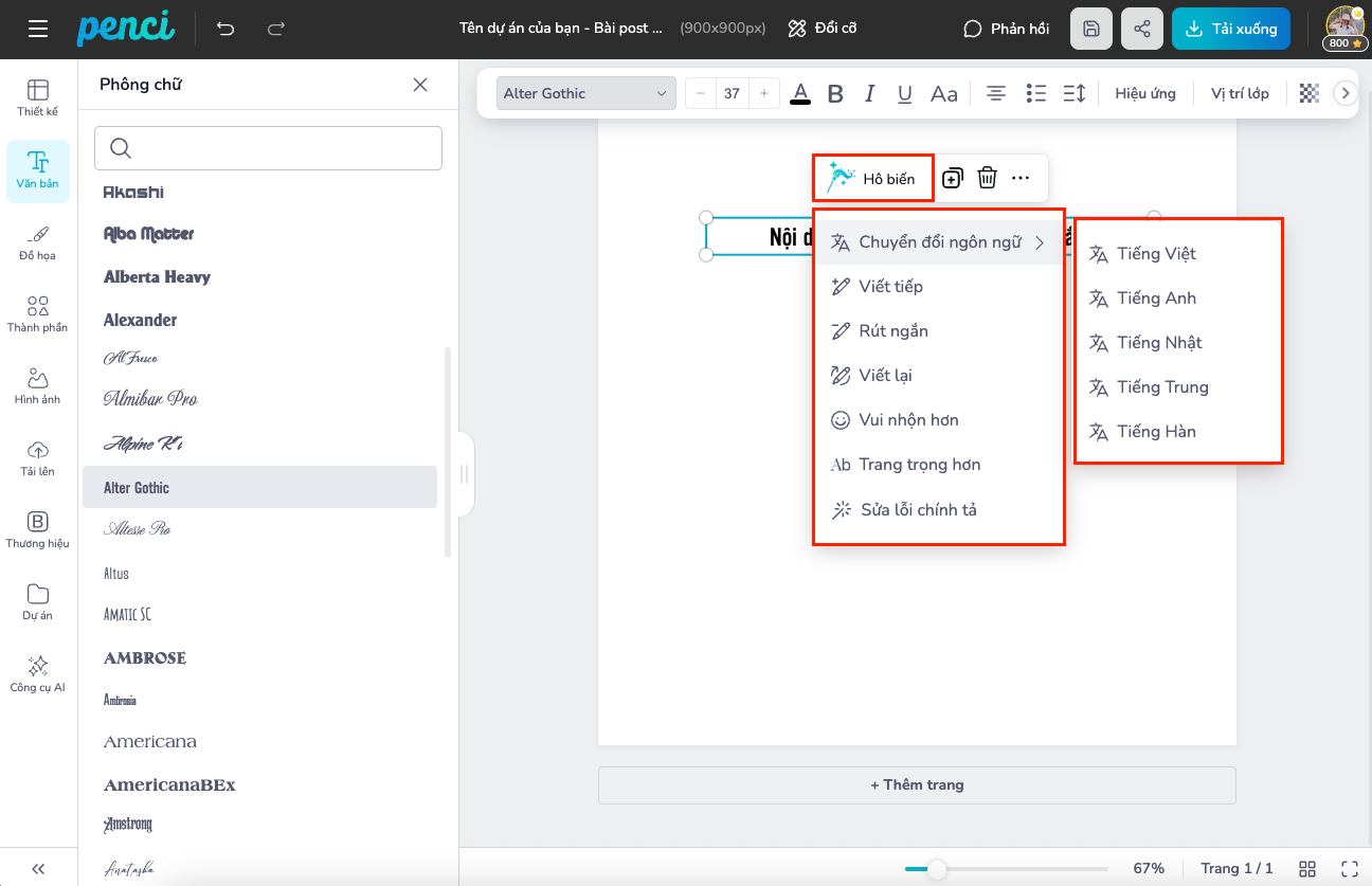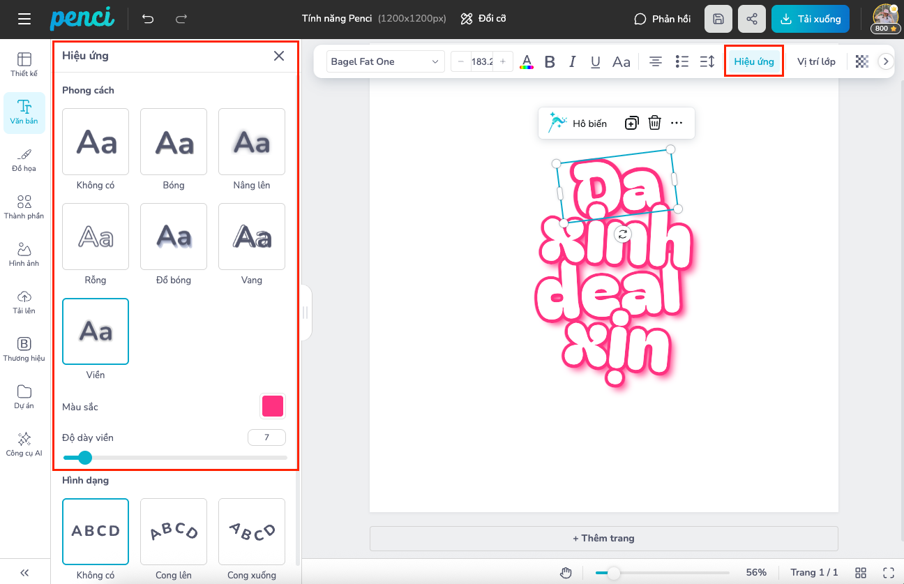 thieke thuvien Top 12 tính năng của Penci giúp thiết kế xịn sò, đẹp hơn mà có thể bạn chưa biết By admin | 01 tháng 04 năm 2026 89 đã đọc Thiết kế đẹp không còn là “đặc quyền” của designer chuyên nghiệp. Với các công cụ thiết kế online ngày nay, bất kỳ ai cũng có thể tạo ra ấn phẩm chỉn chu nếu biết tận dụng đúng tính năng. Tuy nhiên, thực tế là nhiều người dùng chỉ sử dụng những thao tác cơ bản như sửa chữ, thay ảnh mà bỏ qua rất nhiều tính năng mạnh mẽ đã có sẵn. Điều này khiến thiết kế đôi khi vẫn “thiếu một chút gì đó” để trông thật sự nổi bật. Nếu bạn đang thiết kế online trên Penci nhưng chưa khai thác hết tiềm năng của công cụ này, thì danh sách dưới đây chính là thứ bạn cần. Đây là 12 tính năng giúp nâng cấp thiết kế trên Penci của bạn từ “ổn áp” lên “xịn sò” mà không cần học thêm kỹ năng phức tạp. 1. Đổi cỡ thiết kế Đây là tính năng cực kỳ hữu ích khi bạn cần chuyển đổi một thiết kế sang nhiều kích thước khác nhau mà không muốn làm lại từ đầu. Ví dụ, từ một poster Facebook, bạn có thể chuyển sang story, banner hoặc in ấn chỉ trong vài thao tác. Penci sẽ giúp chuyển đổi kích thước thiết kế nhanh chóng, giữ nguyên các thành phần nội dung. Sau đó, bạn có thể chủ động sắp xếp lại bố cục, căn chỉnh vị trí chữ, hình ảnh và đồ họa sao cho phù hợp với kích thước mới. Cách này vừa tiết kiệm thời gian, vừa đảm bảo thiết kế đúng ý bạn. Resize thiết kế dễ dàng 2. Hiệu ứng chữ Chữ không chỉ để đọc mà còn là yếu tố tạo điểm nhấn trong thiết kế. Penci cung cấp nhiều hiệu ứng chữ như tạo viền chữ, tạo chữ nhiều lớp, đổ bóng,... giúp tiêu đề nổi bật hơn mà không cần thêm quá nhiều chi tiết khác. Chỉ với vài thao tác, bạn có thể biến một dòng chữ đơn giản thành điểm thu hút chính, đặc biệt phù hợp khi làm poster, banner hoặc nội dung mạng xã hội cần gây chú ý nhanh. Hiệu ứng giúp chữ trở nên nổi bật hơn 3. Bẻ cong chữ Thay vì để chữ thẳng nhàm chán, bạn có thể bẻ cong chữ theo hình tròn, vòng cung hoặc uốn lượn theo ý muốn. Tính năng này rất hữu ích khi thiết kế logo, sticker, badge hoặc các ấn phẩm mang tính trang trí cao. Bẻ cong chữ dễ dàng 4. Sắp xếp layer Khi thiết kế có nhiều thành phần, việc sắp xếp layer là cực kỳ quan trọng. Tính năng này giúp bạn đưa phần tử lên trước hoặc xuống dưới một cách dễ dàng. Nhờ đó, bạn có thể kiểm soát bố cục tốt hơn, tránh tình trạng hình bị che hoặc chữ bị “lọt thỏm” phía sau. Điều chỉnh thứ tự các lớp nhanh chóng 5. Đổ bóng cho đồ hoạ/ hình ảnh Một chút bóng đổ đúng hướng có thể tạo chiều sâu cho thiết kế. Tính năng này giúp hình ảnh hoặc đồ hoạ trông nổi bật, có hồn hơn, giúp chi tiết không bị “liền mạch” vào nền mà tạo nên hiệu ứng giống như 3D. Đặc biệt khi làm poster, banner hoặc menu, việc thêm bóng nhẹ sẽ giúp tổng thể trông chuyên nghiệp hơn rất nhiều. Tạo bóng giúp chi tiết có chiều sâu hơn 6. Làm sáng, chỉnh sửa màu sắc hình ảnh Với công cụ chỉnh sửa màu, bạn có thể tăng sáng, chỉnh độ tương phản hoặc cân bằng màu sắc để ảnh hài hòa với tổng thể thiết kế. Đây là chi tiết rất nhỏ nhưng lại ảnh hưởng rất lớn đến tổng quan của sản phẩm đầu ra. Chỉnh hình ảnh nhanh chóng bằng bộ lọc hoặc tự điều chỉnh 7. Tạo viền cho hình ảnh Thêm viền cho ảnh là cách đơn giản để phân biệt chủ thể và nền. Bạn có thể tạo viền mỏng, dày hoặc tùy chỉnh theo ý muốn để làm nổi bật chủ thể chính. Tính năng này đặc biệt hữu ích khi thiết kế ảnh sản phẩm, avatar hoặc ảnh ghép nhiều chi tiết. Viền ảnh giúp chủ thể nổi bật hơn 8. Lồng hình vào khung (Cắt hình ảnh theo nhiều hình dạng) Thay vì chỉ dùng ảnh với kích thước mặc định, bạn có thể lồng ảnh vào các khung có sẵn như hình tròn, hình tim hoặc các shape sáng tạo khác. Điều này giúp thiết kế trở nên sinh động hơn và phù hợp với nhiều mục đích như thiệp, scrapbook hay poster sự kiện. Frame ảnh đa dạng, dễ dàng lồng hình ảnh vào trong khung 9. Tạo bộ thương hiệu riêng Nếu bạn làm nội dung thường xuyên, việc giữ đồng bộ màu sắc, font chữ và logo là rất quan trọng. Tính năng tạo bộ thương hiệu giúp bạn lưu lại các yếu tố này để sử dụng nhanh cho các thiết kế sau. Nhờ đó, bạn không cần chỉnh lại từ đầu mỗi lần tạo thiết kế mới. Đồng bộ thiết kế thương hiệu nhanh 10. Tạo nội dung hàng loạt Bạn có thể tạo nhiều phiên bản thiết kế cùng lúc chỉ bằng cách thay đổi nội dung thông tin trong thư mời, thiệp mời, nhãn tên,.... Tính năng này giúp tiết kiệm cực nhiều thời gian khi cần làm số lượng lớn. Thay thế nội dung cực nhanh 11. Xử lý nội dung bằng AI Khi bí ý tưởng hoặc không biết viết gì, AI trên Penci có thể hỗ trợ tạo nội dung nhanh chóng. Bạn chỉ cần nhập vài từ khóa, hệ thống 