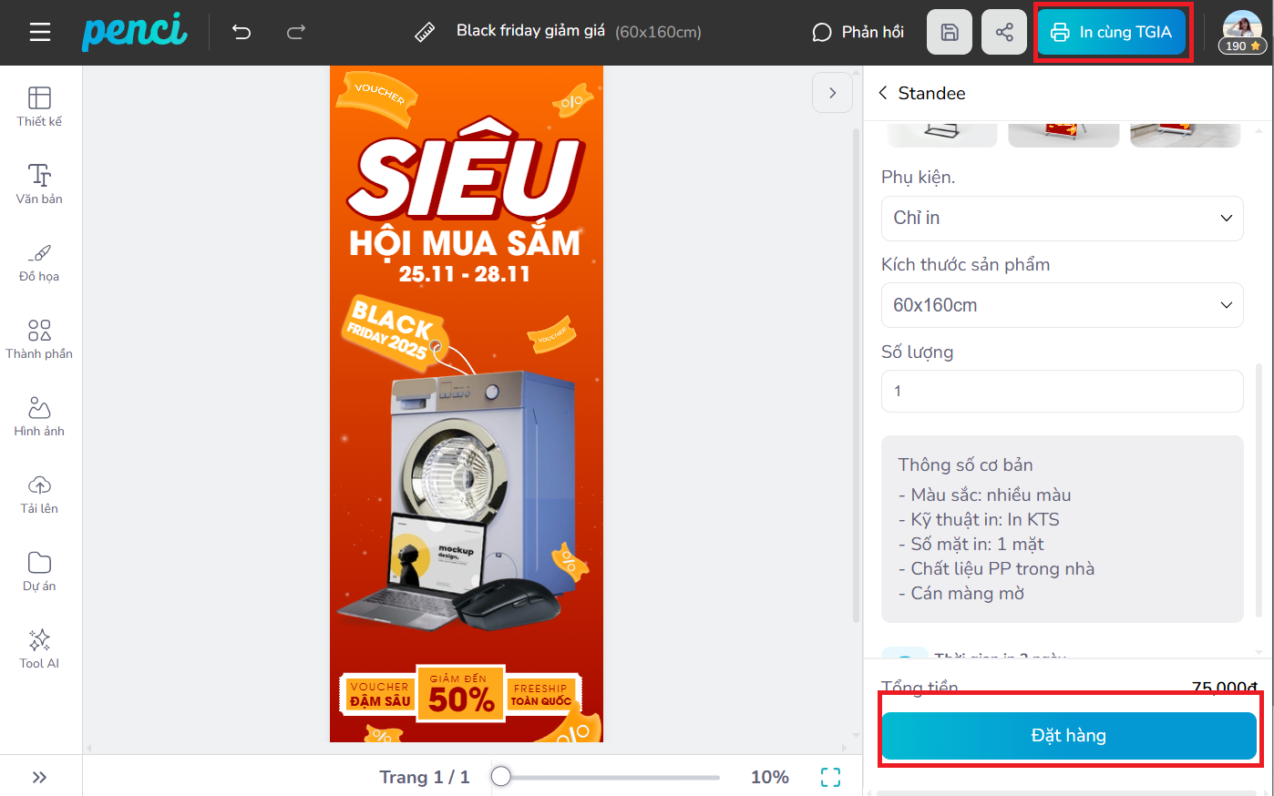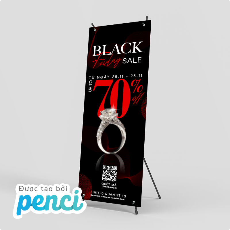 thieke thuvien Top 30+ mẫu Standee Black Friday đẹp, Standee khuyến mãi Black Friday ấn tượng và cách thiết kế Standee sale cho dịp Black Friday By admin | 25 tháng 11 năm 2025 174 đã đọc Standee Black Friday đẹp đặt trước cửa hàng với các thông tin chương trình khuyến mãi nổi bật là vật dụng không thể thiếu trong mùa sale Black Friday năm nay. Standee giúp thu hút khách hàng ngay từ cái nhìn đầu tiên, tăng tỷ lệ khách dừng chân tại cửa hàng và nâng cao cơ hội mua sắm. >> Xem ngay các mẫu poster, banner Black Friday đẹp, thu hút cho cả online và offline Nếu bạn đang tìm kiếm mẫu Standee Black Friday đẹp, sáng tạo và muốn tự thiết kế Standee Black Friday nhanh chóng, hãy tham khảo ngay tổng hợp 30+ mẫu Standee Black Friday nổi bật, được Penci thiết kế độc quyền. Bài viết cũng hướng dẫn chi tiết cách bạn có thể thiết kế và in Standee chuyên nghiệp, phù hợp cả cửa hàng nhỏ lẫn các chuỗi cửa hàng lớn. >> Bắt đầu thiết kế Standee Black Friday ấn tượng cho cửa hàng của bạn hoàn toàn miễn phí ngay tại đây 1. Tổng hợp các mẫu Standee Black Friday đẹp, Standee sale Black Friday sáng tạo và độc quyền của Penci Trong mùa sale Black Friday, một cái Standee Black Friday nổi bật, thông tin khuyến mãi rõ ràng và thiết kế Standee khuyến mãi Black Friday sáng tạo sẽ giúp khách dừng chân lâu hơn, tăng tỷ lệ mua sắm và nâng cao hình ảnh thương hiệu. >> Xem ngay các mẫu hashtag cầm tay chủ đề Black Friday đẹp giúp tăng tương tác với khách hàng Dưới đây là tổng hợp các mẫu Standee Black Friday đang được nhiều cửa hàng áp dụng từ các Standee quảng cáo Black Friday chuyên nghiệp đến những mẫu Standee Black Friday sáng tạo cho cửa hàng nhỏ: Tải mẫu Standee Black Friday miễn phí và chỉnh sửa ngay cho cửa hàng. Standee Black Friday nổi bật, thiết kế dễ sử dụng, chỉnh sửa theo ý muốn Chỉnh sửa và sử dụng mẫu Standee Black Friday chuyên nghiệp cho mùa sale. Mẫu Standee Black Friday đẹp, chỉnh sửa dễ dàng để quảng bá khuyến mãi Tạo Standee Black Friday nổi bật ngay hôm nay, tải mẫu và chỉnh sửa dễ dàng Standee Black Friday thu hút khách hàng, tải mẫu miễn phí và tùy chỉnh theo nhu cầu Thiết kế Standee Black Friday chuyên nghiệp, chỉnh sửa nhanh chóng cho shop Sử dụng mẫu Standee Black Friday nổi bật, tải ngay và thiết kế nhanh chóng. Chỉnh sửa mẫu Standee Black Friday sáng tạo và sử dụng cho cửa hàng của bạn >> Xem ngay toàn bộ THƯ VIỆN MẪU STANDEE Black Friday độc quyền của Penci 2. Hướng dẫn thiết kế Standee Black Friday miễn phí, đơn giản và chuyên nghiệp cùng Penci Penci là nền tảng thiết kế online giúp bạn dễ dàng tải mẫu Standee Black Friday miễn phí, tự tay thiết kế Standee Black Friday, Standee sale Black Friday hay Standee quảng cáo Black Friday nhanh chóng, đẹp mắt mà không cần kỹ năng thiết kế chuyên nghiệp. Nền tảng cung cấp kho mẫu Standee Black Friday sẵn có, được thiết kế độc quyền, phù hợp cho mọi cửa hàng, từ cửa hàng lớn đến Standee Black Friday cho cửa hàng nhỏ, giúp bạn chuẩn bị không gian sale thật ấn tượng và thu hút khách. Bạn có thể tự thiết kế Standee Black Friday mới hoặc tùy chỉnh các mẫu Standee Black Friday có sẵn của Penci chỉ với 4 bước đơn giản sau: Bước 1: Truy cập penci.vn và chọn danh mục Standee Hàng trăm mẫu Standee Black Friday đã được Penci thiết kế sẵn, phù hợp cho mọi loại hình: cửa hàng thời trang, siêu thị, cửa hàng quà tặng, trung tâm thương mại… Bước 2: Chọn mẫu Standee Black Friday có sẵn Trong kho mẫu của Penci, bạn có thể tìm thấy đa dạng loại Standee được thiết kế riêng hiển thị thông điệp sale nổi bật, thu hút khách hàng và phù hợp với mọi không gian cửa hàng, từ thương hiệu chuyên nghiệp cho đến Standee Black Friday cho cửa hàng nhỏ. Bạn có thể chọn mẫu phù hợp nhất với thương hiệu và phong cách cửa hàng để bắt đầu quá trình tùy chỉnh. Thư viện mẫu standee đa dạng phong cách và chủ đề được Penci thiết kế độc quyền Bước 3: Tùy chỉnh và cá nhân hóa Standee Black Friday Với Penci bạn có thể chỉnh sửa thông tin trên mẫu thiết kế Standee có sẵn như thay đổi nội dung khuyến mãi, giảm giá, combo sản phẩm hoặc thông điệp thu hút khách hàng. Penci cho phép bạn thêm logo, điều chỉnh màu sắc và font chữ để Standee đồng bộ với nhận diện thương hiệu. Giao diện và cách thiết kế Standee Black Friday đơn giản, nhanh chóng dù bạn không biết thiết kế chuyên nghiệp vẫn có thể tự tạo Standee khuyến mãi Black Friday vừa đẹp mắt vừa thu hút khách hàng. Giao diện tùy chỉnh và thiết kế mẫu Standee Black Friday đơn giản mà ai cũng làm được Bước 4: Xuất file và in Standee Black Friday đơn giản với Penci - Xuất file kỹ thuật số: xuất file dạng PDF chất lượng cao để gửi in Standee Black Friday. - In trực tiếp trên Penci: Hệ thống tích hợp với nhà in Thế giới in ấn chuyên nghiệp, hỗ trợ in Standee Black Friday, giao hàng toàn quốc, đảm bảo màu sắc chuẩn, hình ảnh sắc nét. Đặc biệt, khi in standee Black Friday trực tiếp tại Penci, bạ