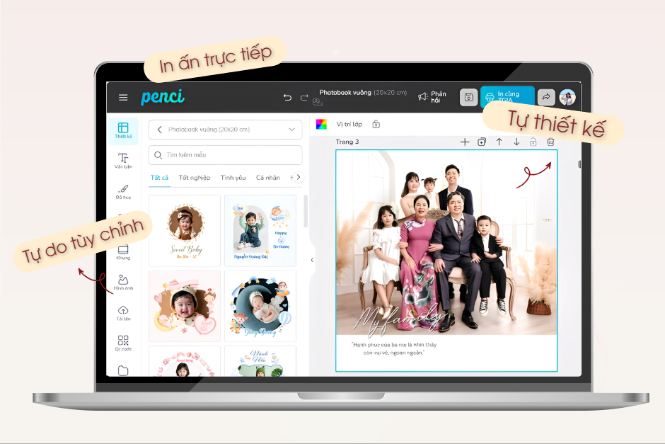 thieke thuvien Ý tưởng quà tặng cho mẹ đơn giản, chân thành, xúc động chạm đến cảm xúc của mẹ By admin | 08 tháng 10 năm 2025 33 đã đọc Ngày 20/10 ai cũng nghĩ ngay đến hoa, quần áo hay những món đồ đắt tiền để tặng mẹ. Nhưng có bao giờ bạn tự hỏi: mẹ thật sự mong chờ điều gì? Với mẹ, món quà quý giá nhất không phải vàng bạc hay mỹ phẩm sang trọng, mà là tình cảm và những kỷ niệm từ chính những đứa con mà mẹ dành cả đời để yêu thương. Thay vì một món quà cầu kỳ, hãy thử nghĩ đến một cuốn photobook kỷ niệm, tuy nhỏ bé nhưng đầy sức nặng cảm xúc. Photobook giống như cuốn nhật ký bằng hình ảnh, nơi lưu giữ thanh xuân của mẹ, những nụ cười gia đình và cả hành trình làm mẹ đáng tự hào. Đây chính là món quà tặng mẹ chạm cảm xúc, chân thành và khác biệt mà không thứ vật chất nào có thể thay thế. 1/ Vì sao nên tặng photobook cho mẹ 20/10? Mỗi năm, bạn có thể tặng mẹ những bó hoa tươi, những hộp quà đắt đỏ hay những bộ mỹ phẩm. Nhưng rồi hoa sẽ tàn, quà sẽ dùng hết, chỉ có ký ức và tình cảm là còn mãi. Chính vì thế, một cuốn quà tặng photobook trở thành món quà 20/10 cho mẹ thật sự chạm cảm xúc vì nó lưu giữ những điều không bao giờ mất đi. Lưu giữ hành trình của mẹ: Photobook có thể bắt đầu từ tuổi trẻ của mẹ, ngày cưới hay khoảnh khắc mẹ bế con. Mỗi trang là một cột mốc yêu thương, kể lại hành trình đầy tự hào của mẹ. Khơi gợi tình cảm gia đình: Mỗi bức trang photobook như tái hiện lại từng khoảnh khắc sum vầy giúp mẹ cảm nhận trọn vẹn sự gắn kết của gia đình. Món quà độc bản, dành riêng cho mẹ: Không có photobook nào giống nhau, bởi nó được tạo nên từ chính ký ức của mẹ và con. Đây là món quà tặng mẹ chân thành, độc nhất và không thể mua ở đâu khác. Thiết thực và bền lâu: Khác với những món quà chóng phai, photobook sẽ theo mẹ mãi theo năm tháng. Chỉ cần mở ra, mẹ sẽ thấy tình yêu gia đình luôn ở bên cạnh. Một cuốn photobook ý nghĩa tặng mẹ ngày 20/10 chính là cách nói lời cảm ơn giản dị mà sâu sắc nhất. Đó không chỉ là món quà, mà là món “báu vật” mà mẹ sẽ trân trọng nâng niu. >> Xem thêm những món quà cá nhân hóa tặng mẹ cực kỳ ý nghĩa ngày 20/10 2/ Các ý tưởng làm photobook tặng mẹ 20/10 ý nghĩa và chạm cảm xúc Dưới đây là một số gợi ý về ý tưởng photobook tặng mẹ 20/10: 1. Photobook “Thanh xuân của mẹ” Tập hợp những tấm ảnh cũ từ thời mẹ còn con gái, ngày cưới, hay những khoảnh khắc rạng rỡ trong tuổi trẻ. Đây là một ý tưởng photobook tặng mẹ vừa giản dị, vừa giàu cảm xúc, là cách làm quà tặng mẹ đơn giản giúp mẹ bồi hồi nhớ về những năm tháng đẹp nhất của cuộc đời. >> Bắt đầu thiết kế mẫu photobook “Thanh xuân của mẹ” tặng mẹ 20/10 ngay tại đây! 2. Photobook “Gia đình sum vầy” Gồm những tấm ảnh cả nhà bên nhau trong các dịp Tết, sinh nhật, chuyến du lịch hay chỉ đơn giản là bữa cơm sum vầy. Cuốn photobook gia đình này sẽ là cầu nối yêu thương, giúp mẹ luôn cảm nhận được tình cảm gia đình trọn vẹn. Đây chắc chắn là quà tặng mẹ chạm cảm xúc và một trong những ý tưởng photobook tặng mẹ ý nghĩa nhất. >> Bắt đầu thiết kế mẫu photobook “Gia đình sum vầy” tặng mẹ 20/10 ngay tại đây! 3. Photobook “Con và mẹ” Cuốn photobook về mẹ này ghi lại mọi khoảnh khắc mẹ và con bên nhau, từ khi con còn bé đến lúc trưởng thành. Kèm theo những lời nhắn ngắn gọn, chân thành như “Cảm ơn mẹ” khiến mỗi trang sách đều đong đầy tình yêu. Photobook giản dị nhưng sâu sắc, chắc chắn là quà tặng mẹ chạm cảm xúc và một trong những ý tưởng photobook tặng mẹ đáng nhớ nhất. >> Bắt đầu thiết kế mẫu photobook “Con và mẹ” tặng mẹ 20/10 ngay tại đây! Dù chọn ý tưởng nào, điều quan trọng là bạn dồn tình cảm vào từng chi tiết. Một photobook ý nghĩa sẽ khiến mẹ không chỉ nhìn thấy hình ảnh, mà còn cảm nhận được tình yêu trong từng trang sách. >> Tham khảo thêm các mẫu photobook đẹp khác tại đây 3/ Hướng dẫn cách tự thiết kế photobook tặng mẹ 20/10 đơn giản mà vô cùng ý nghĩa Nhiều người nghĩ làm photobook tặng mẹ phức tạp, nhưng thực ra đây là cách làm quà tặng mẹ đơn giản mà ai cũng có thể thực hiện. Chỉ với 4 bước, bạn đã có thể tạo ra món quà tặng mẹ chạm cảm xúc và ý nghĩa nhất dành tặng mẹ nhân ngày 20/10. Bước 1: Truy cập Penci Truy cập Penci – Tự thiết kế Photobook giúp bạn tự thiết kế photobook và đặt in photobook gia đình trực tuyến, nhanh chóng và tiện lợi. Bước 2: Chọn mẫu thiết kế phù hợp Kho mẫu photobook về mẹ đa dạng và được cập nhật thường xuyên, phù hợp với xu hướng người Việt. Bạn sẽ dễ dàng chọn được phong cách yêu thích để tạo cuốn sách riêng cho mẹ. Bước 3: Cá nhân hóa từng trang photobook tặng mẹ Thêm hình ảnh, lời nhắn yêu thương, câu chúc ấm áp hay ghi chú những ngày kỷ niệm